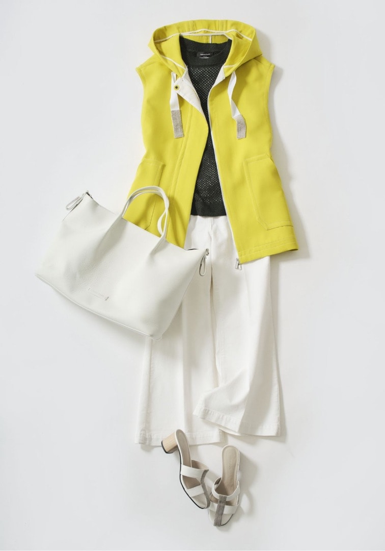 よりモダンに生まれ変わったファビアナフィリッピの春夏新作コレクションから、 応用力の秀逸なアイテムたちをフューチャー。 スタイリスト望月律子さんが1つのアイテムでリゾート仕様とタウン仕様、 印象の異なる2パターンの着こなしをご紹介します。