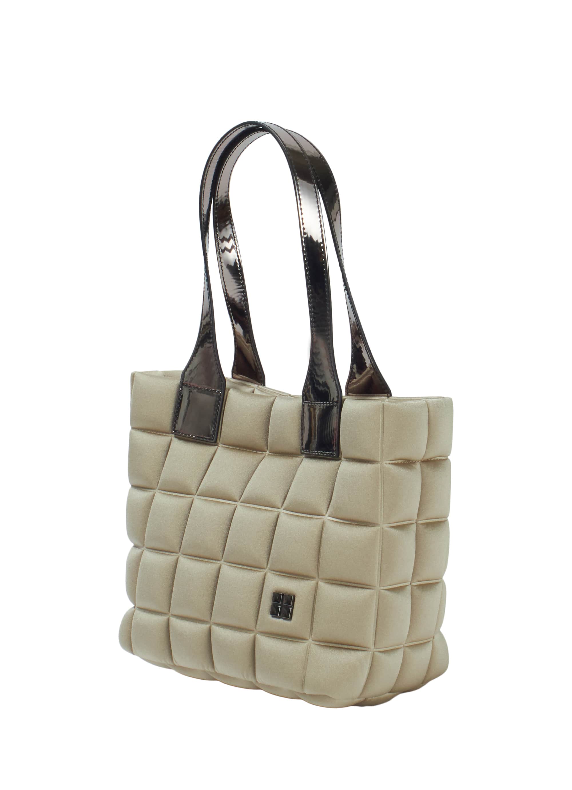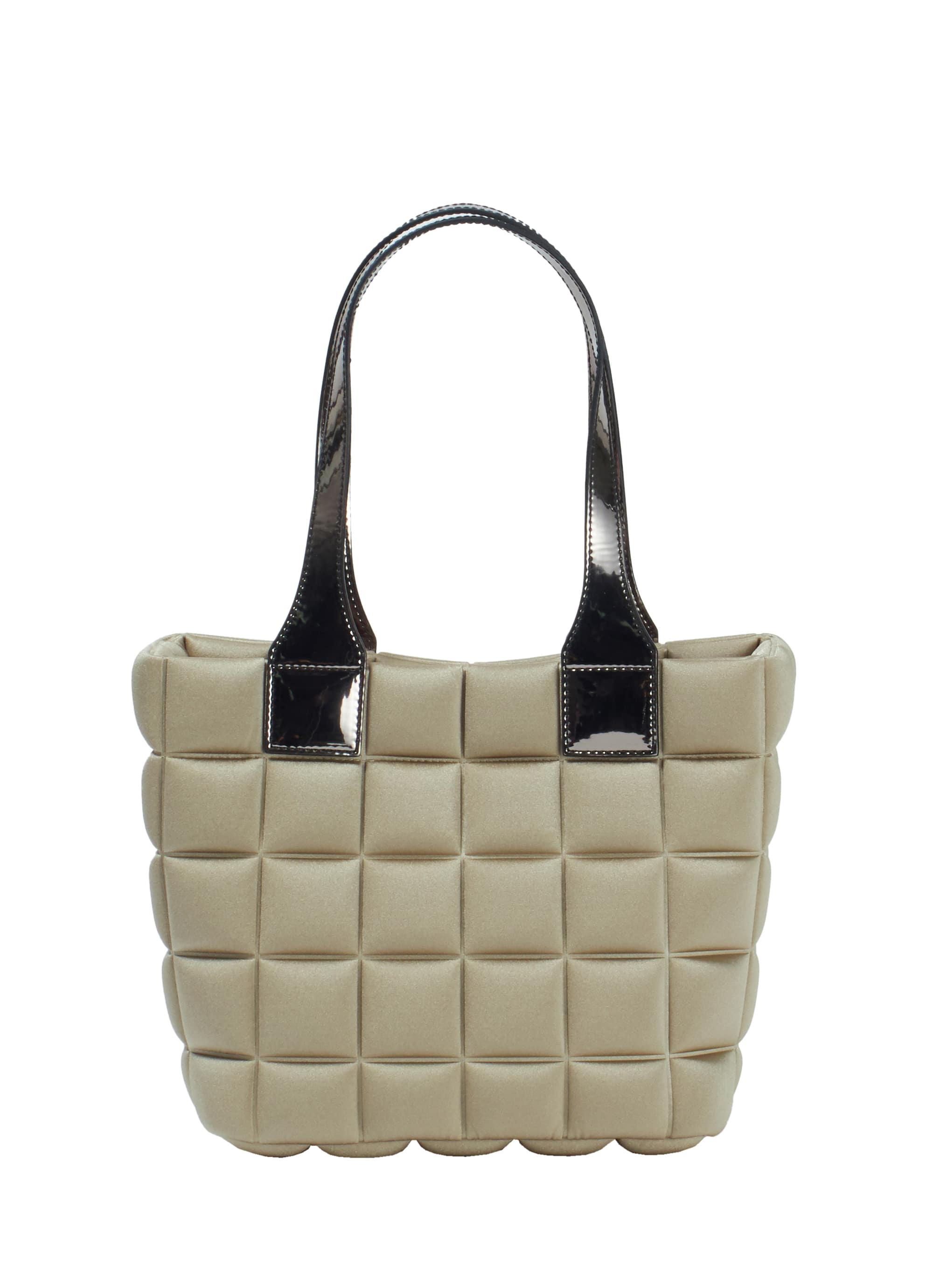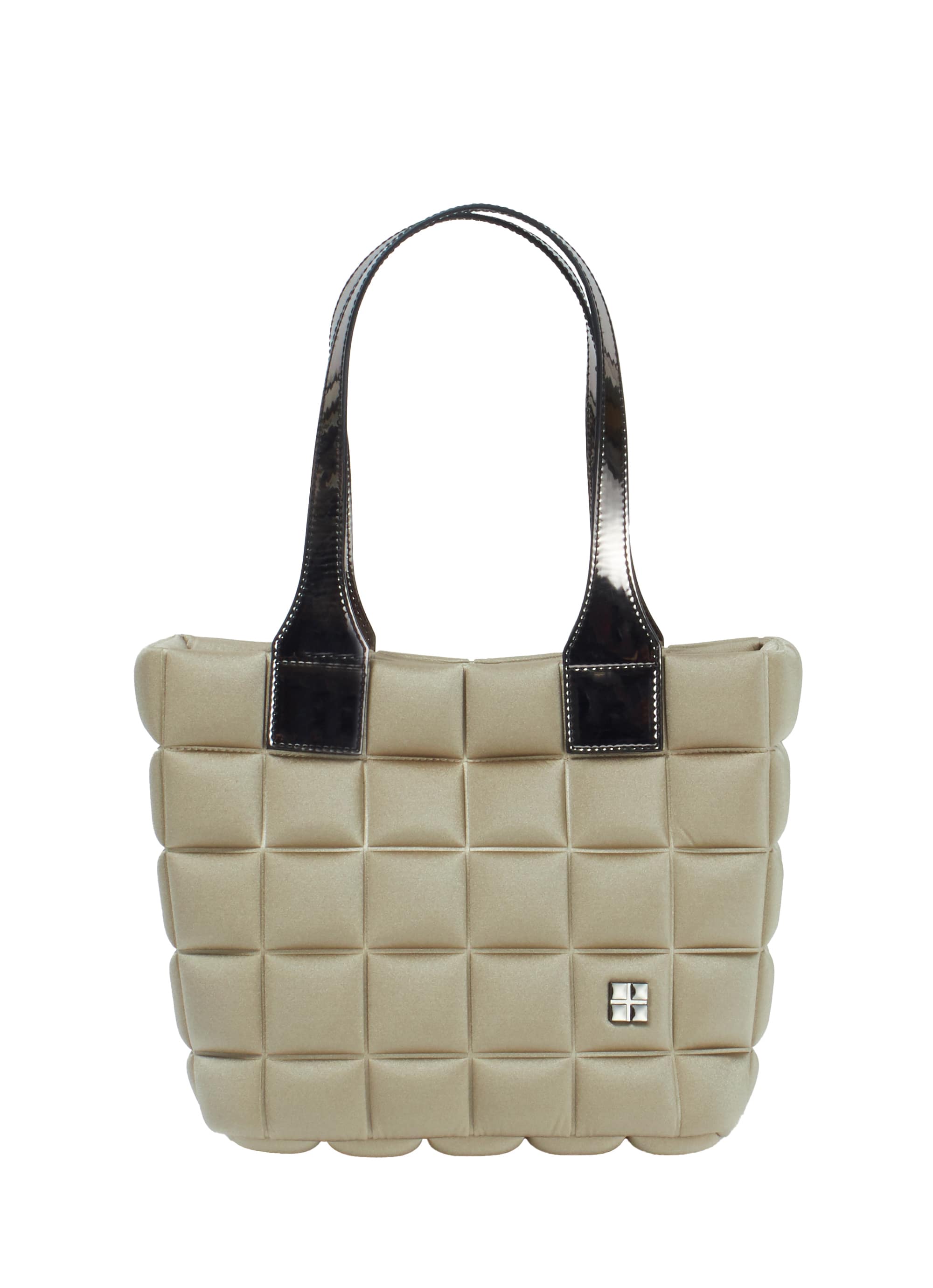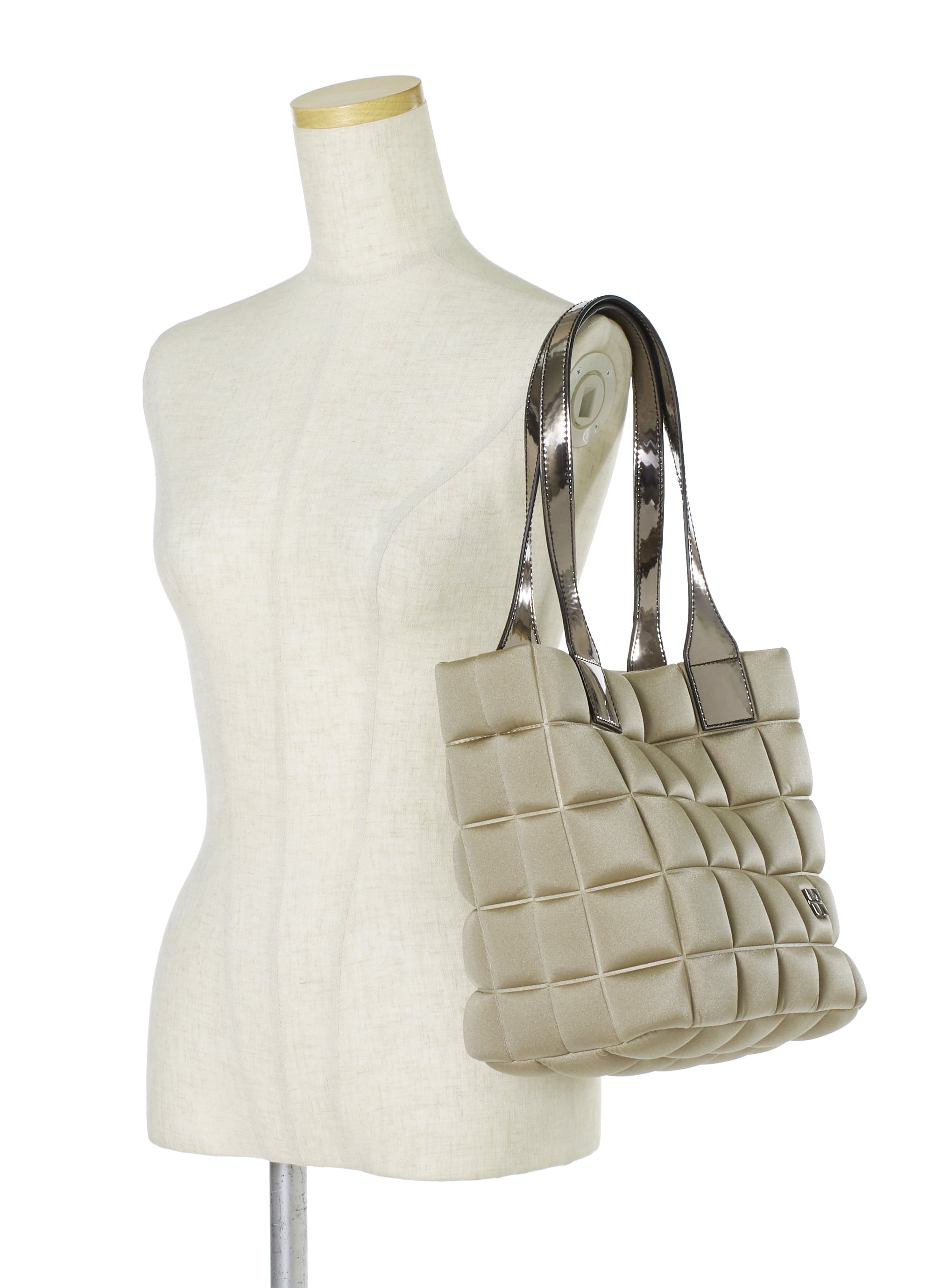 3Dプリントで成形されたBPRIMEの特徴的なキューブ素材を使用したトートバッグ。