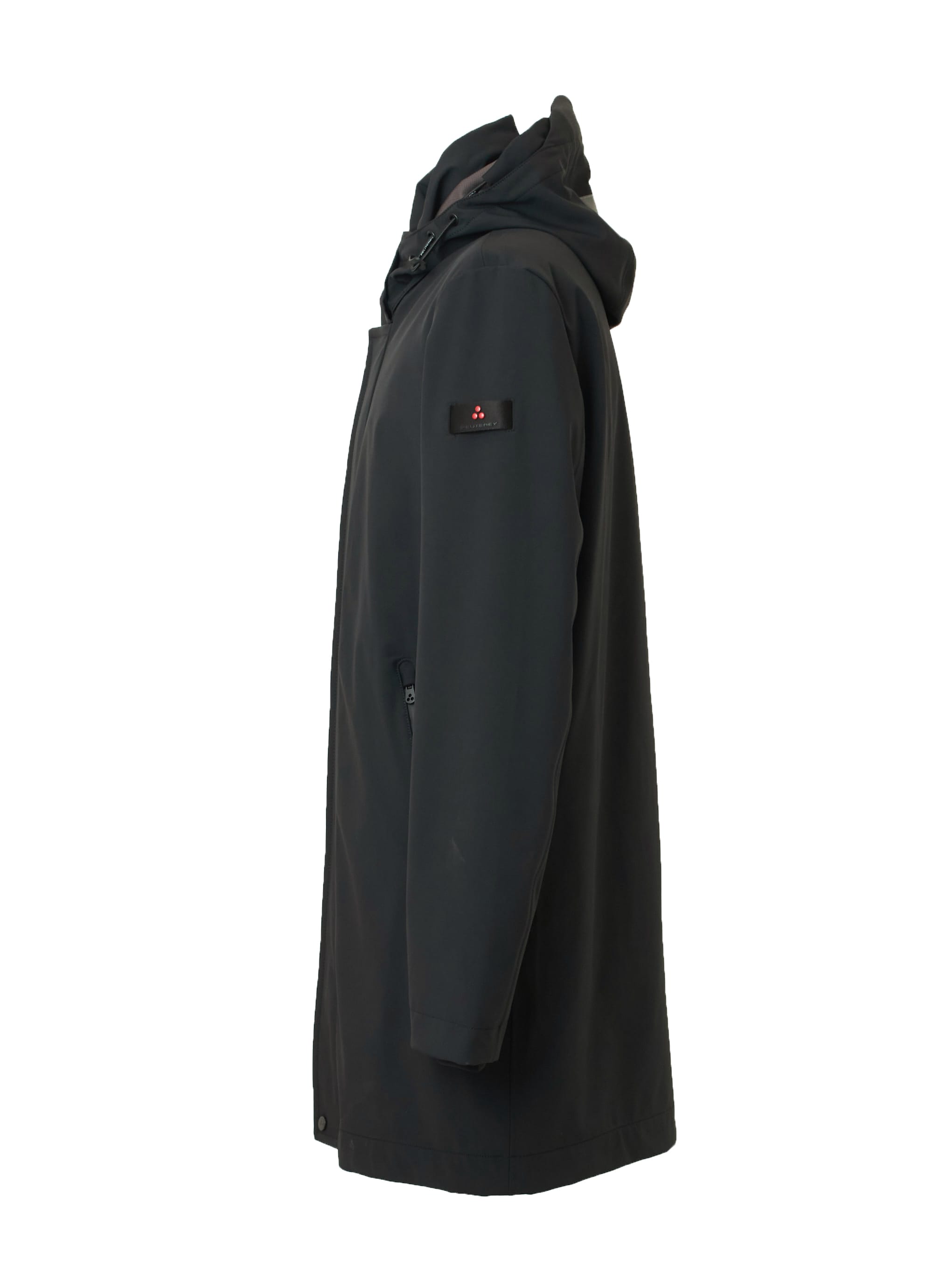 洗練されたデザインとアウトドア由来の機能性を融合した、PEUTEREYのハイパフォーマンストレンチコート。