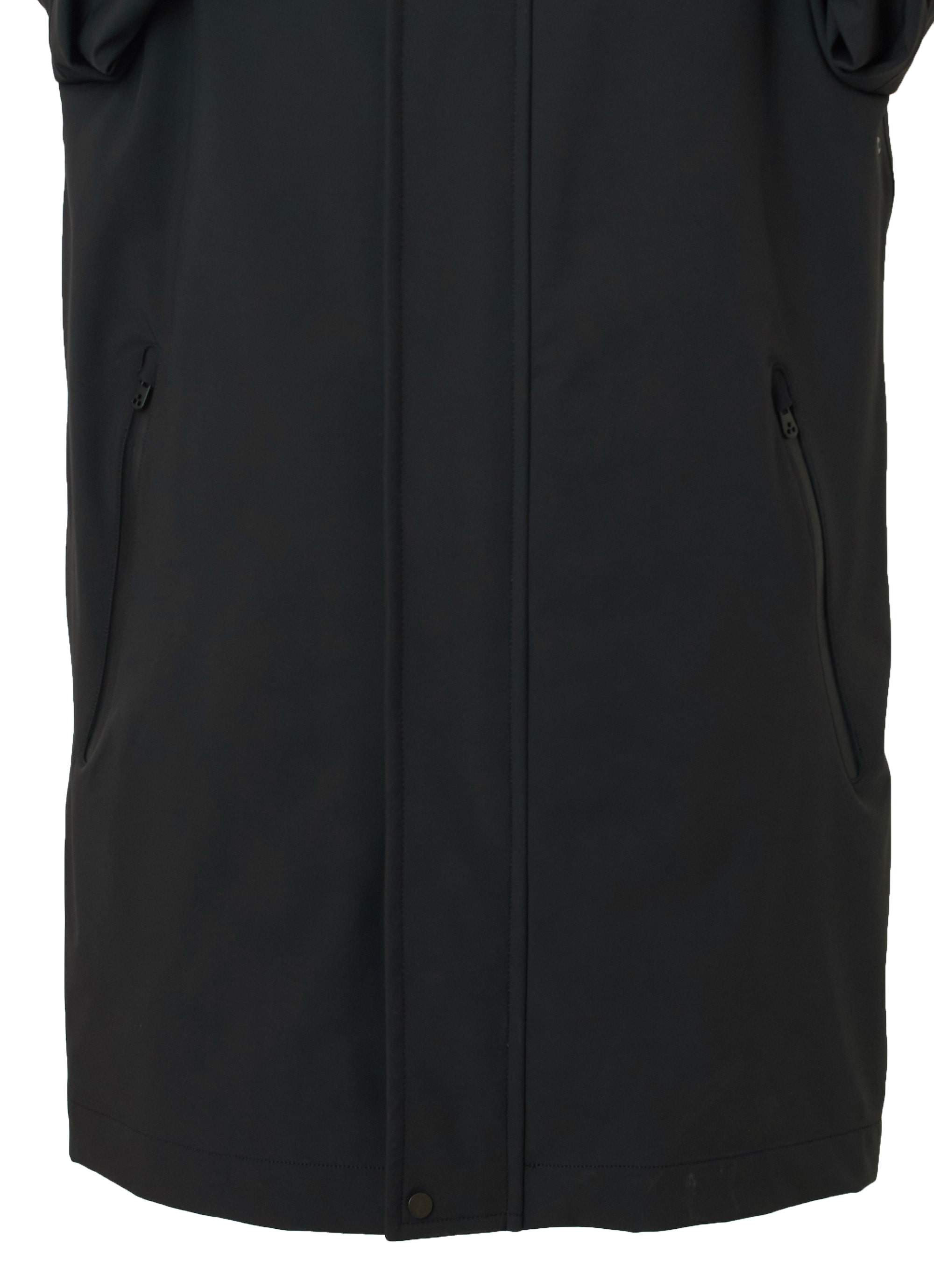 取り外し可能なフード、中央の隠しジップ開閉、サイドポケットなど、ディテールにもこだわりが光ります。