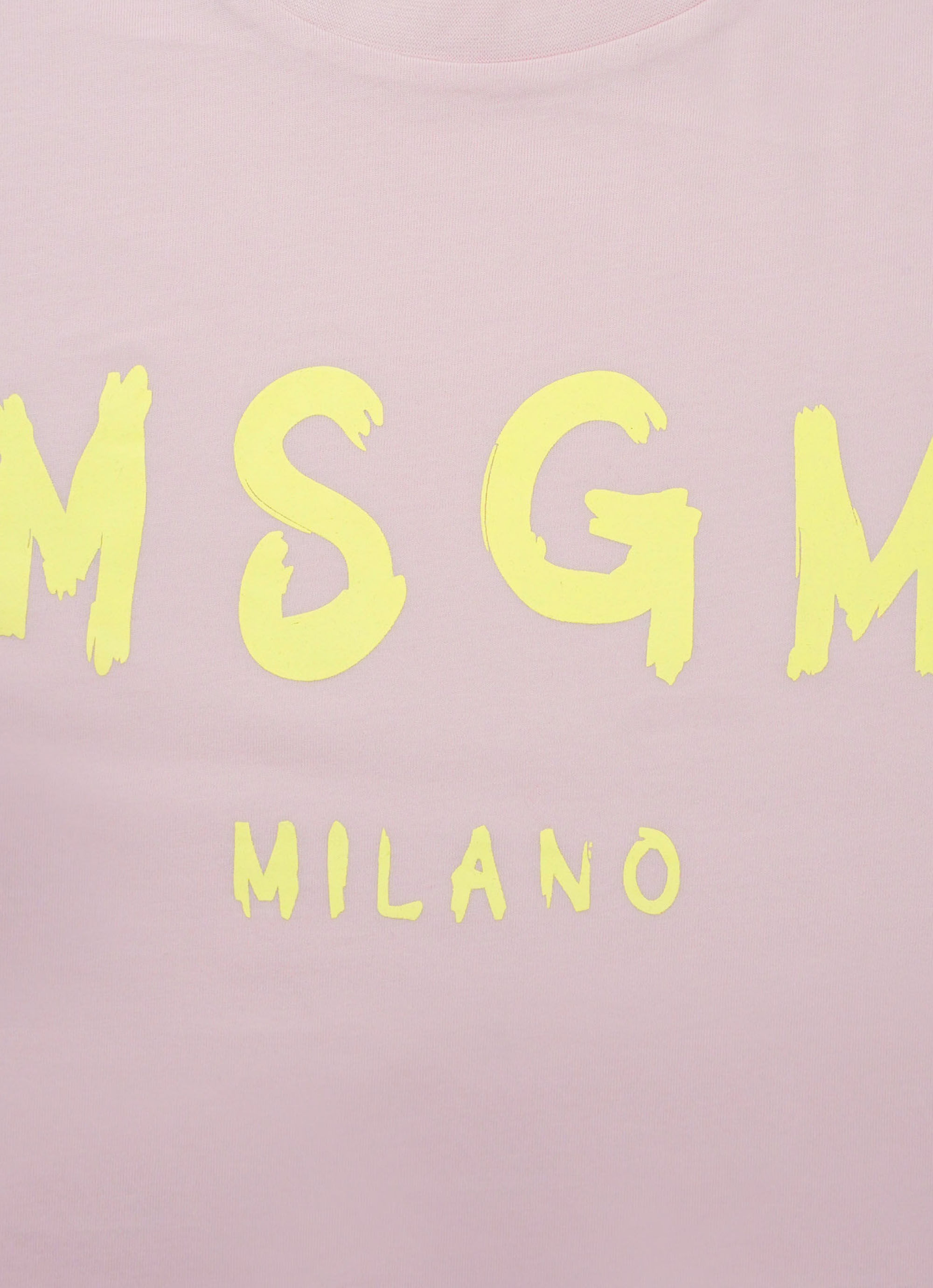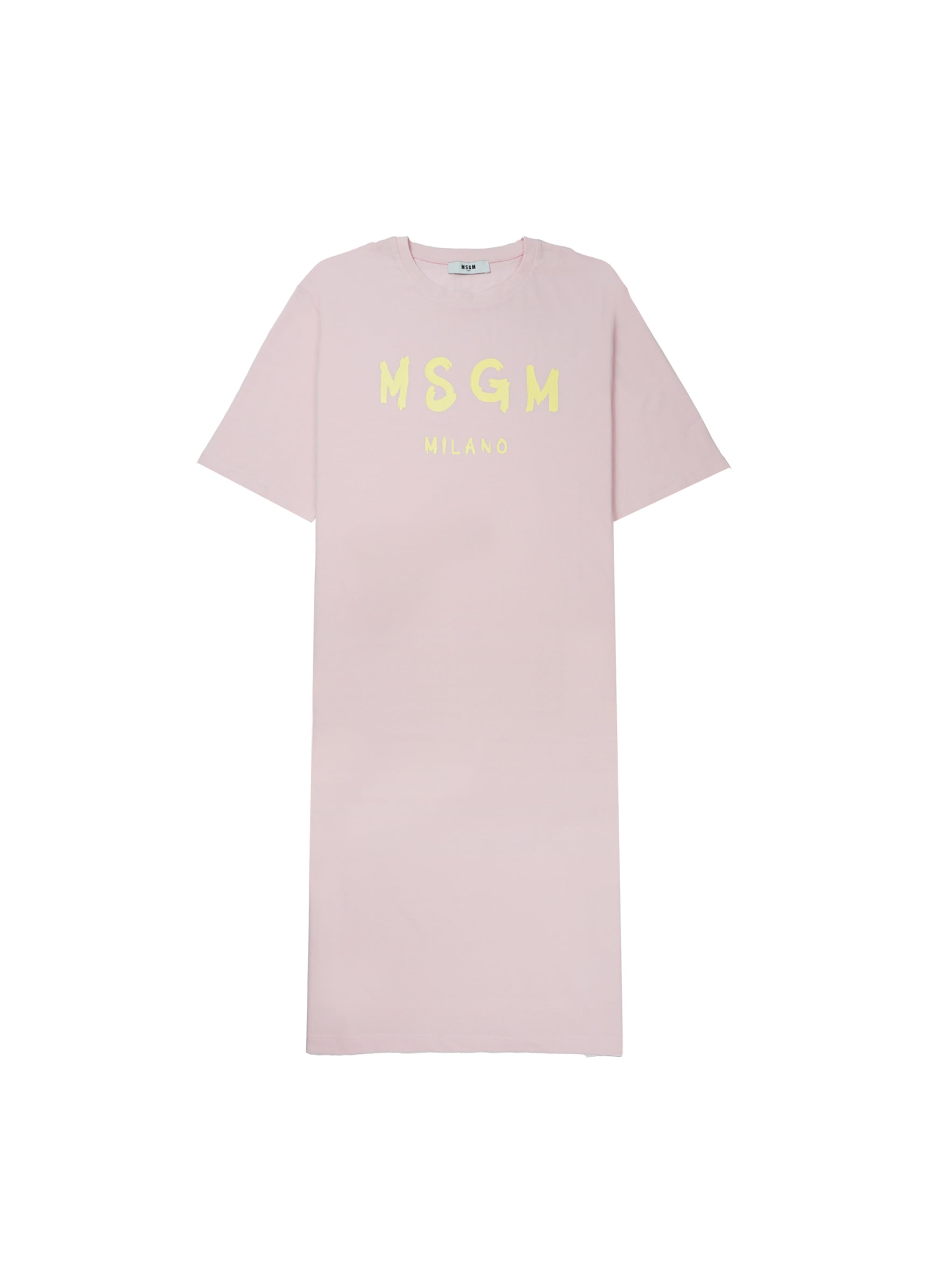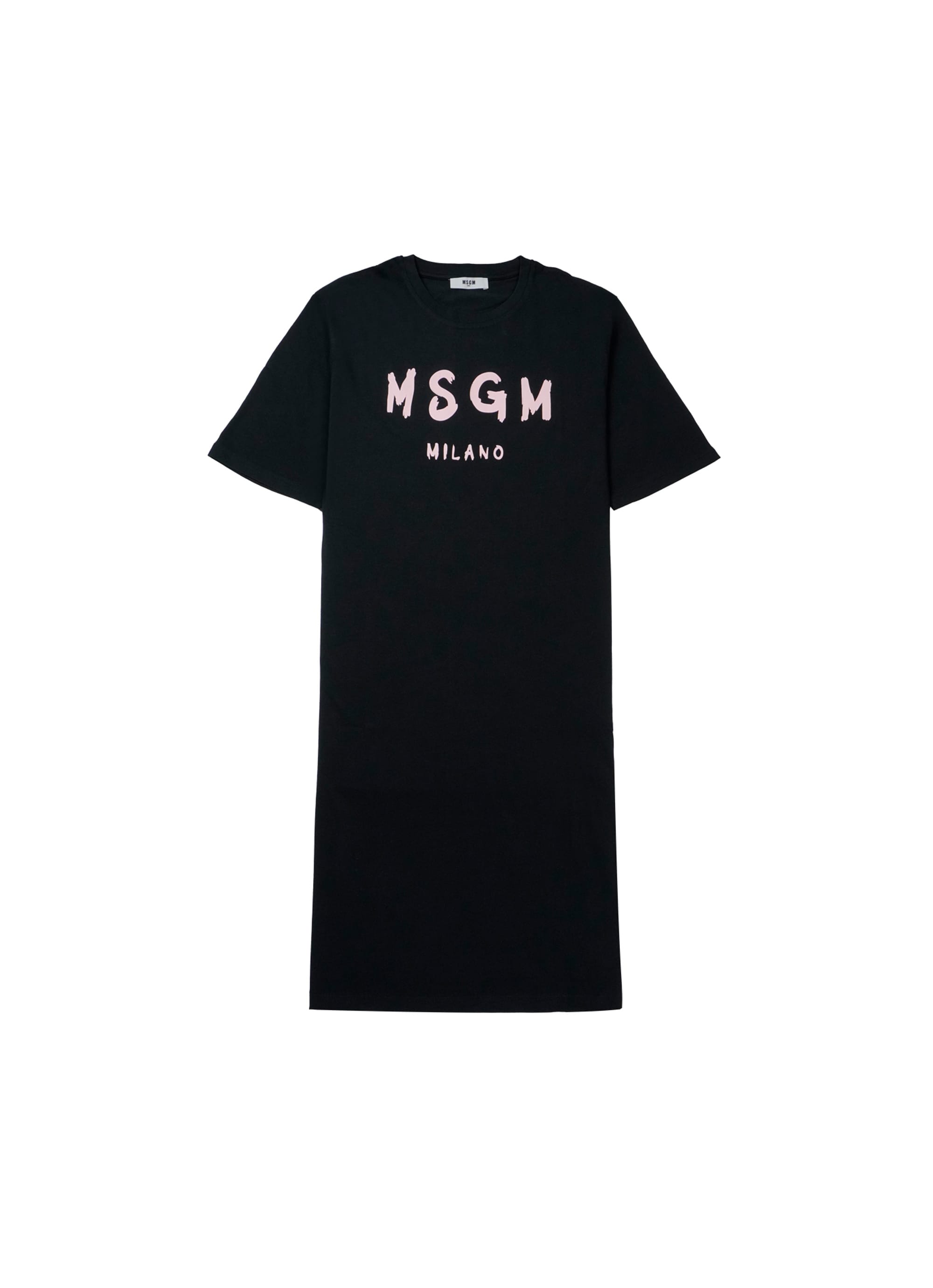 ブラッシュ(筆描き)ロゴをフロントに配した、MSGM定番のTシャツワンピース。