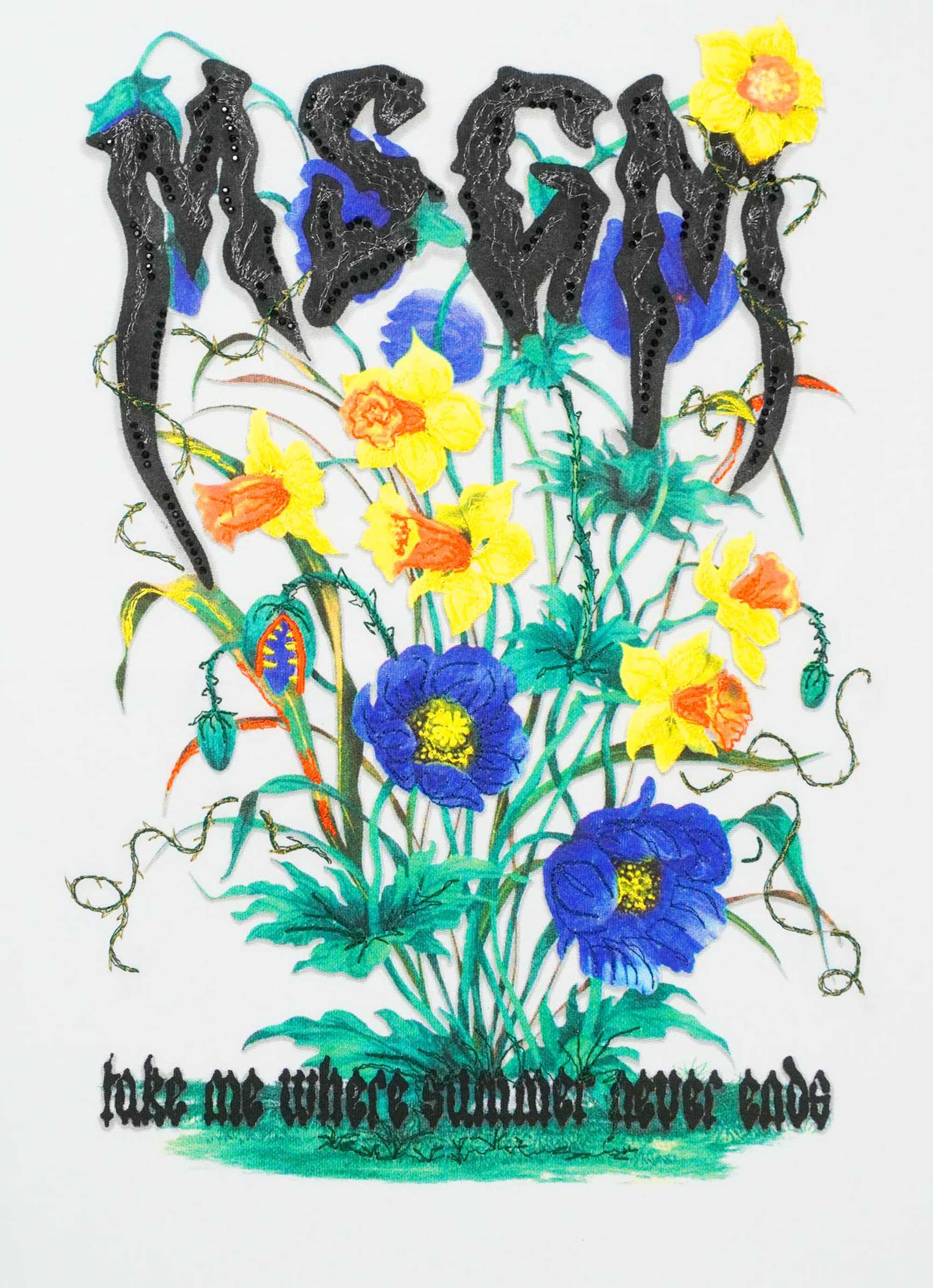 色鮮やかなグラフィックに立体的な刺繍を重ね、アート感と遊び心をプラス。