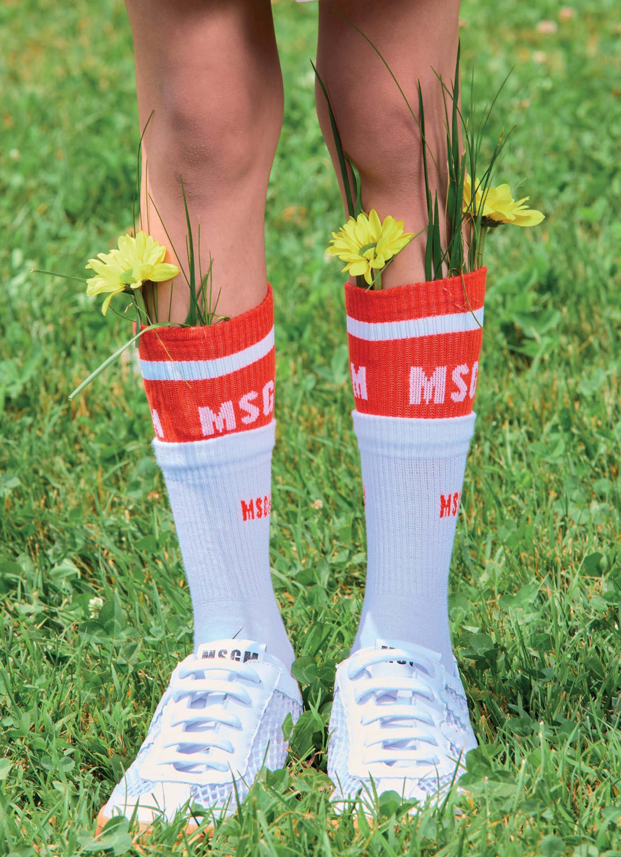 アイコニックなロゴを配した、デザイン性の高いキッズソックス。