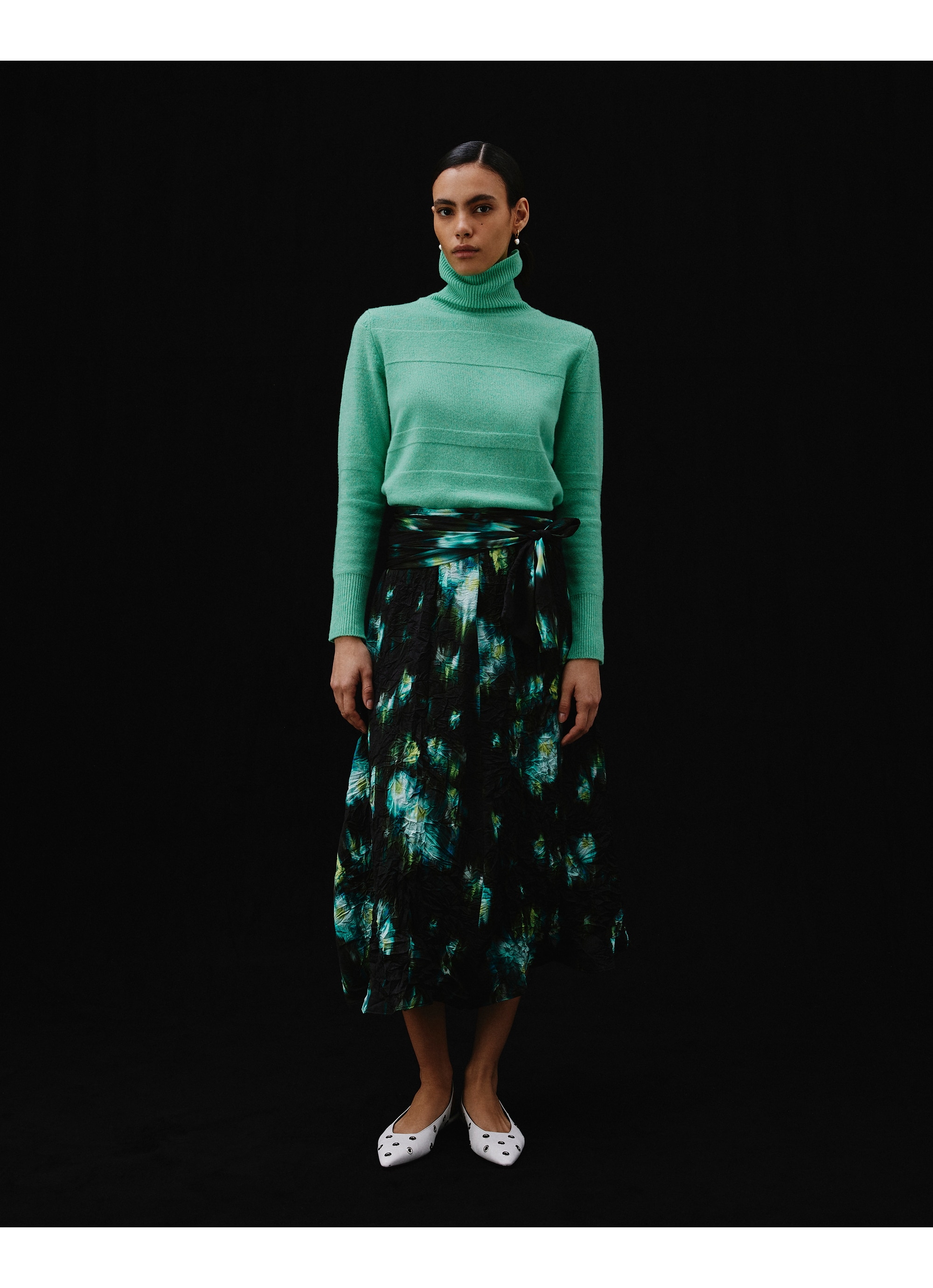 軽やかでさらりとしたポリエステル素材が動きに合わせて美しく揺れ、スタイリングにリズムを生み出します。