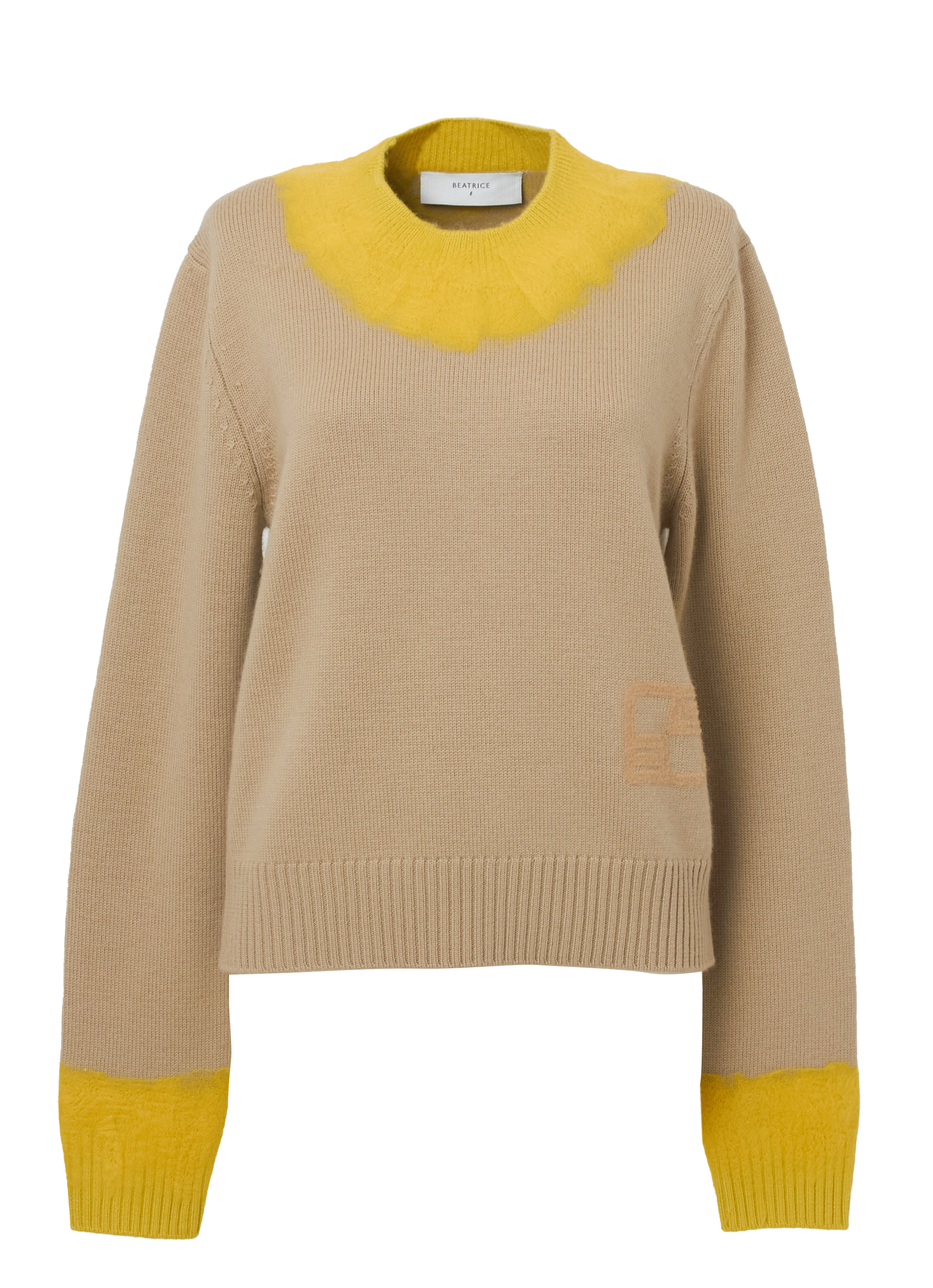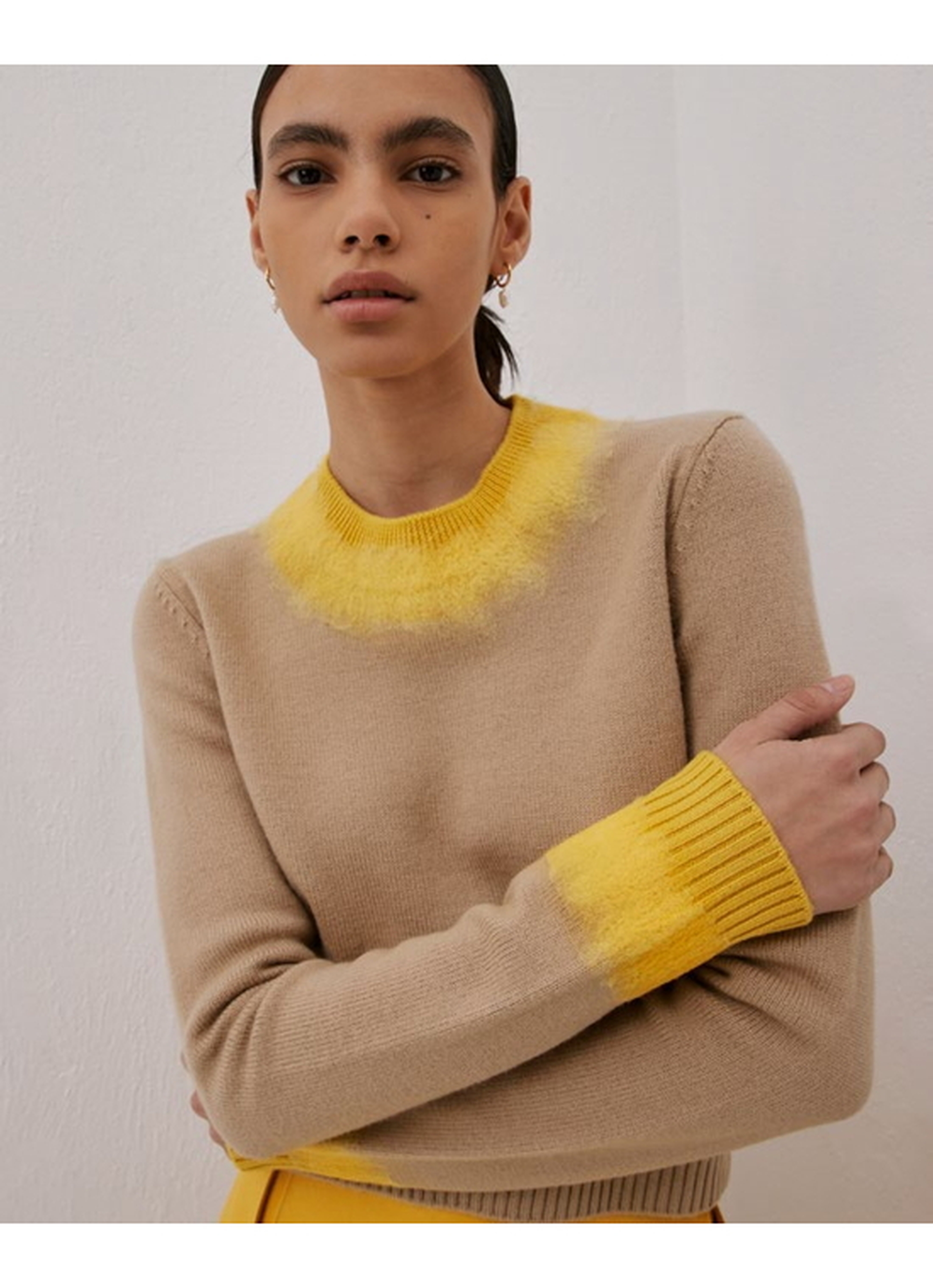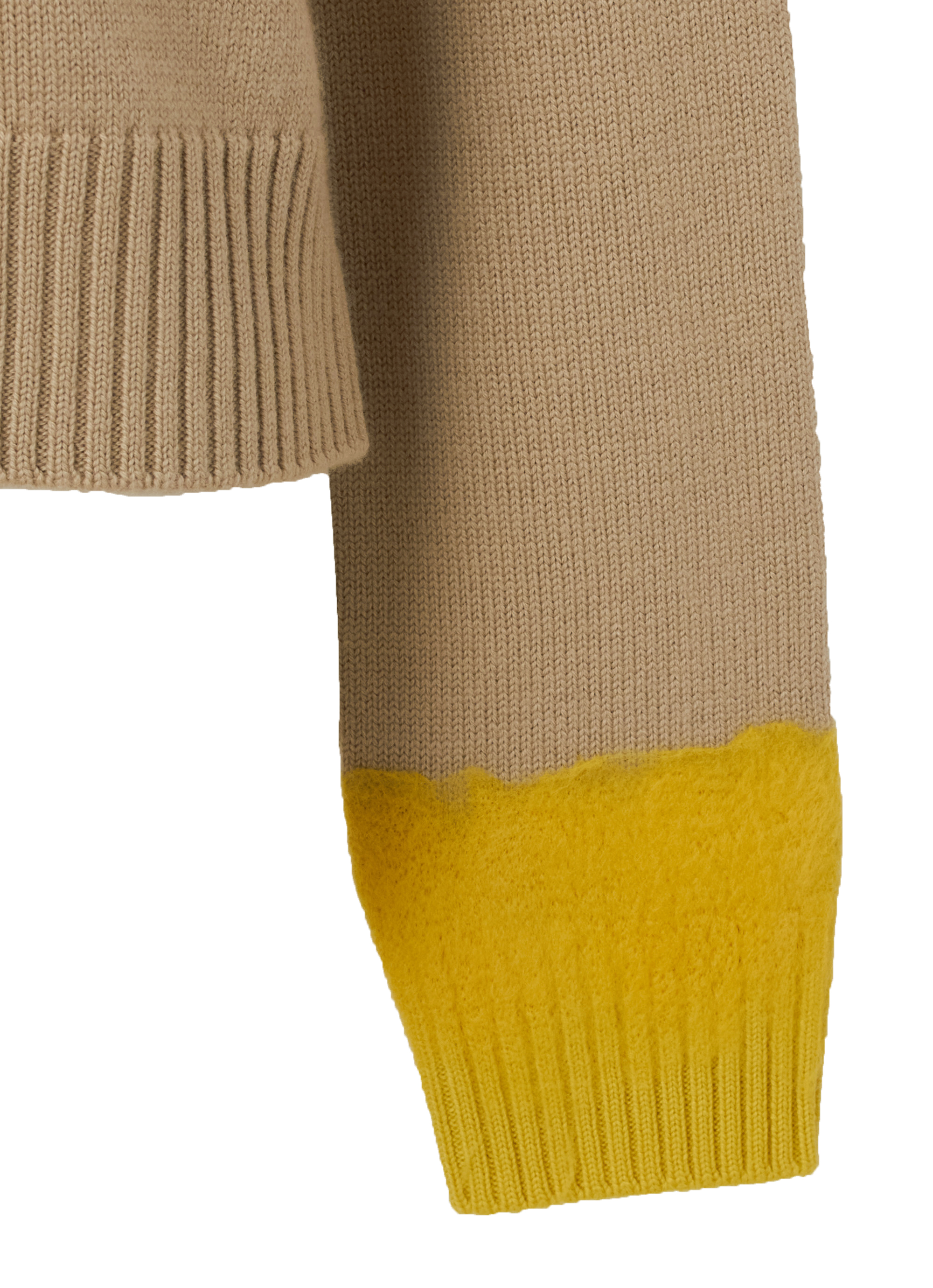 ウール100%の素材にニードルパンチ加工を施したニットトップ。