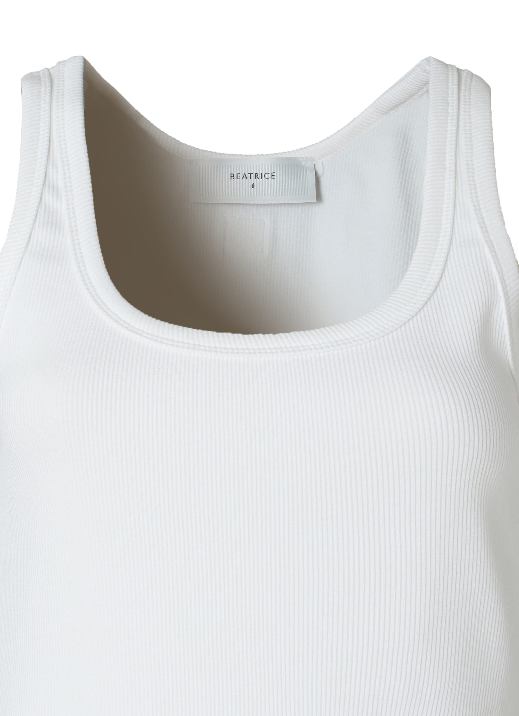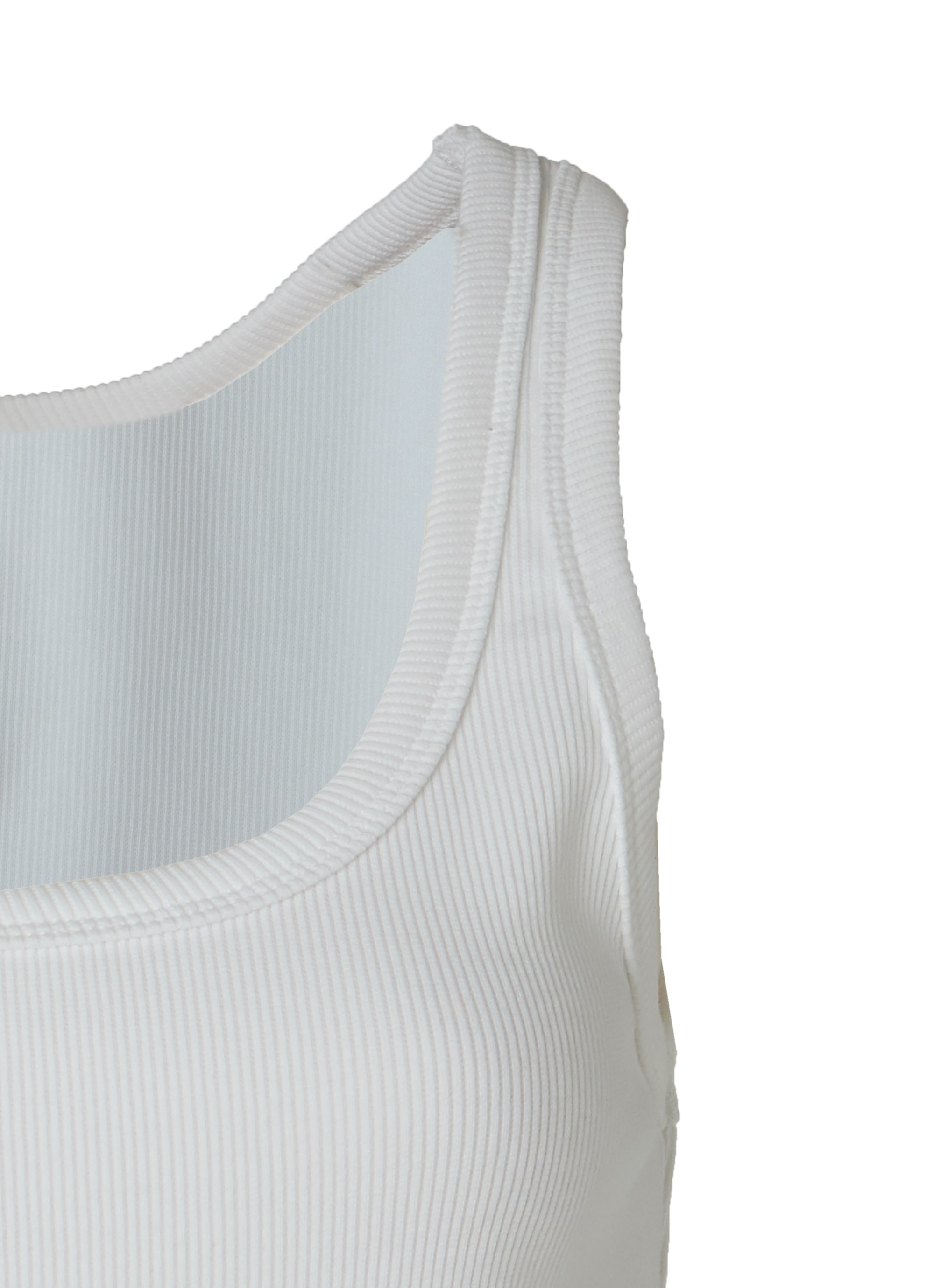 綿100%なので着心地も抜群。身体に程よくフィットする作りで、コーディネートのシルエットを邪魔しません。デコルテを美しく見せるネックまわりと細目のストラップはフェミニンな雰囲気。一枚あれば大活躍するお勧めのタンクトップです。