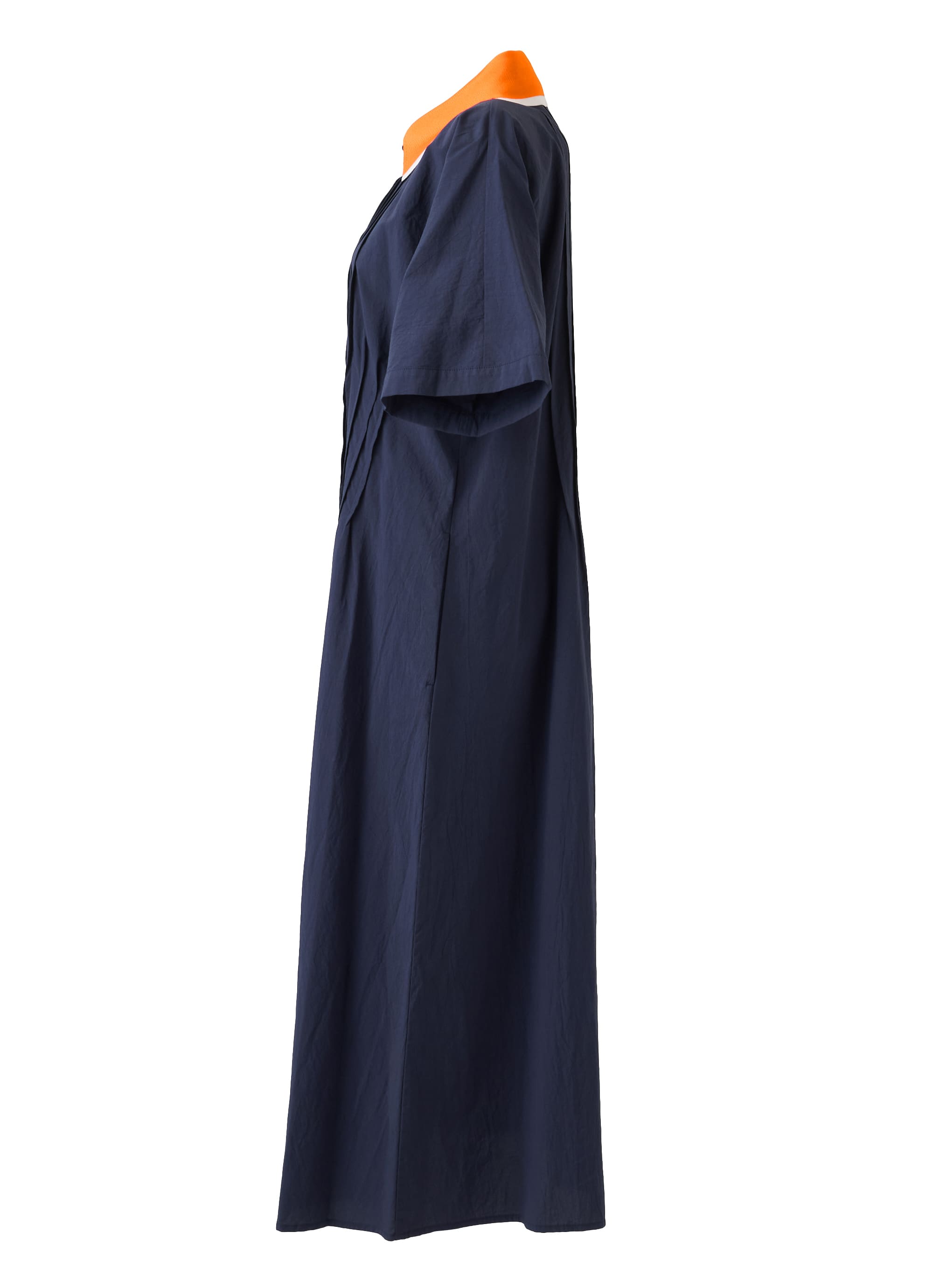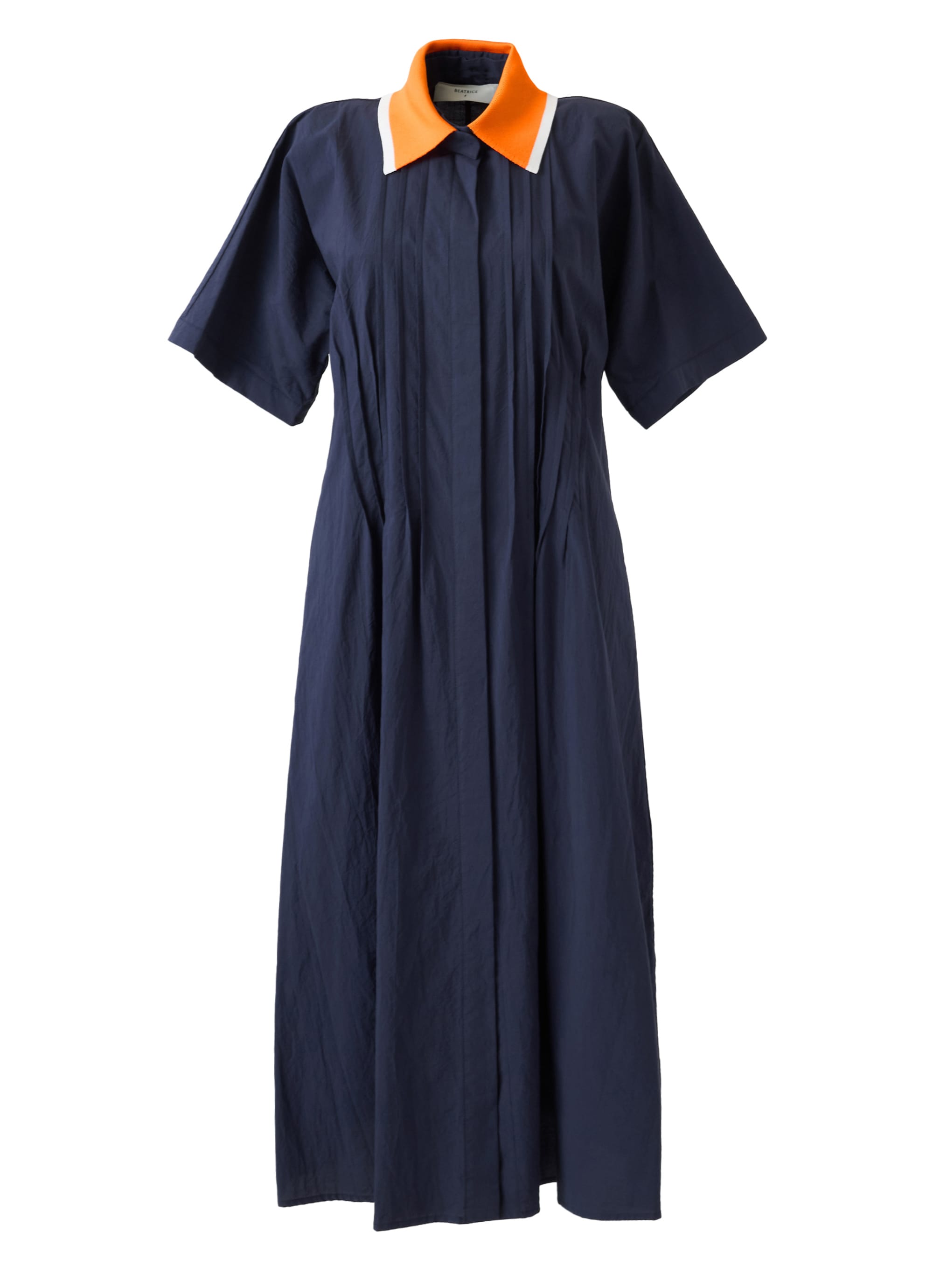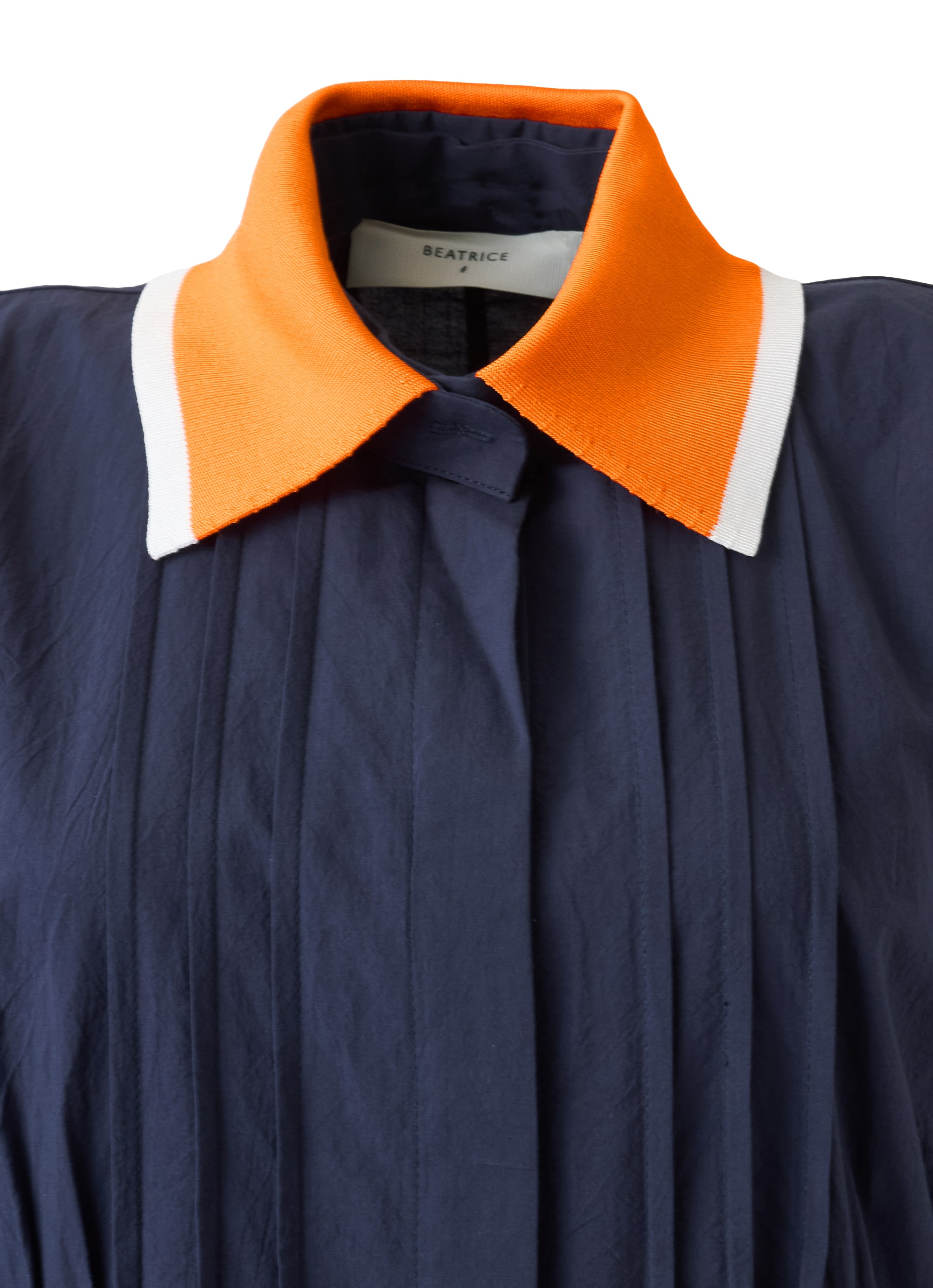 軽やかなコットン100%素材を使用した、BEATRICE.b のバイカラーカラーシャツドレス。