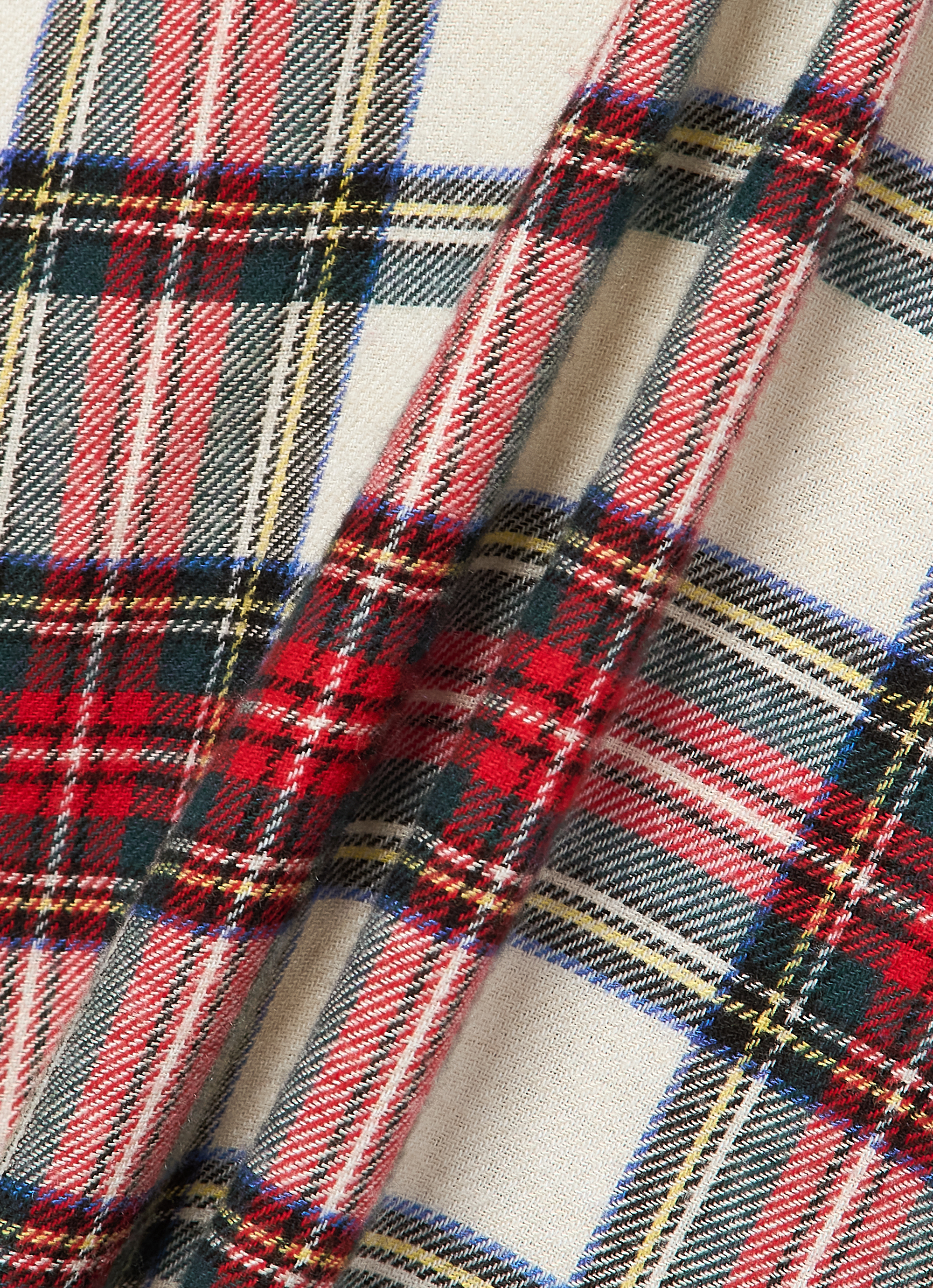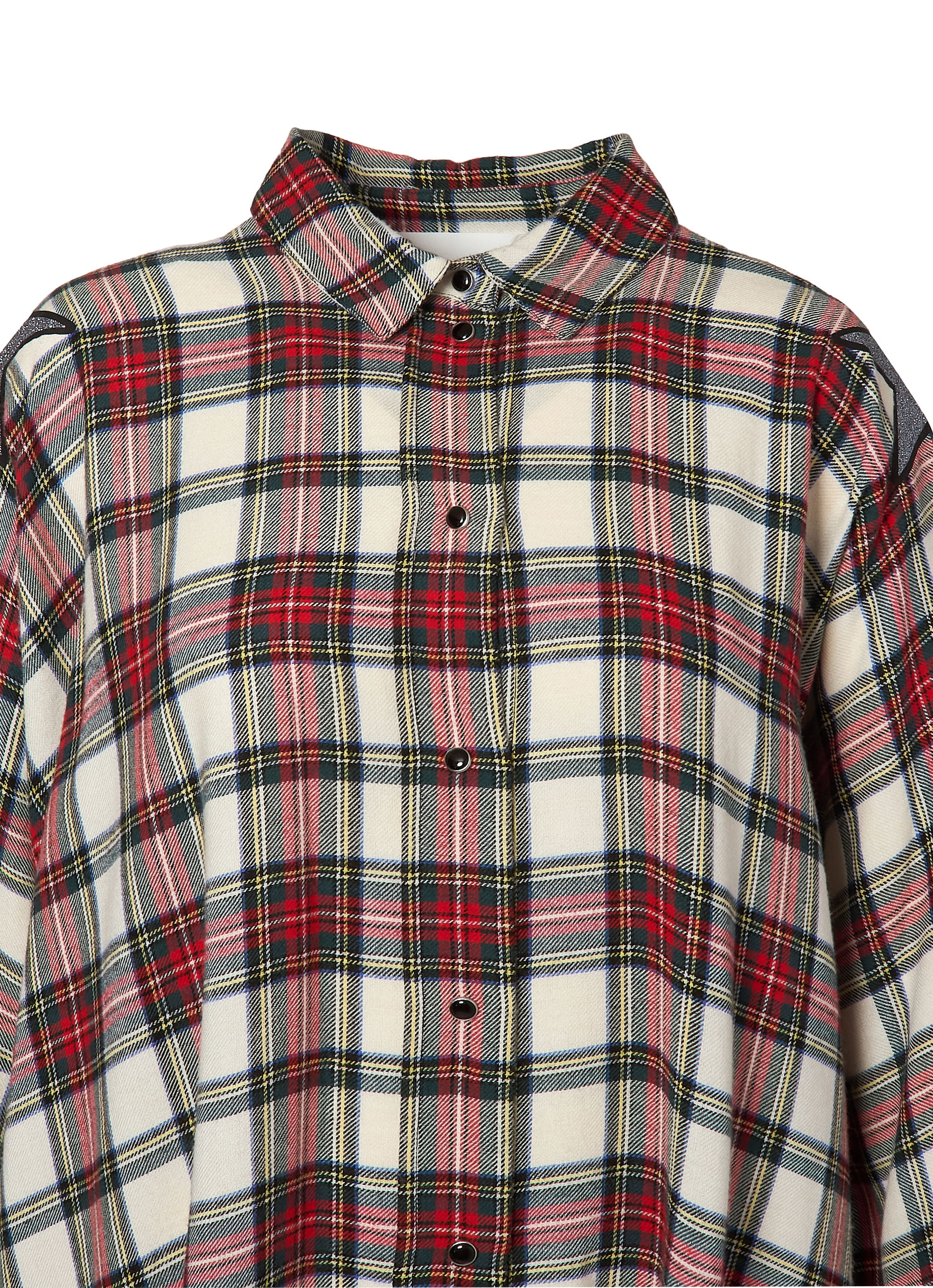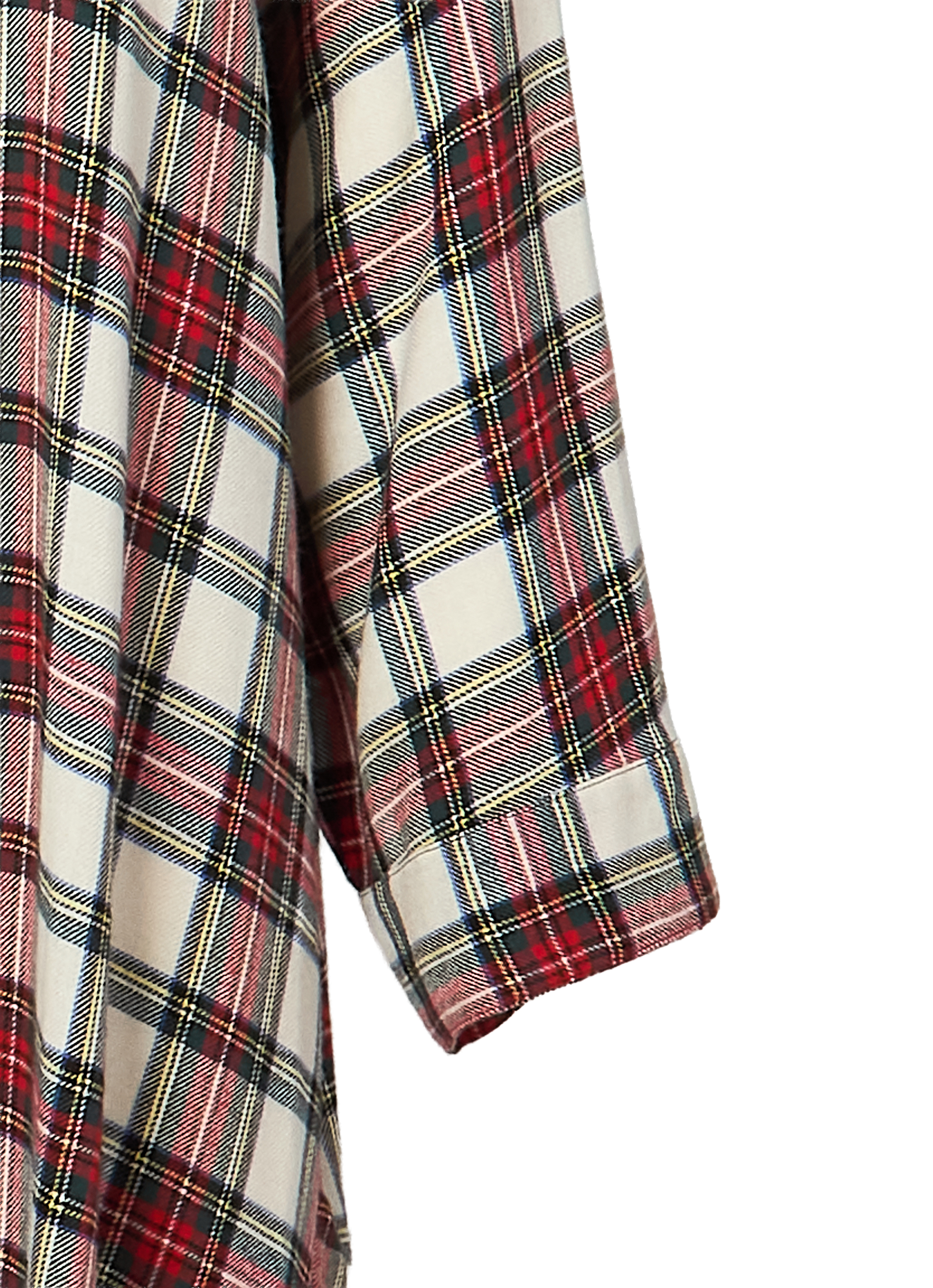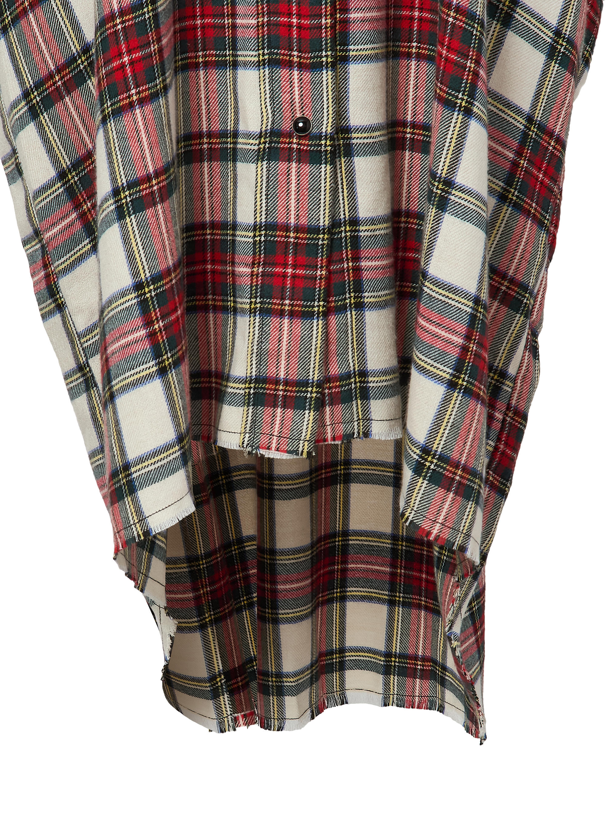 クラシックなチェックパターンに、前後差のあるヘムラインを取り入れたデザインが特徴で、後ろ身頃は長めに設計され、動きのある美しいシルエットを演出します。