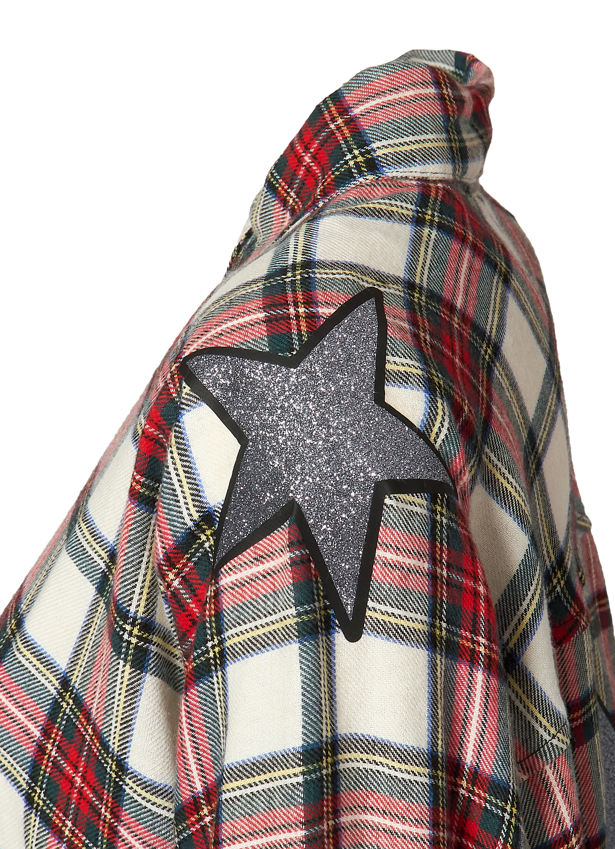 背面にはブランドの象徴「8」のグリッタープリントが大胆に配置され、肩部分には星型のパッチが施されており、遊び心と個性を感じさせるディテールが魅力。
