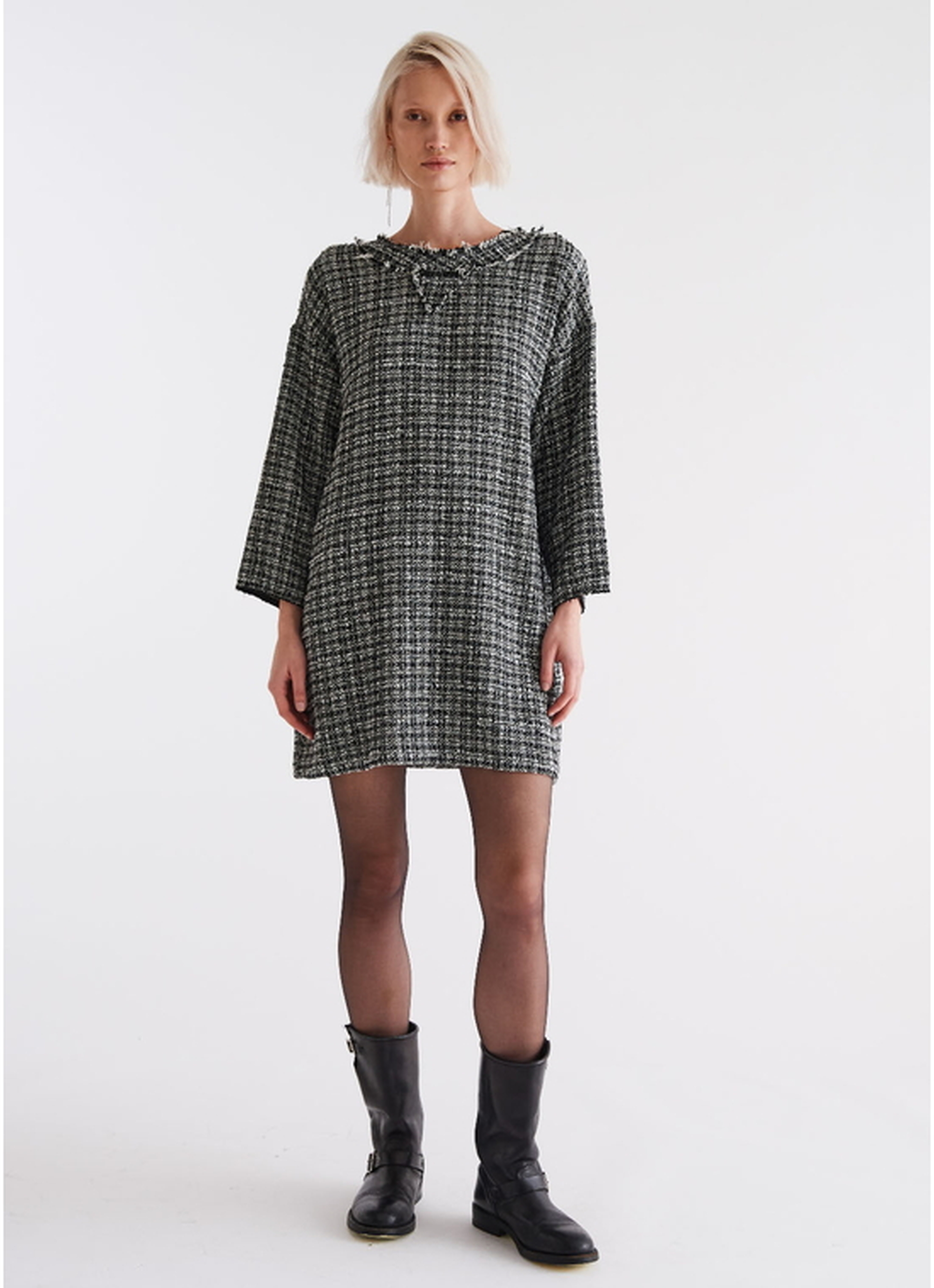 イタリアブランド「8PM」が提案する、洗練されたチェック柄のロングスリーブドレス。
