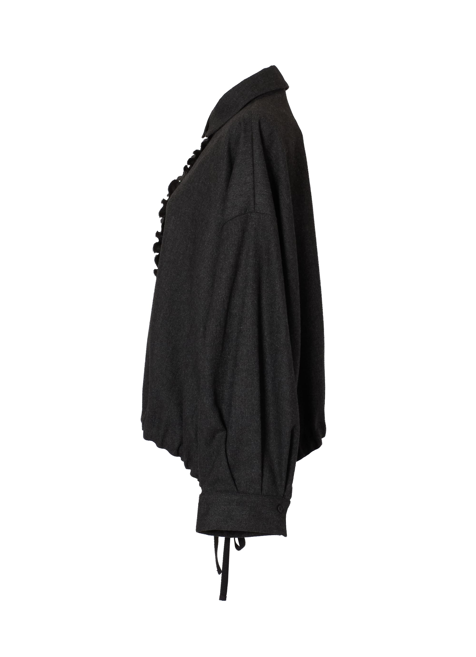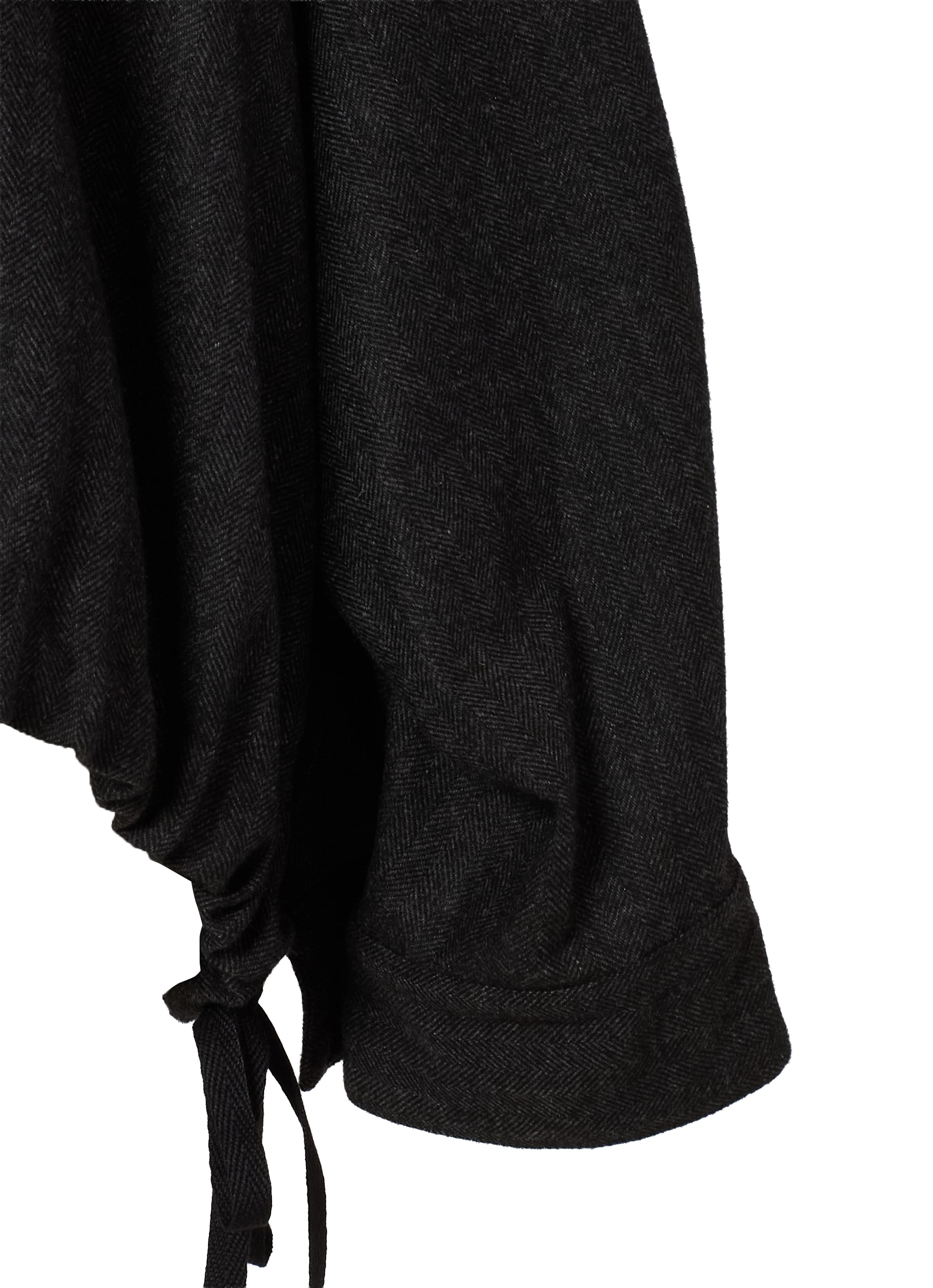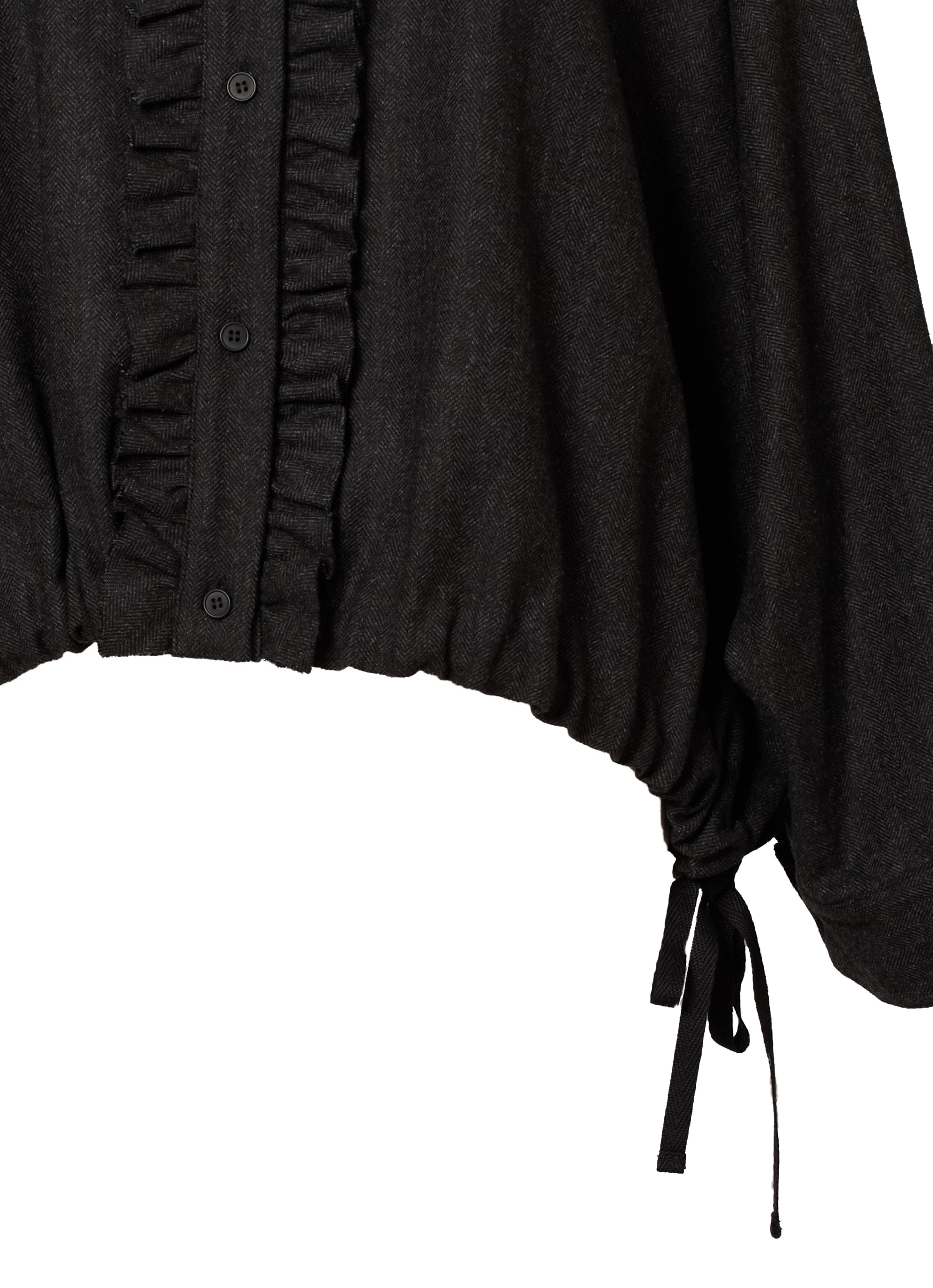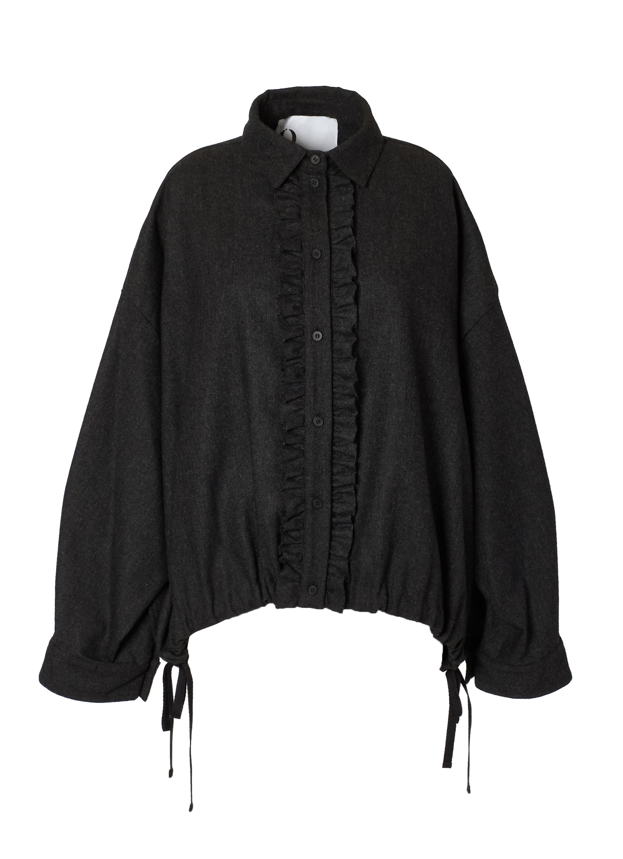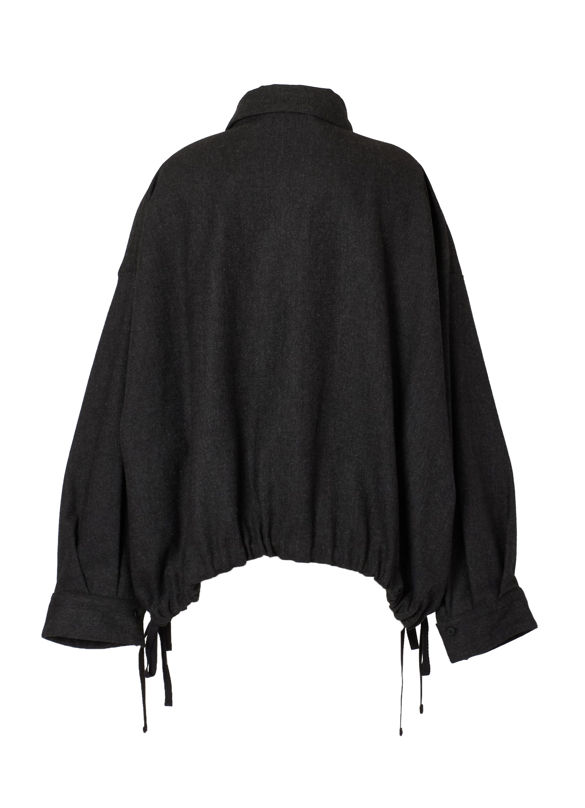 身頃の両サイドにはドローストリングが配されており、シルエットにニュアンスを加えるディテールとして機能。