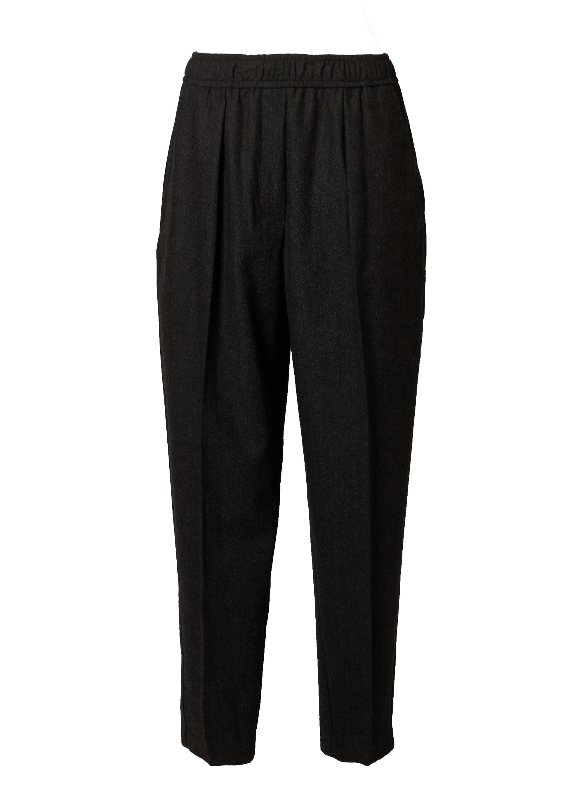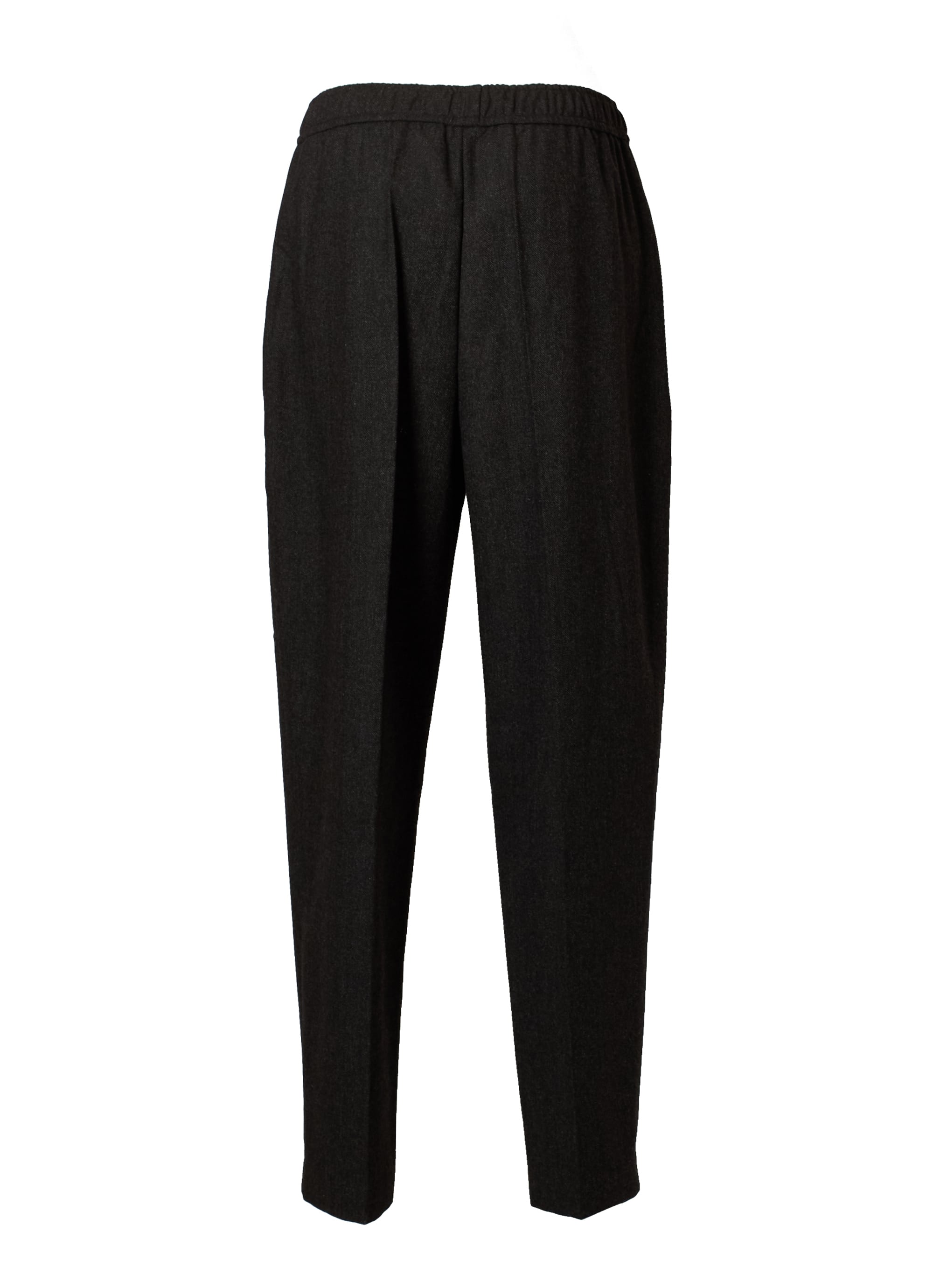 ウエストはギャザー入りのイージー仕様で、ストレスフリーな着用感を実現。センタープレスが縦のラインを強調し脚をすっきりと見せてくれます。
