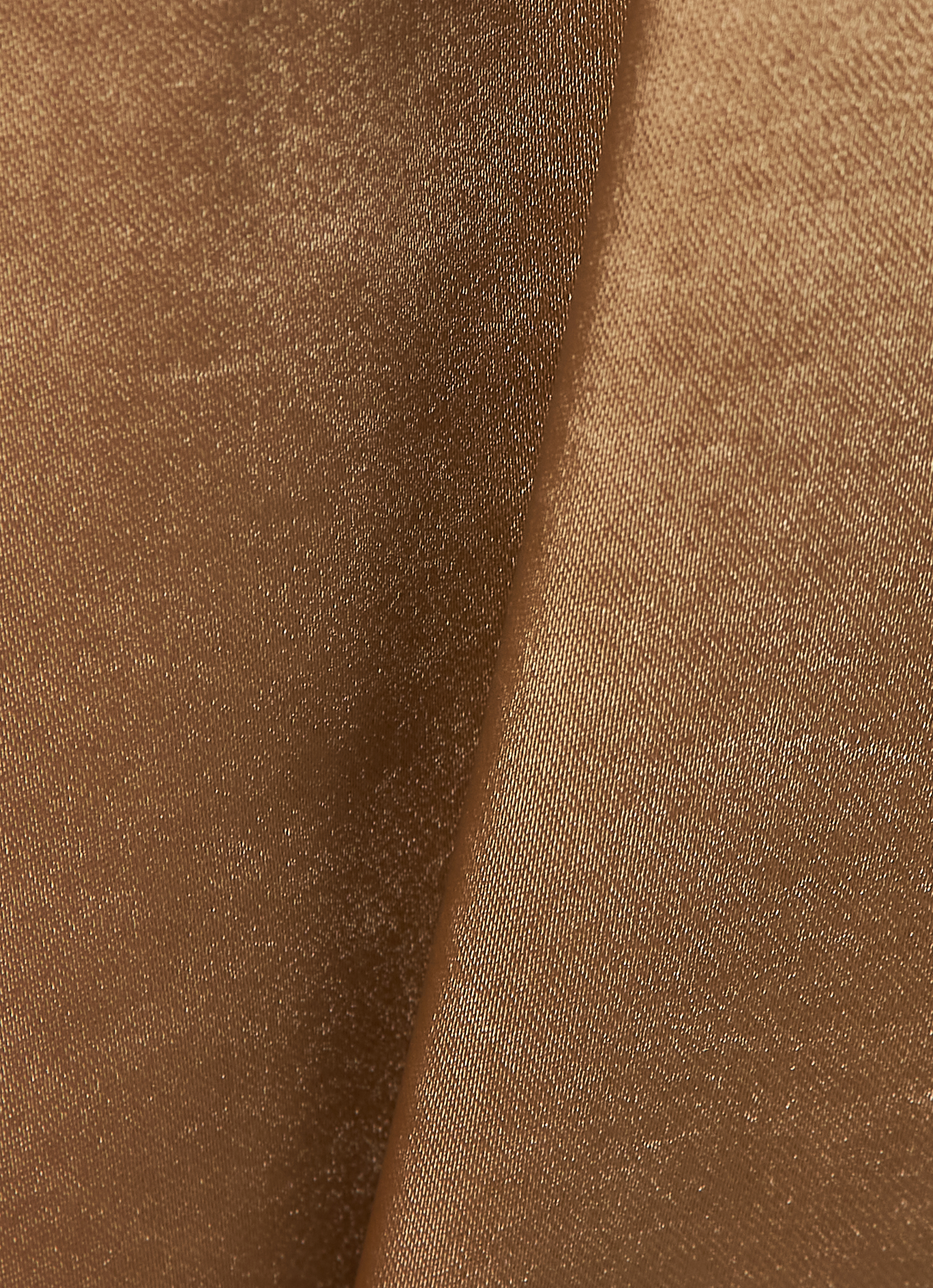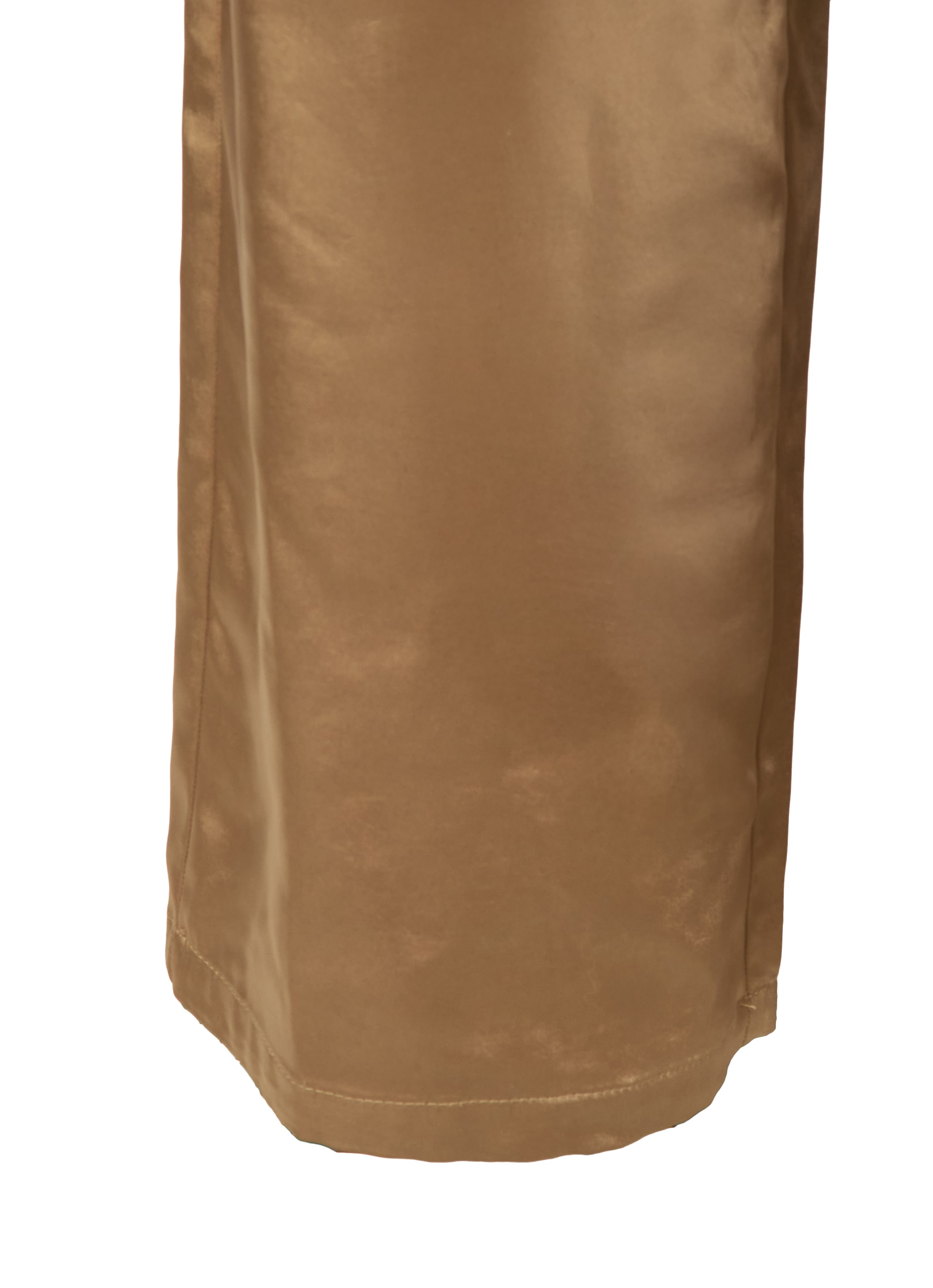 なめらかな光沢感のある素材が、動くたびに美しいドレープを生み出し、上品で洗練された印象を与えます。
