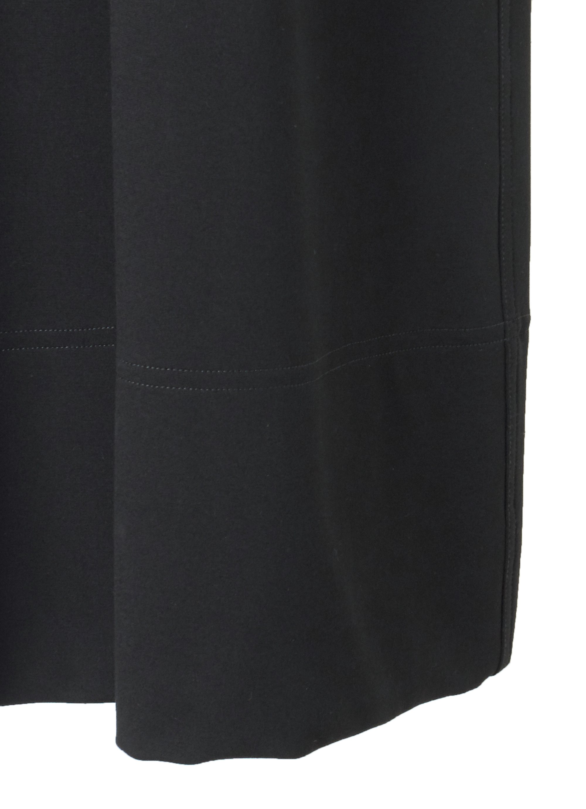 シンプルなスタイリングにウエストと裾のステッチで立体感を出した、クリーンなイメージのアイテム。後ろファスナー仕様。サイドポケット付き。