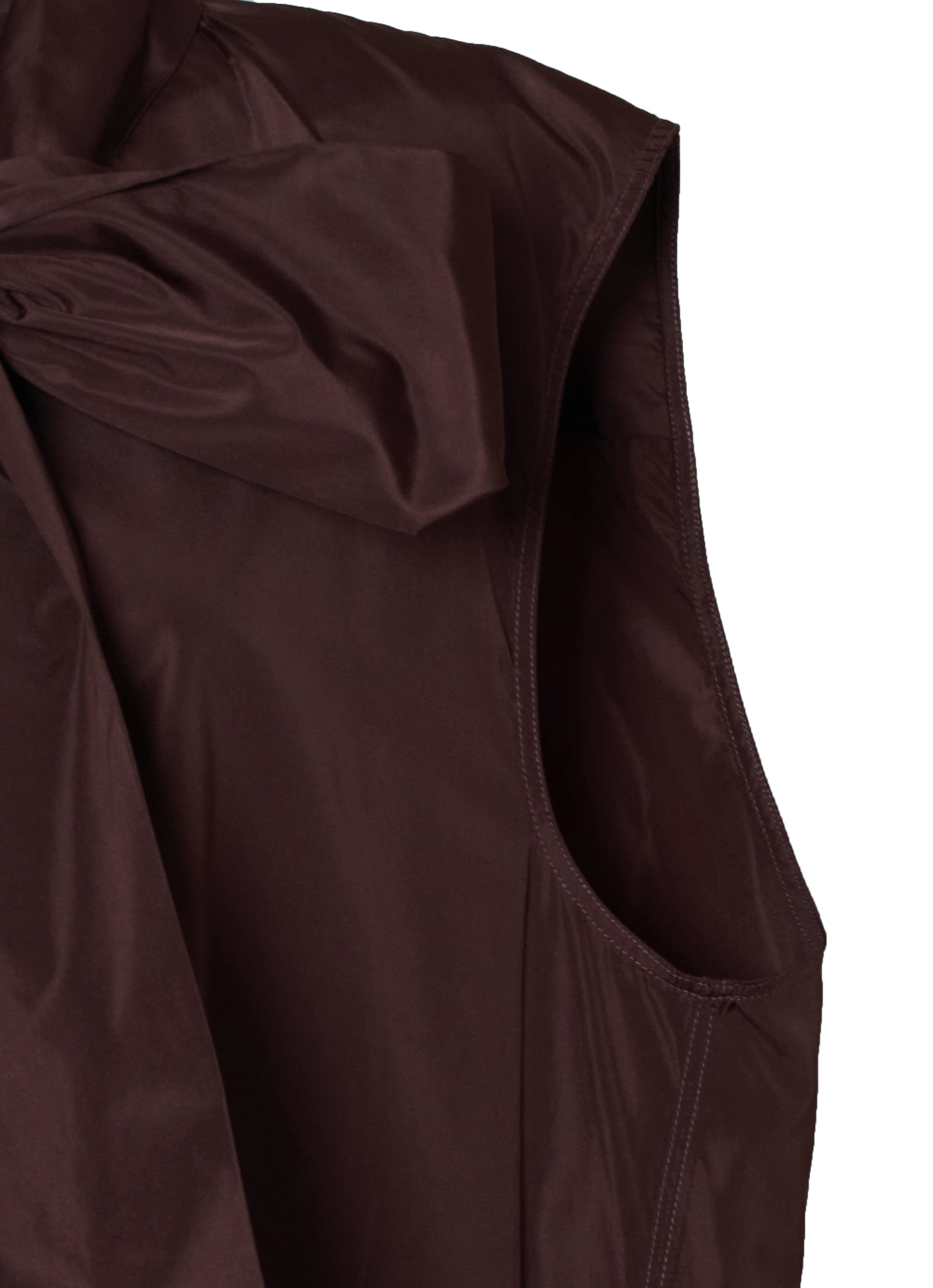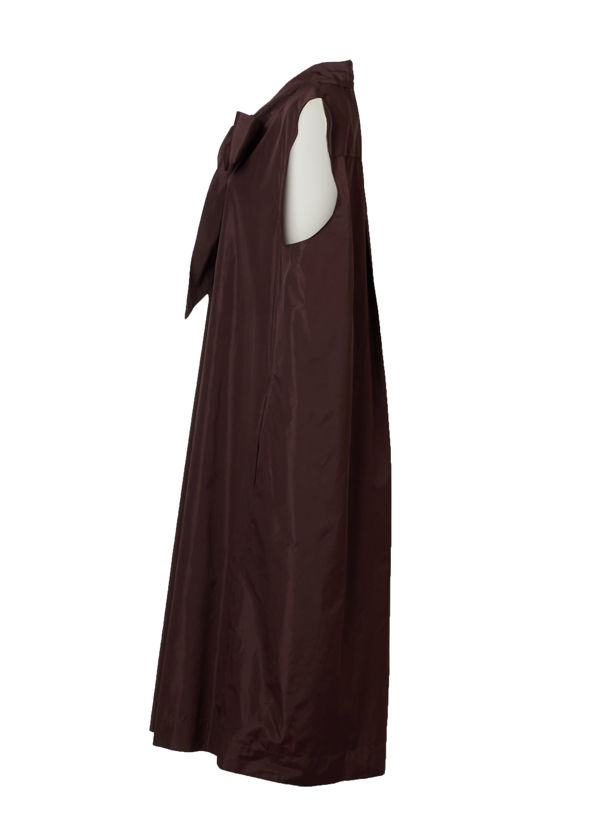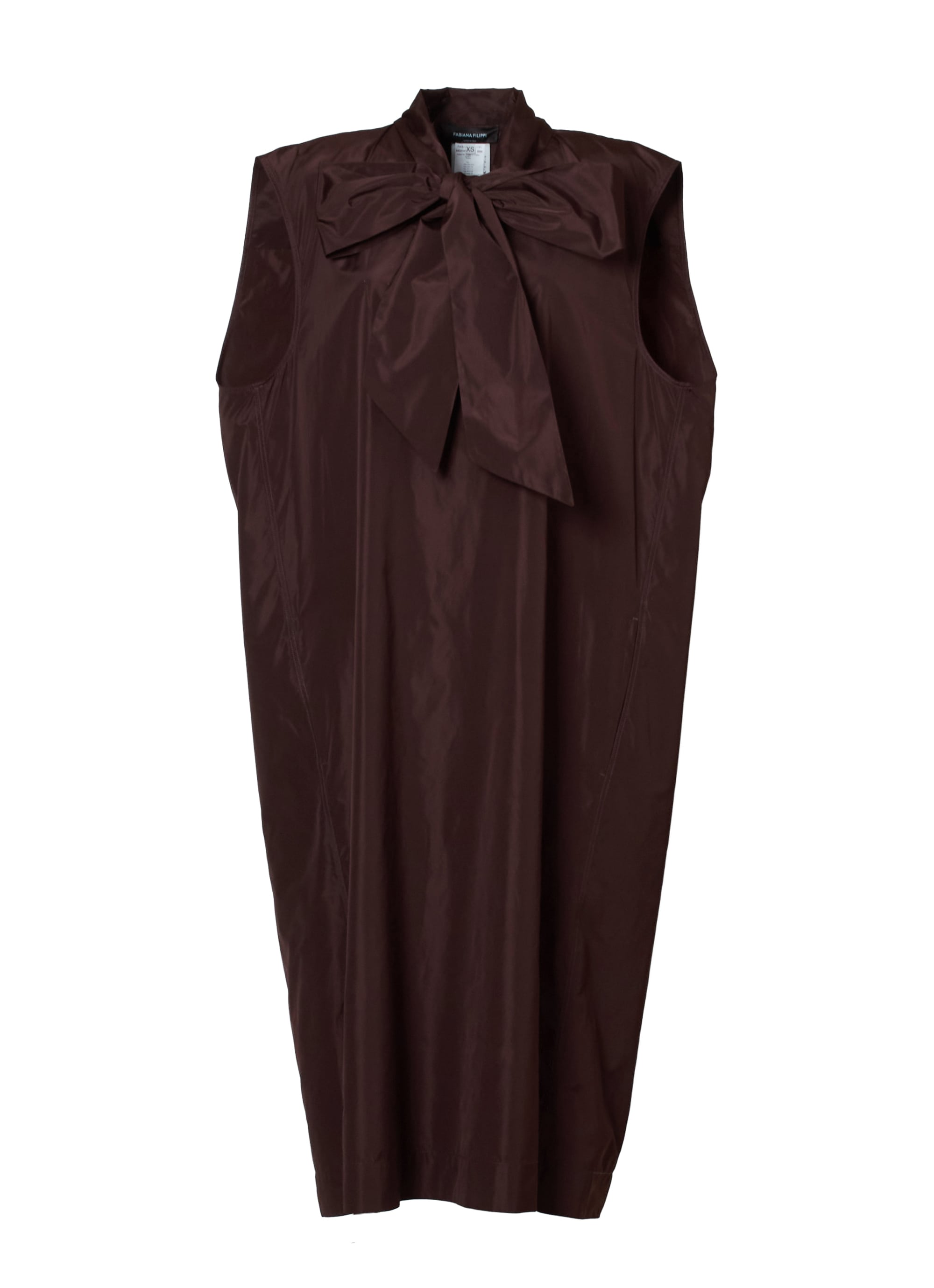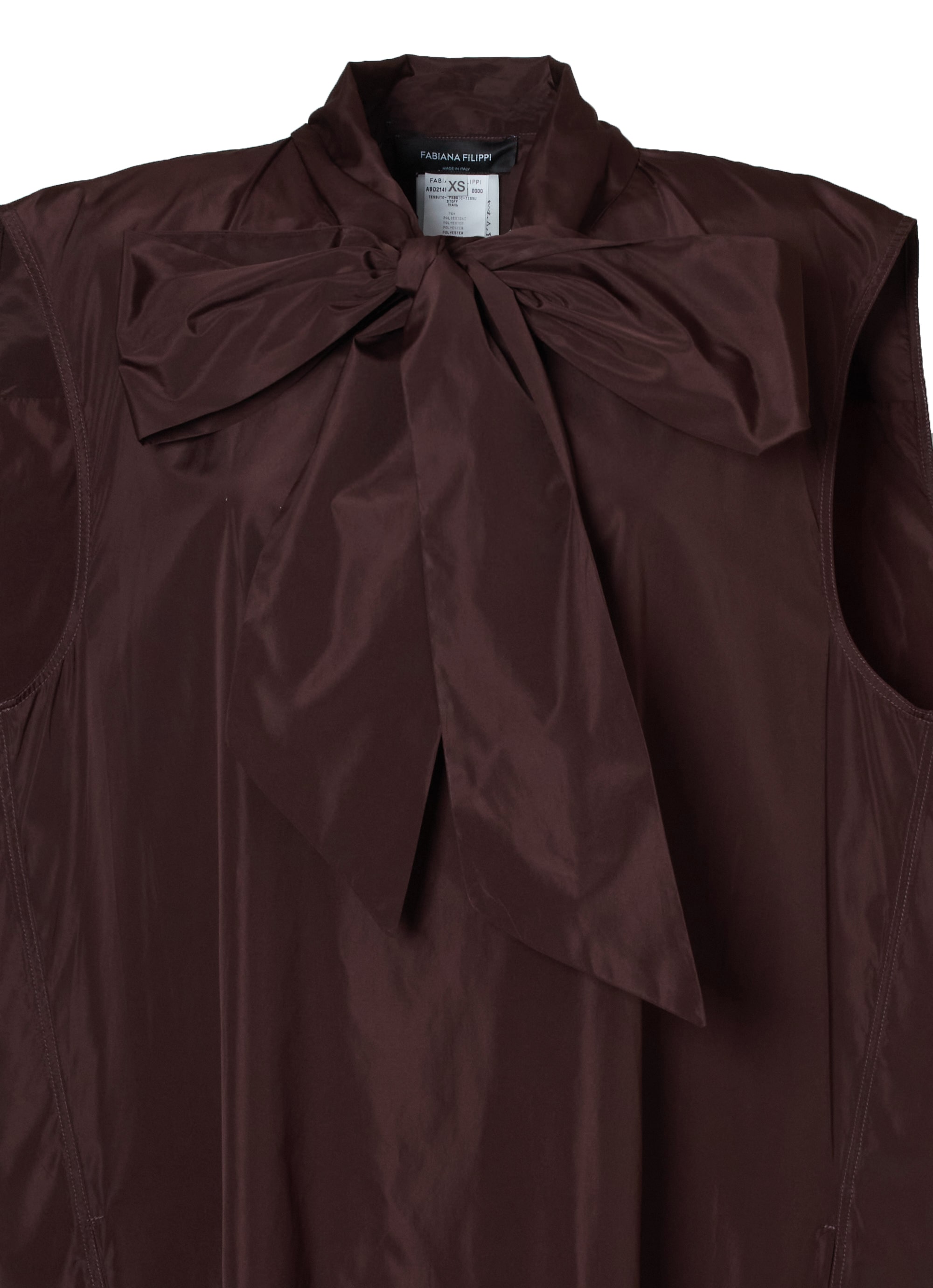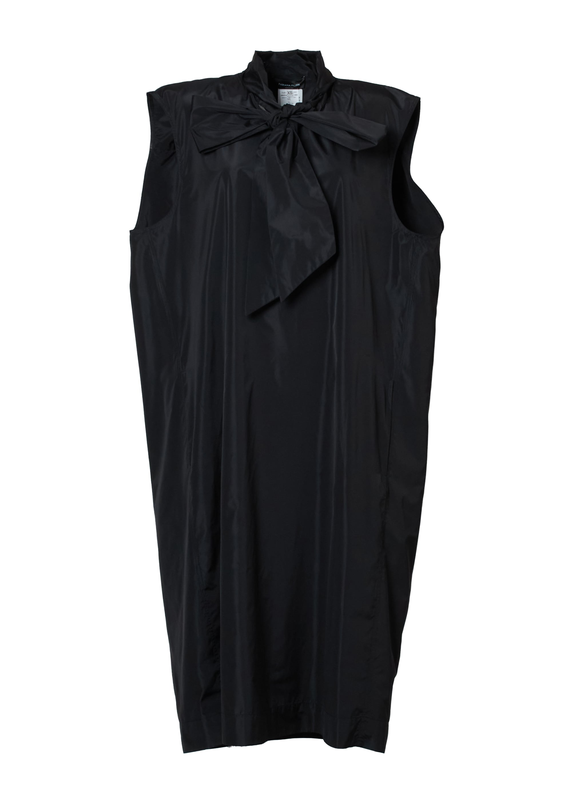 フロントにあしらわれたボウは、垂らしたり、リボンにしたりと自由に着こなしが楽しめます。