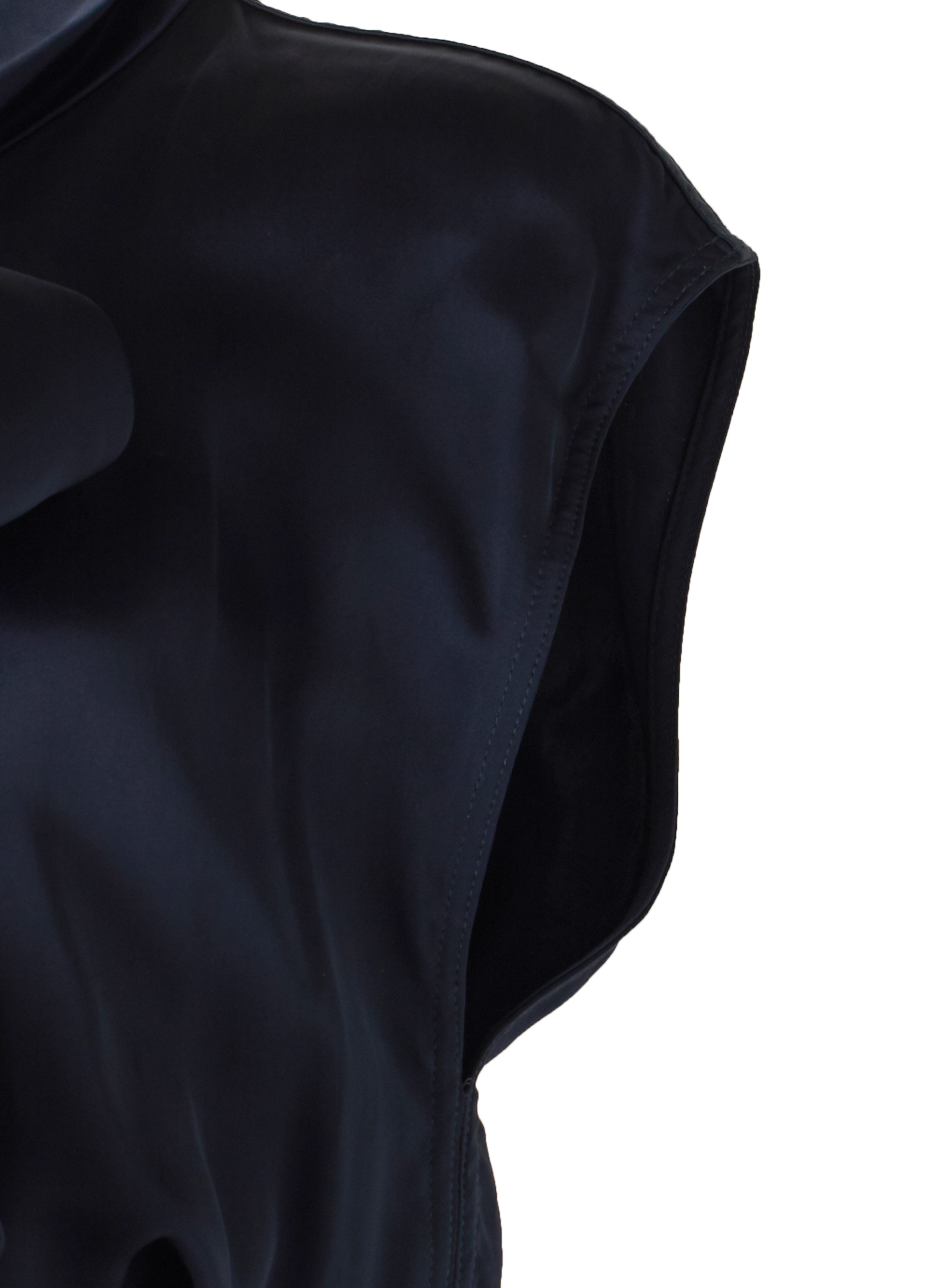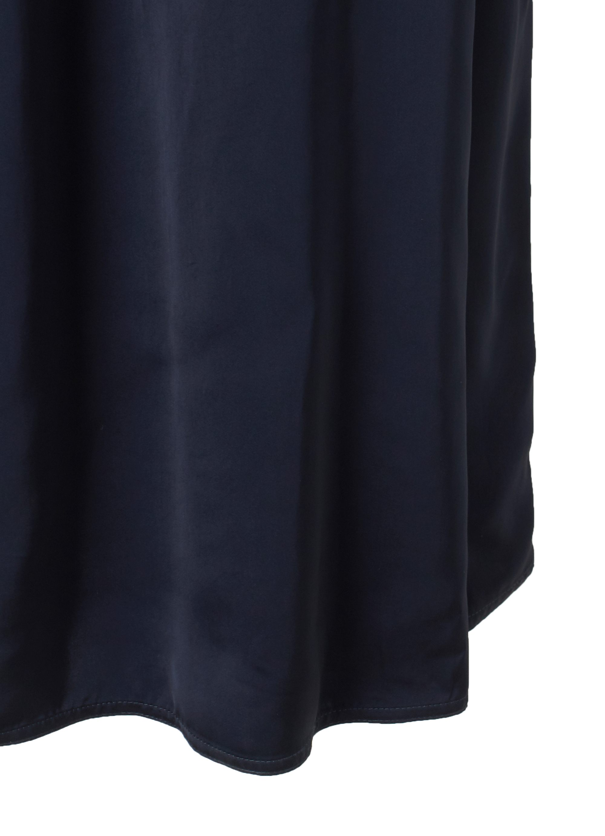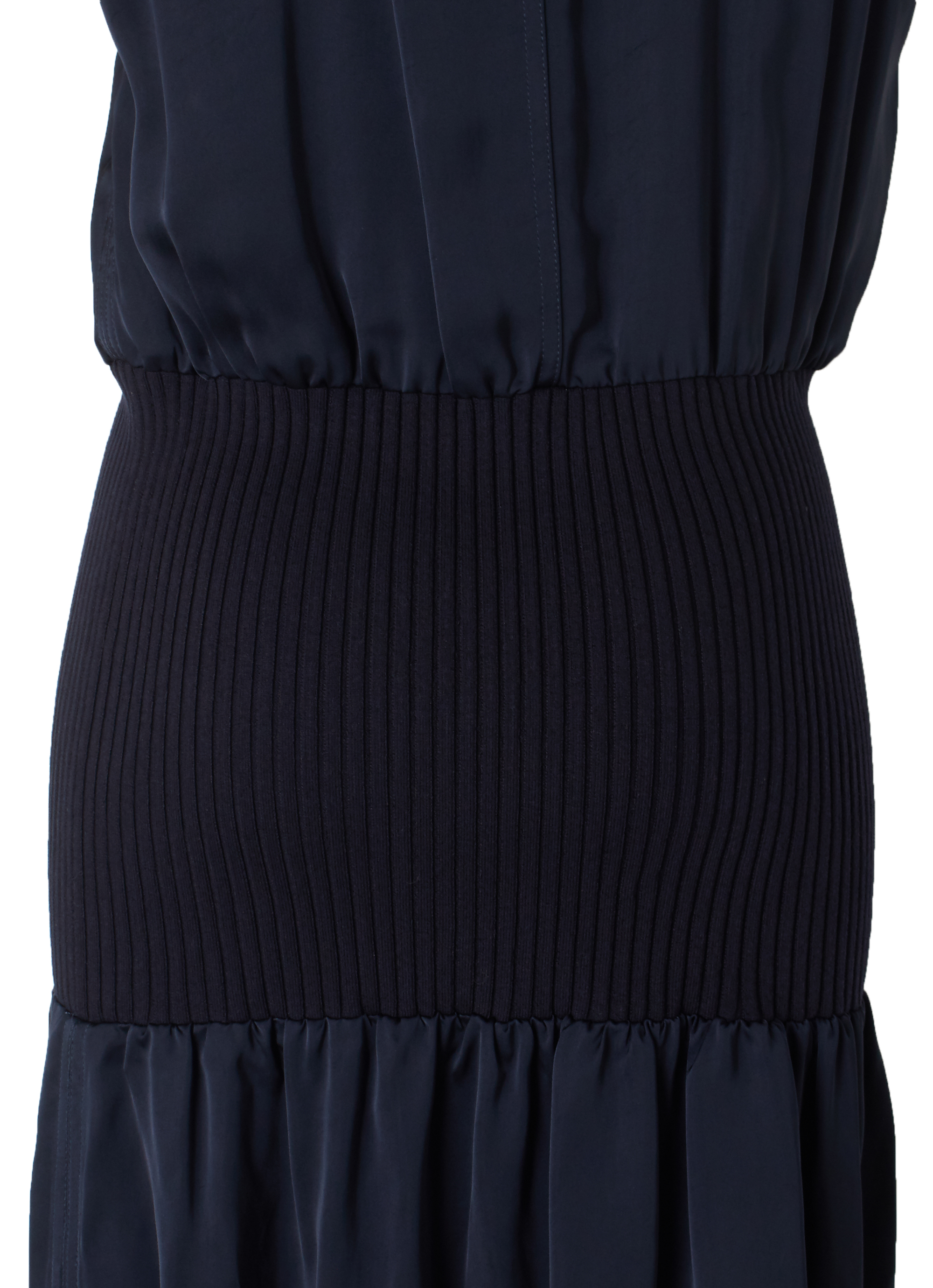 光沢感のあるレーヨンサテンとニットを組み合わせたワンピース。