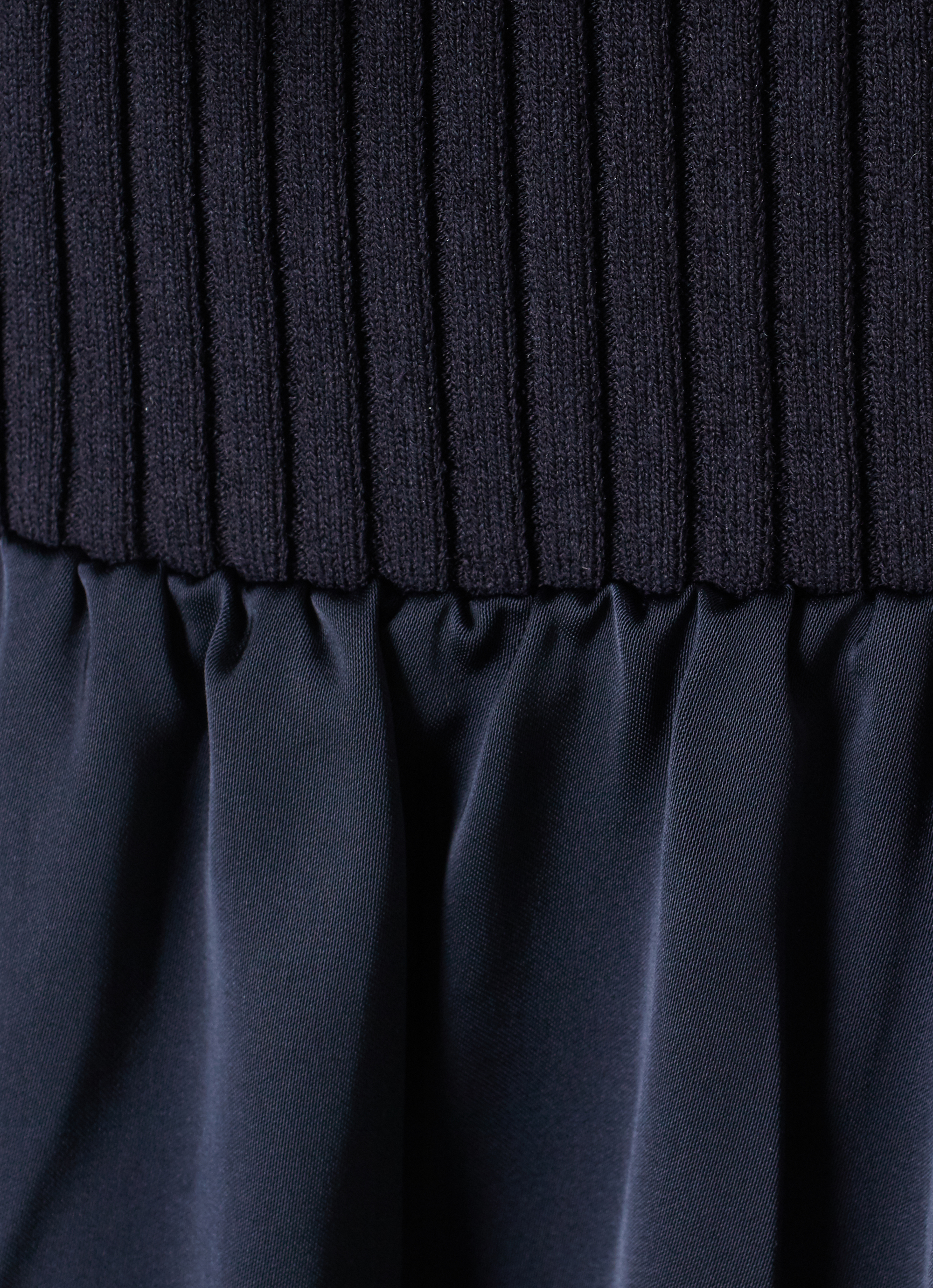 ウエスト部分をニットで切り替えたユニークなアイテム。フィット&フレアなシルエットはフェミニンなイメージの中にデザインへのこだわりを感じさせます。