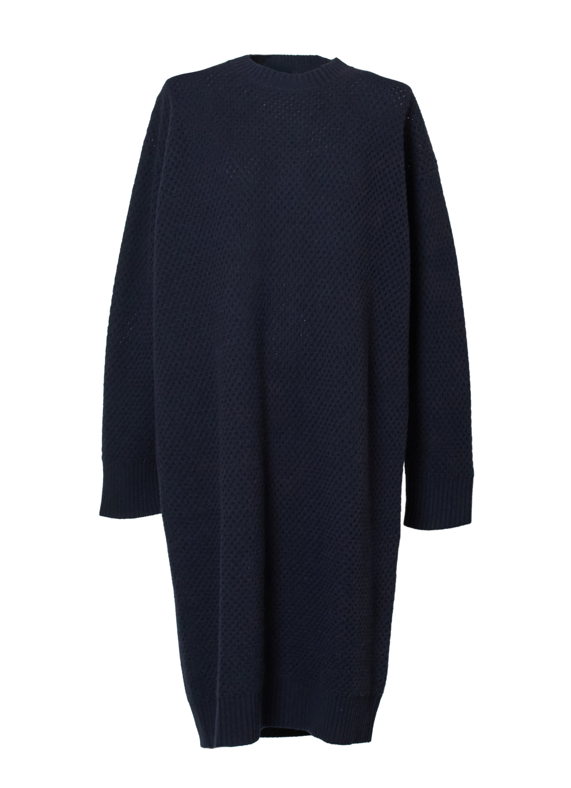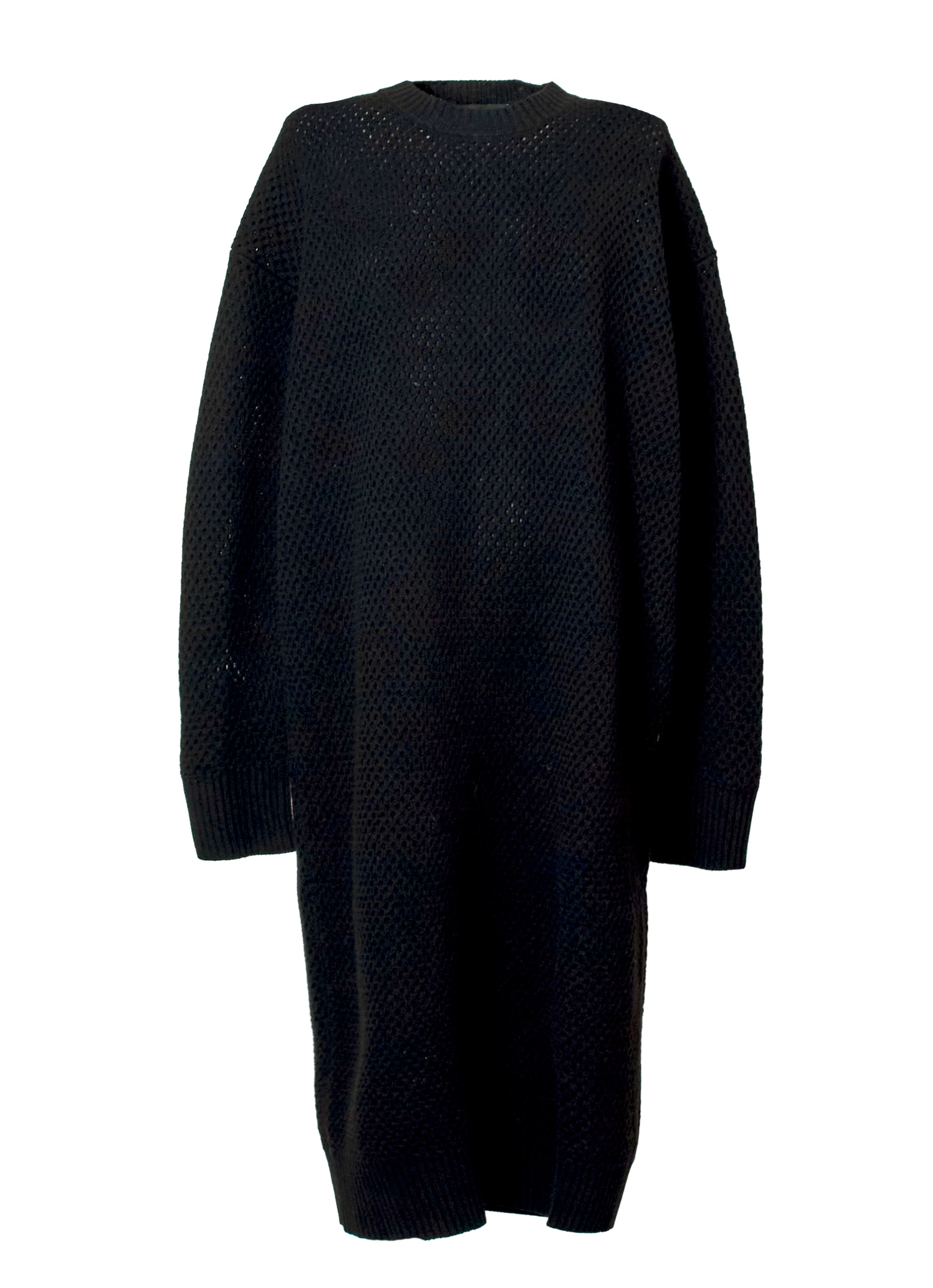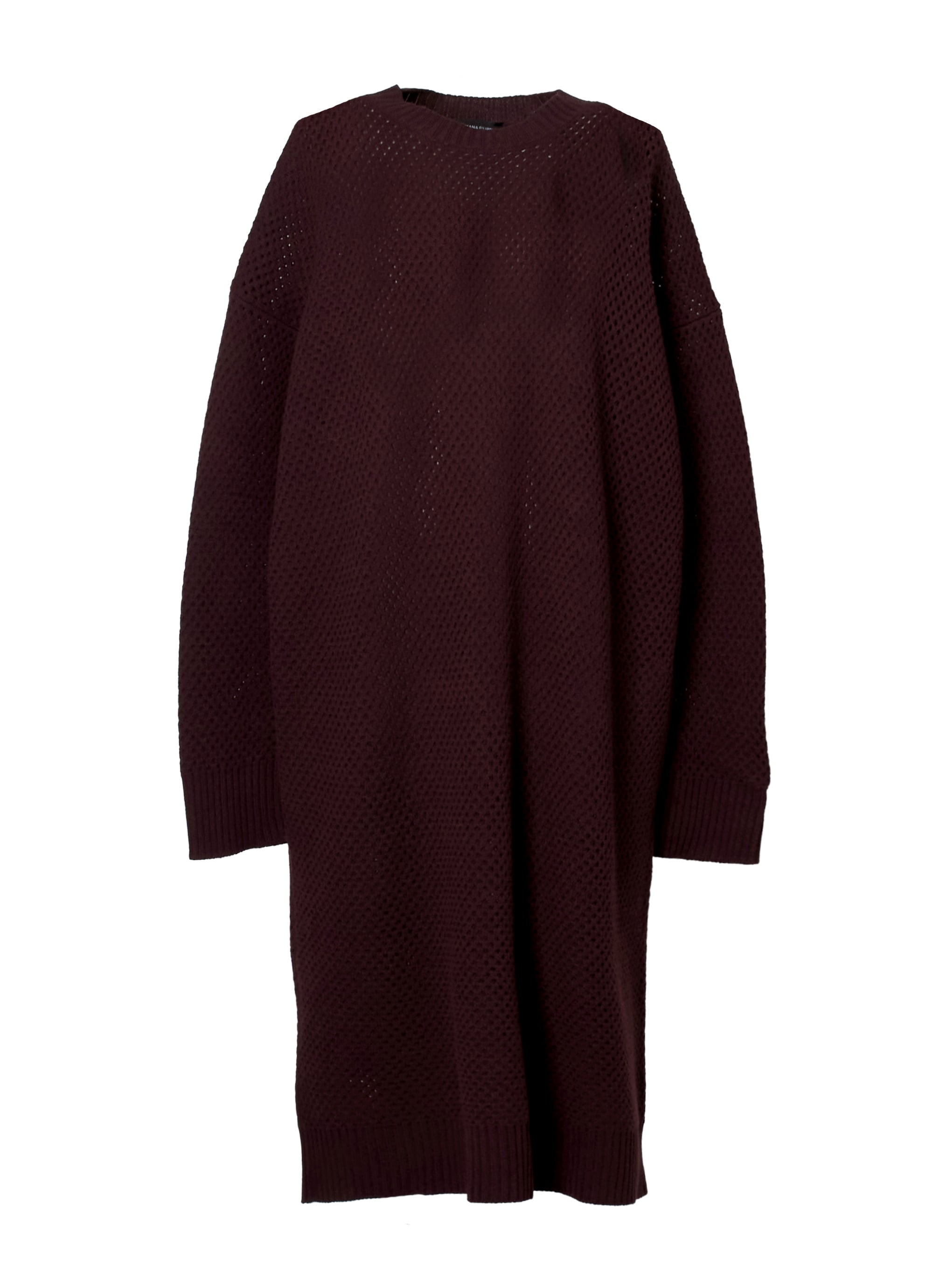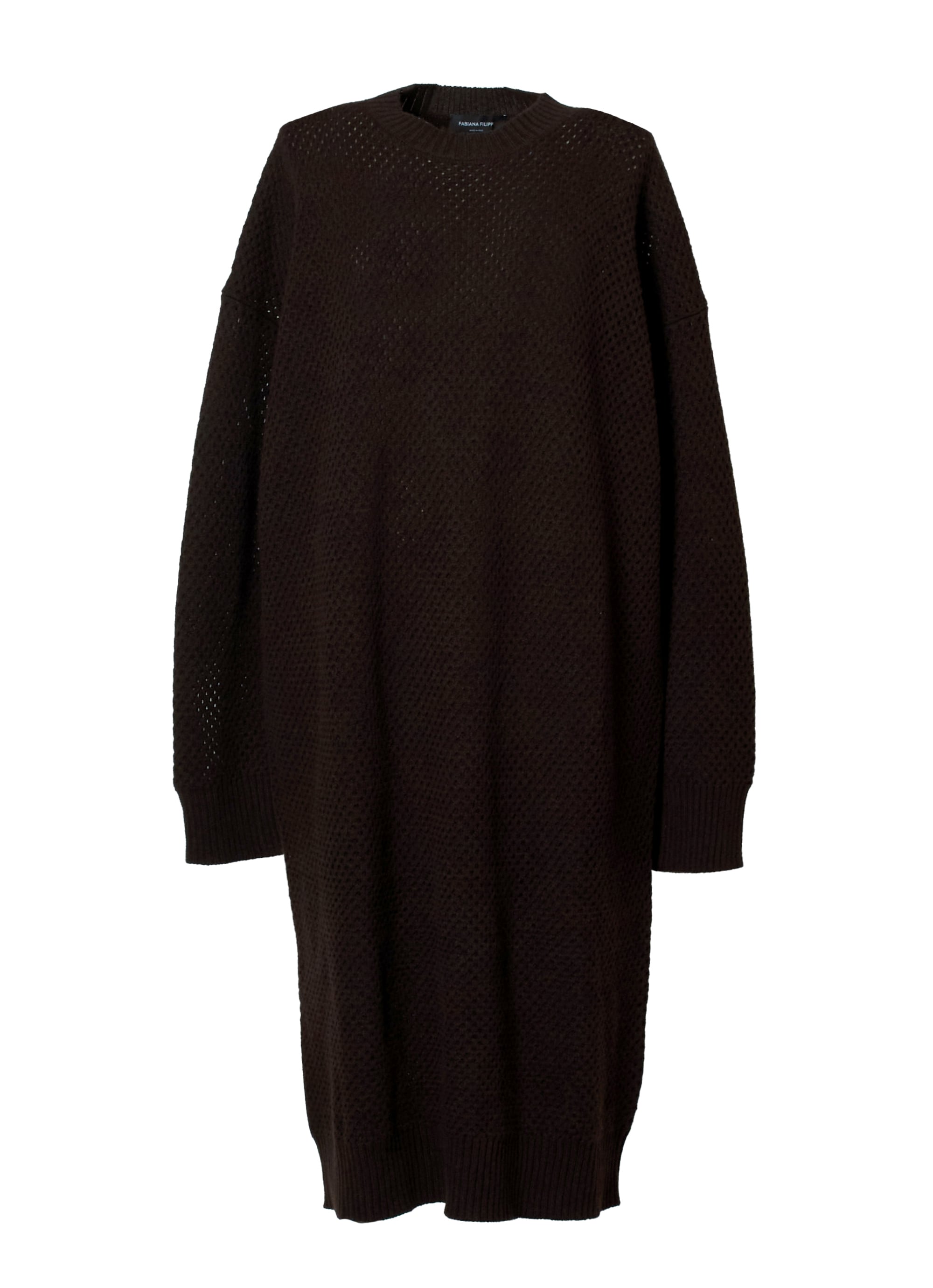 ダブルメッシュ構造のニットワンピースドレス。ニットが得意なファビアナフィリッピを代表する混合糸プラチナ(カシミヤ、シルク、メリノウール)を使用しています。
