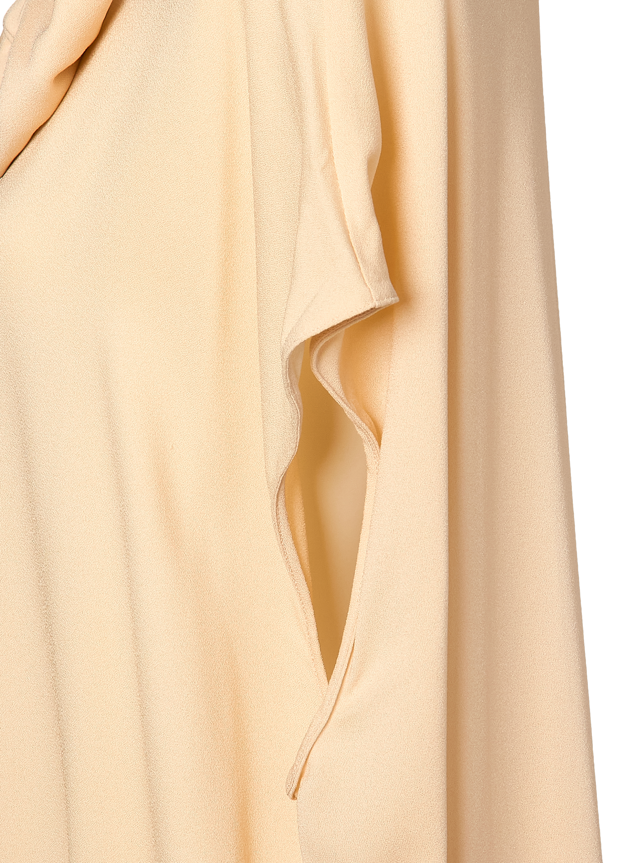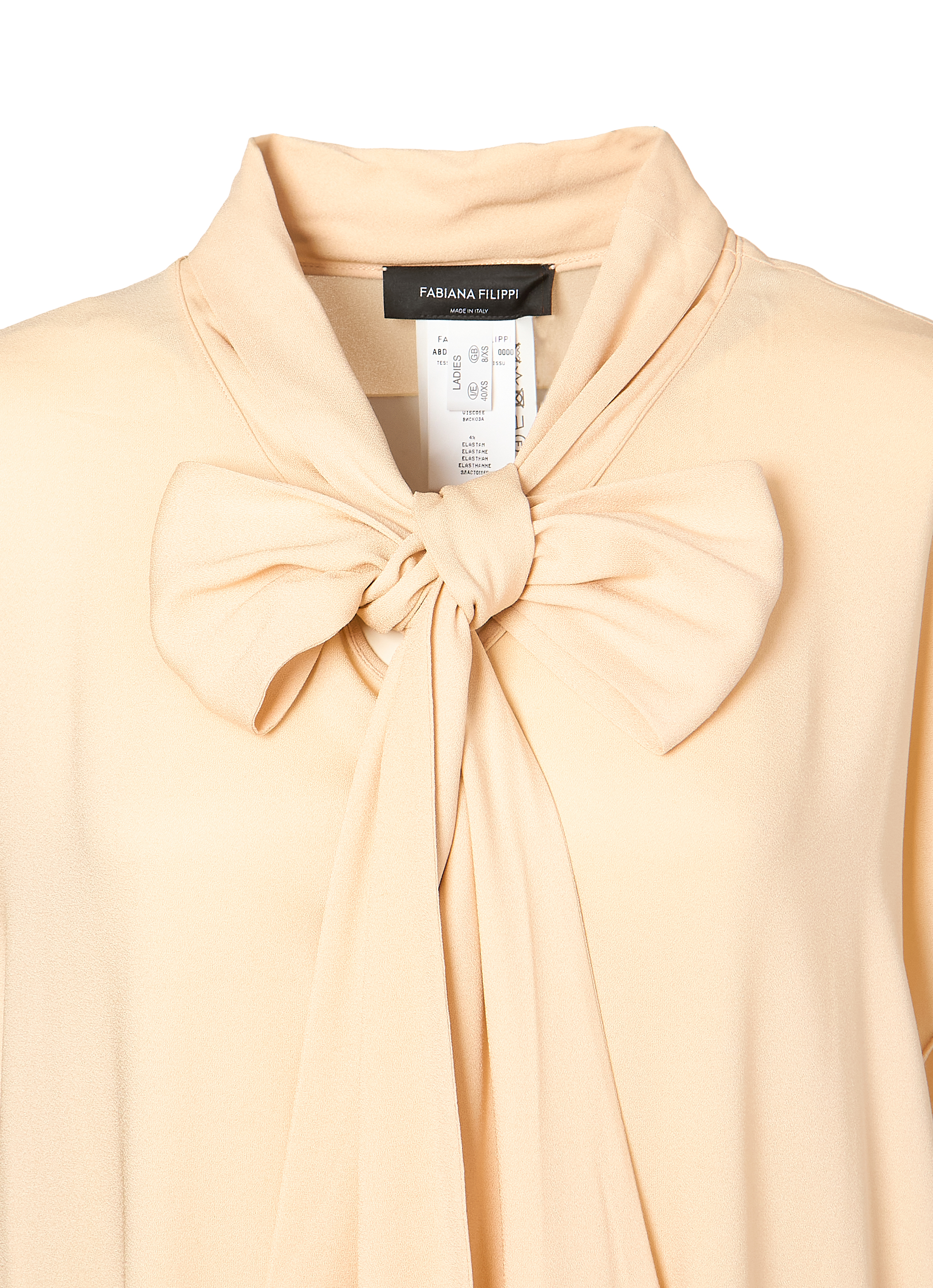 ドレープ感のあるシンプルなデザインに、着心地の良いストレッチレーヨン素材を使用。ボウタイのアレンジで着こなしの変化も楽しめます。気負わずに着られる、夏のスタイリングにぴったりの1枚。
