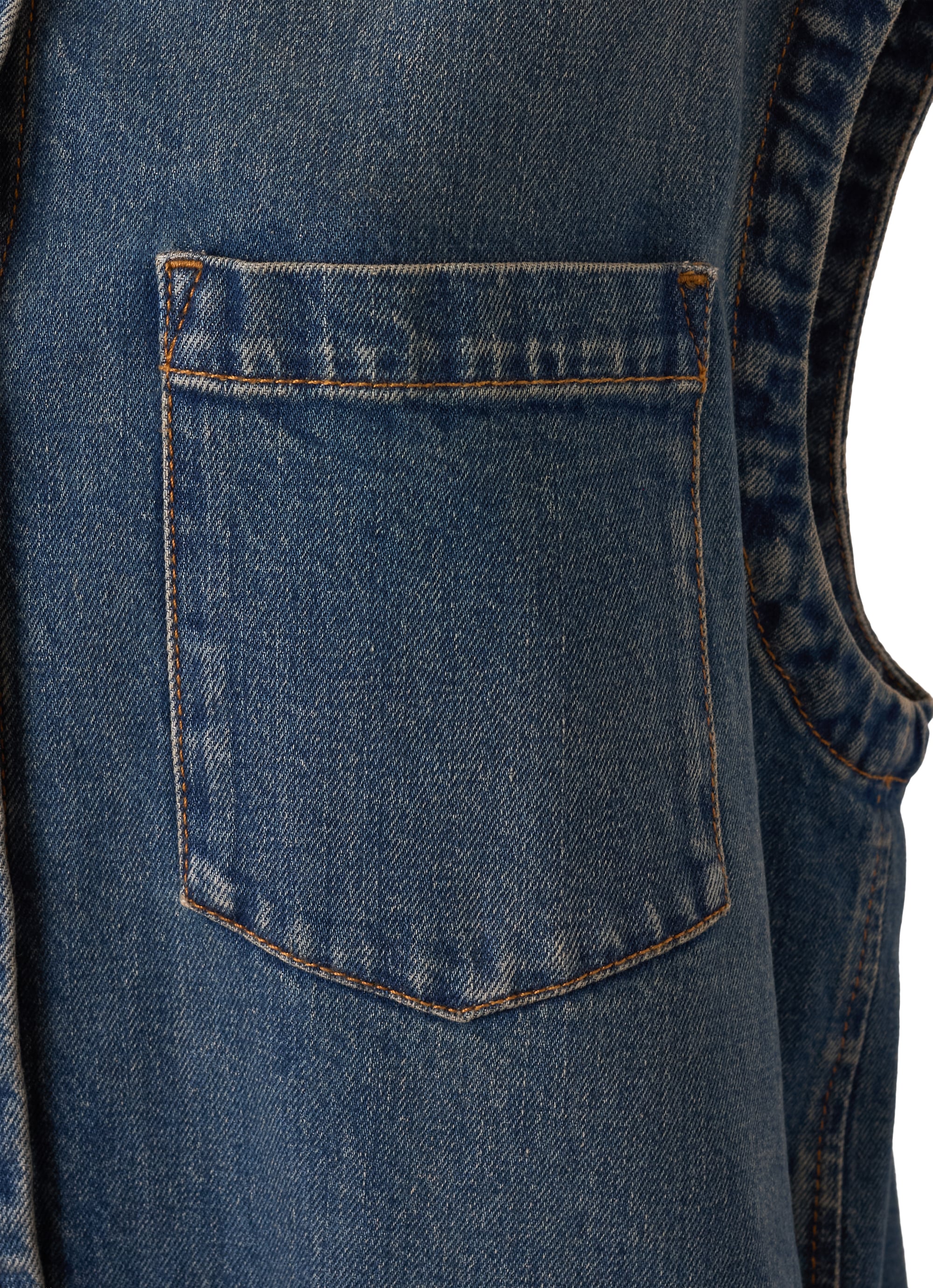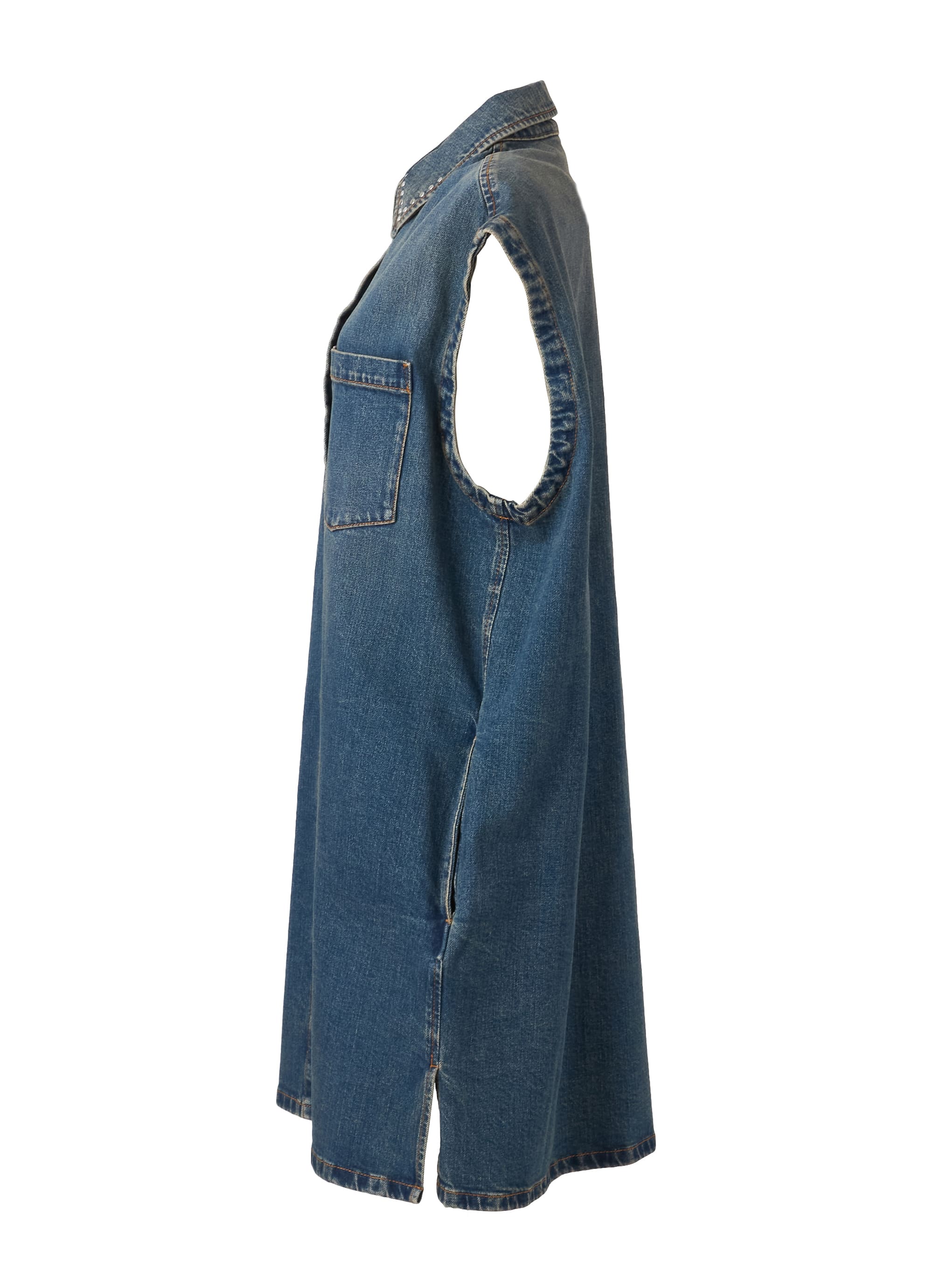 雰囲気のあるヴィンテージ加工のドレスは、フロントを開けてベストのようにも着こなせます。サイドポケット付き。
