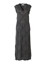 フロントは立体的な模様編み、バックはシンプルなので、座った時のストレスもなく技巧的な編地デザインを堪能できます。しっかりとしたニット地のため、体の線を拾いづらく美しいシルエットを構成します。すっきりとしたVネックに、ストレートなライン。リラックスした着心地を実現します。