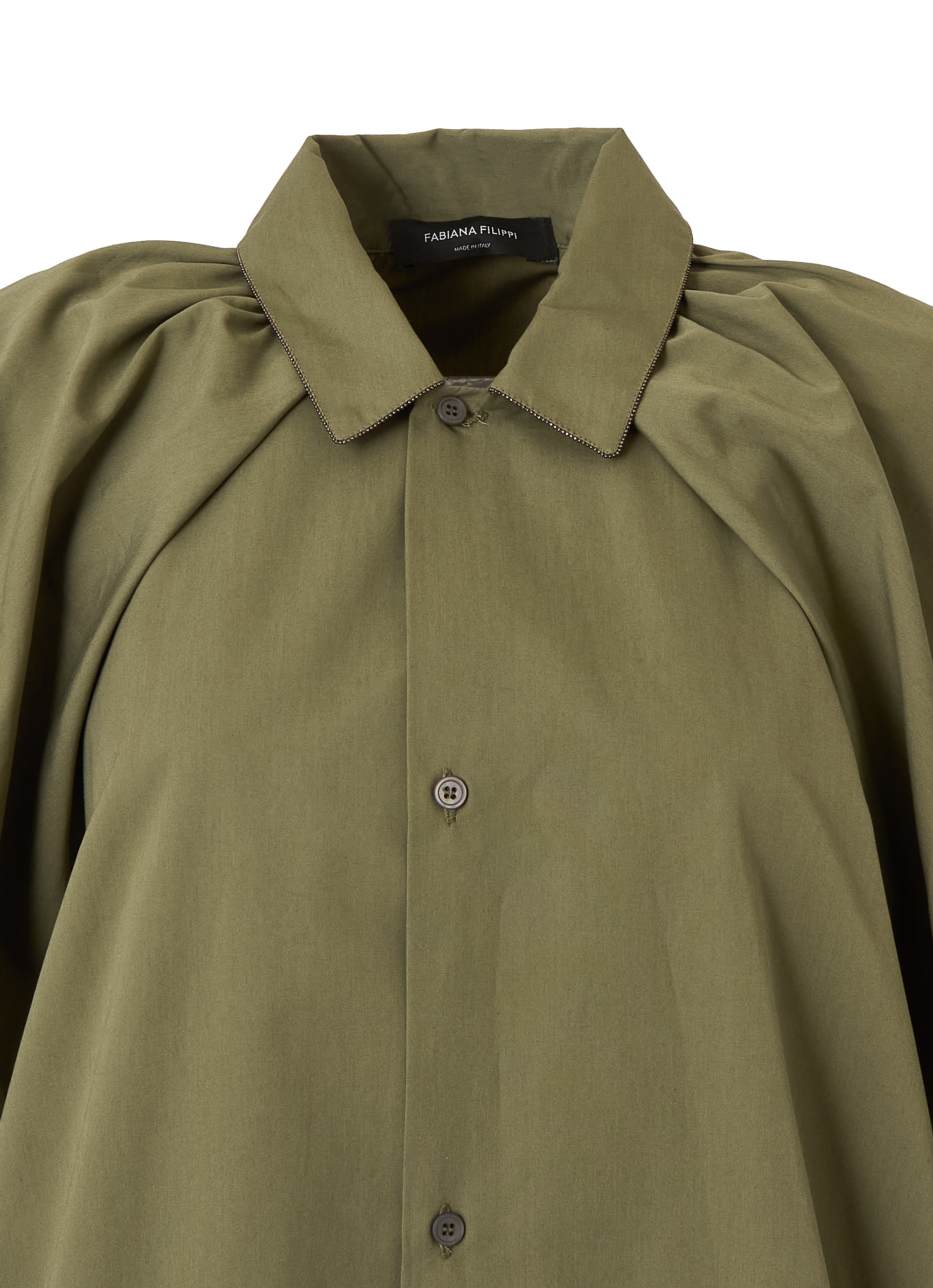 フロントはボタン仕様で、着脱のしやすさはもちろん、さりげないアクセントとしても活躍。さらに、衿元には繊細なボールチェーンの装飾をあしらい、シンプルな中に上品な華やかさをプラスしました。
