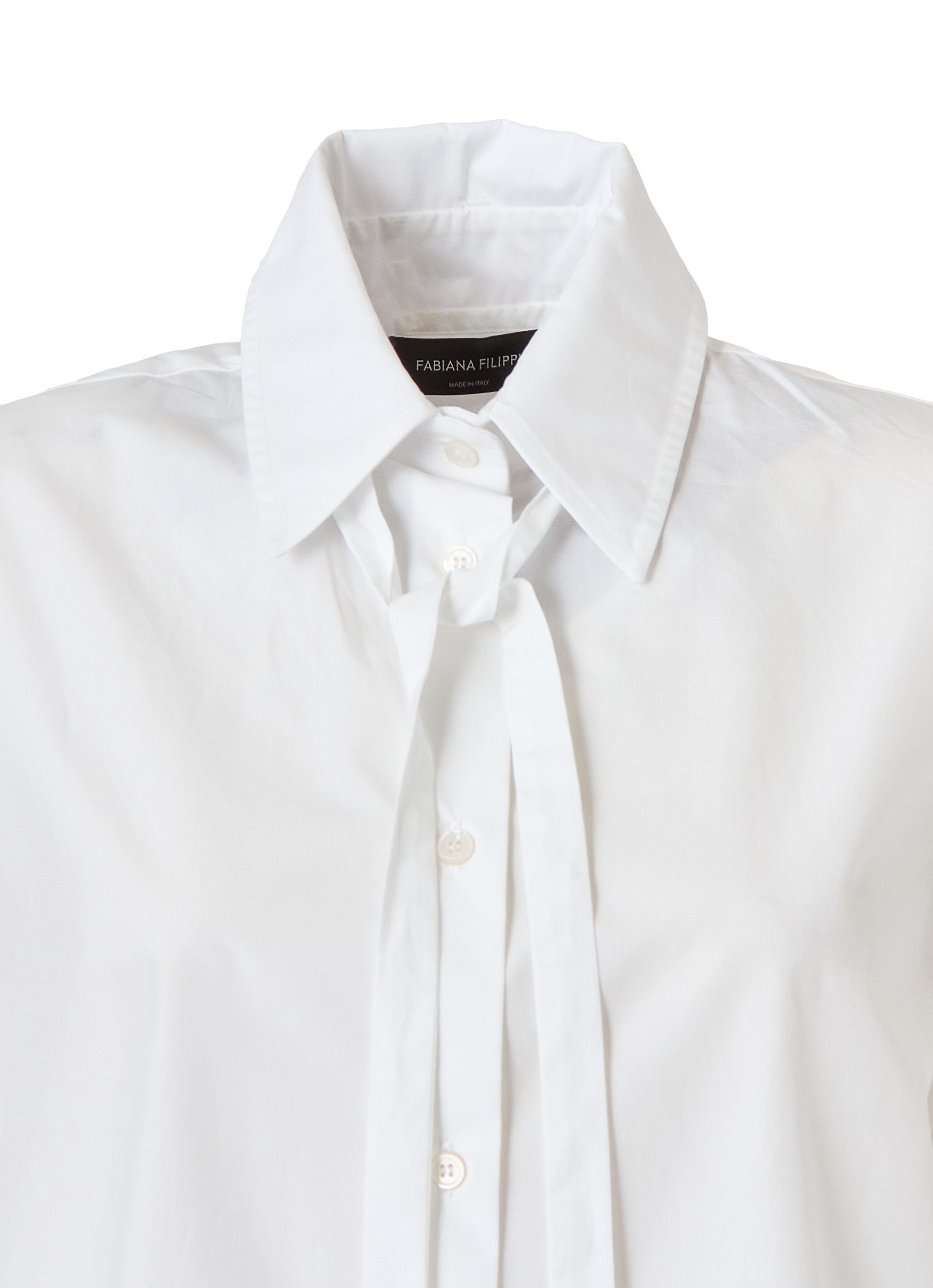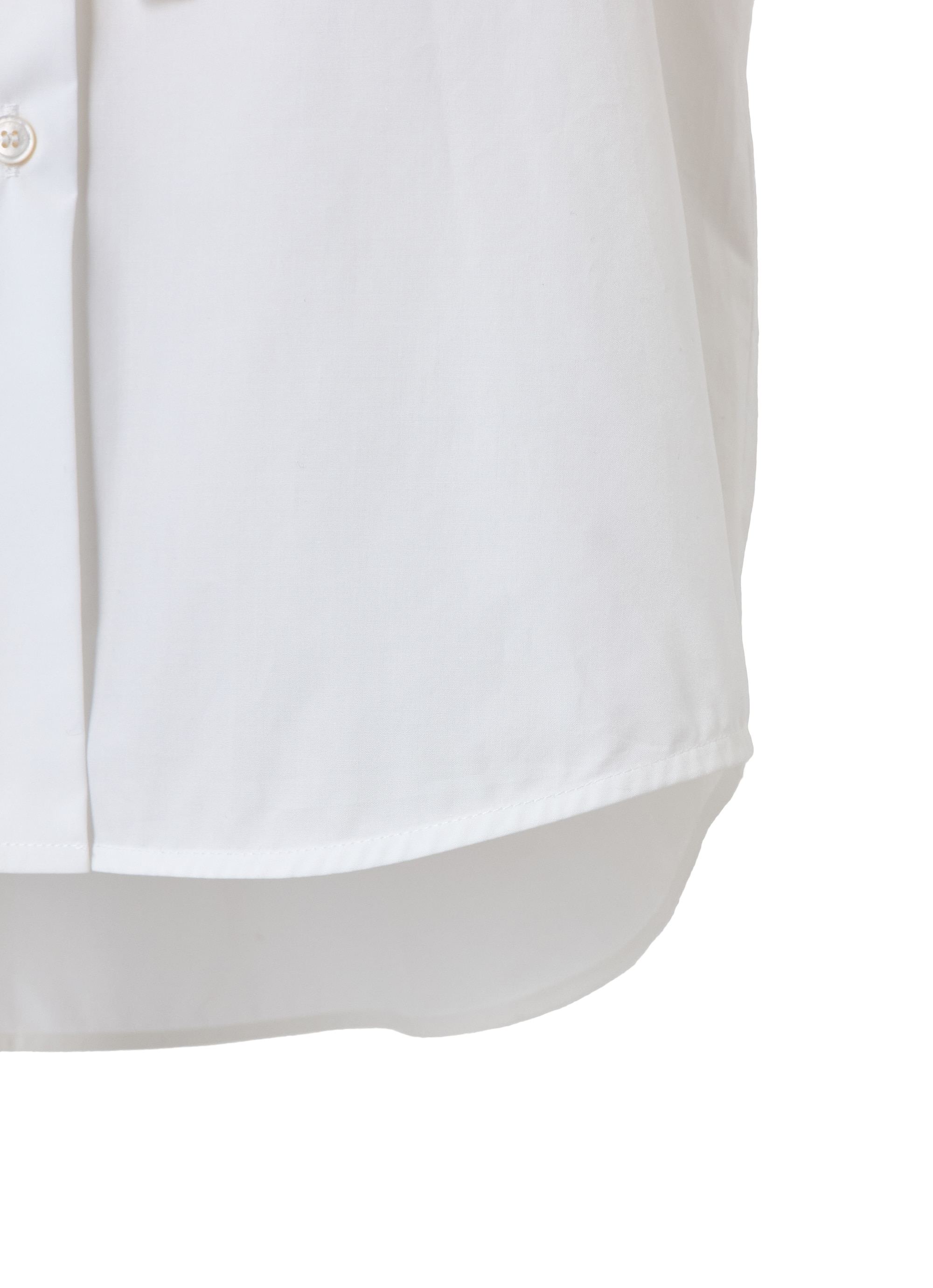 ベーシックな中にさりげない華やぎを添えた、コットンボウタイブラウス。