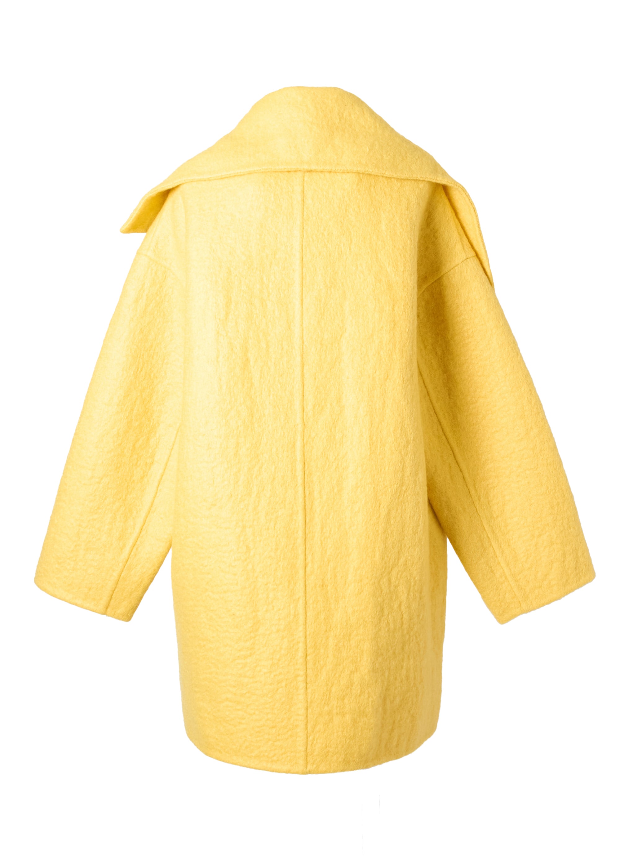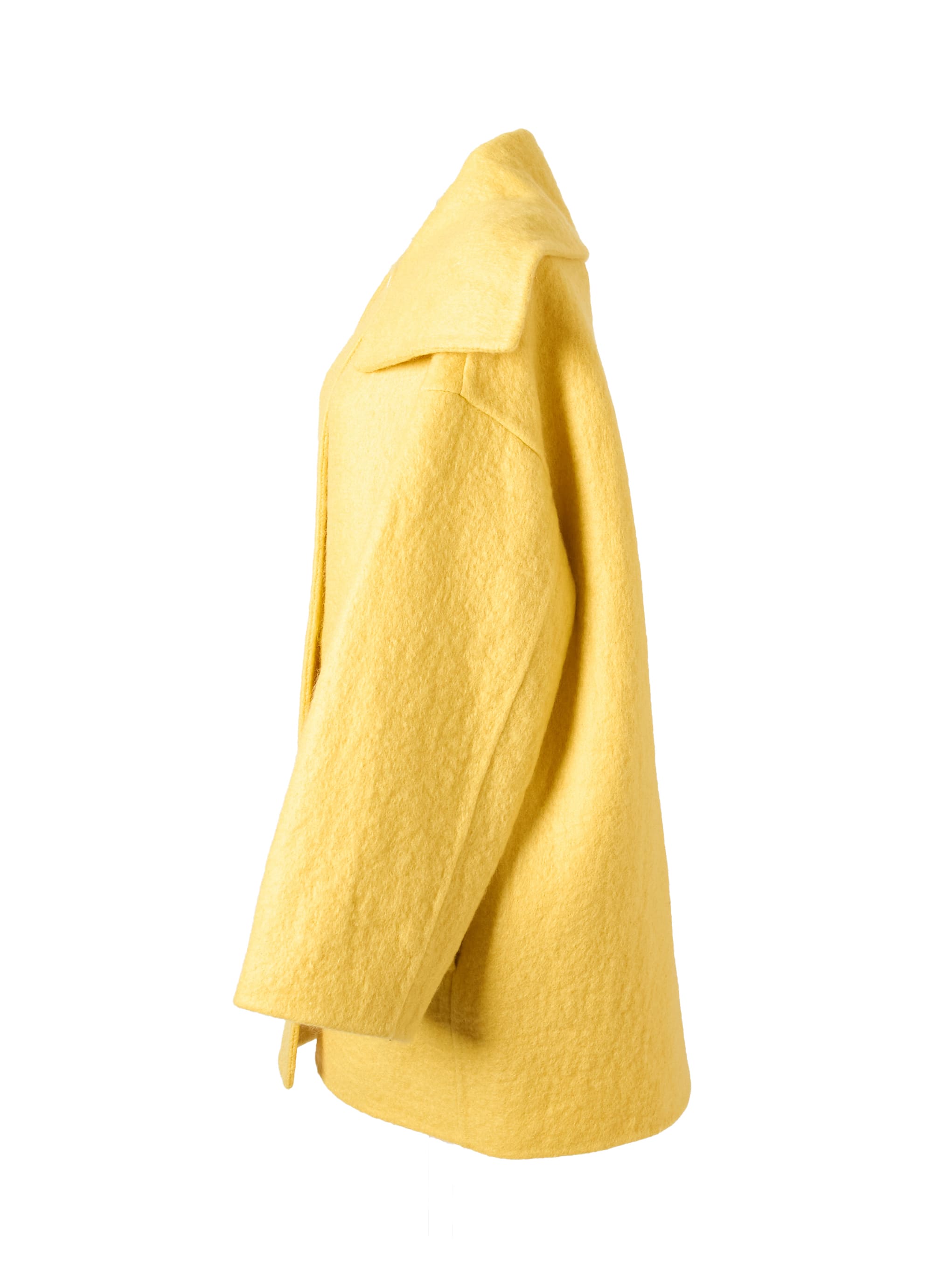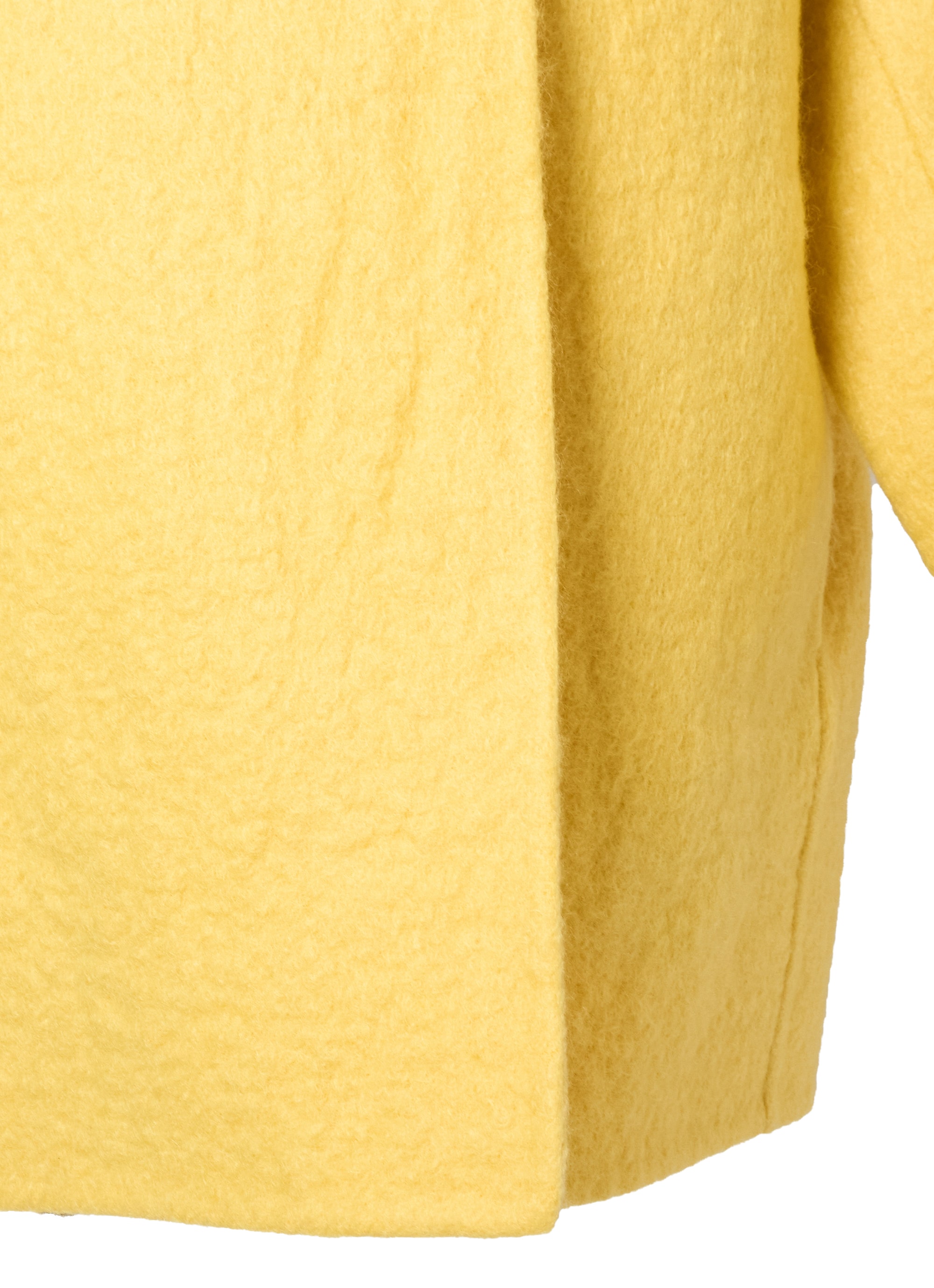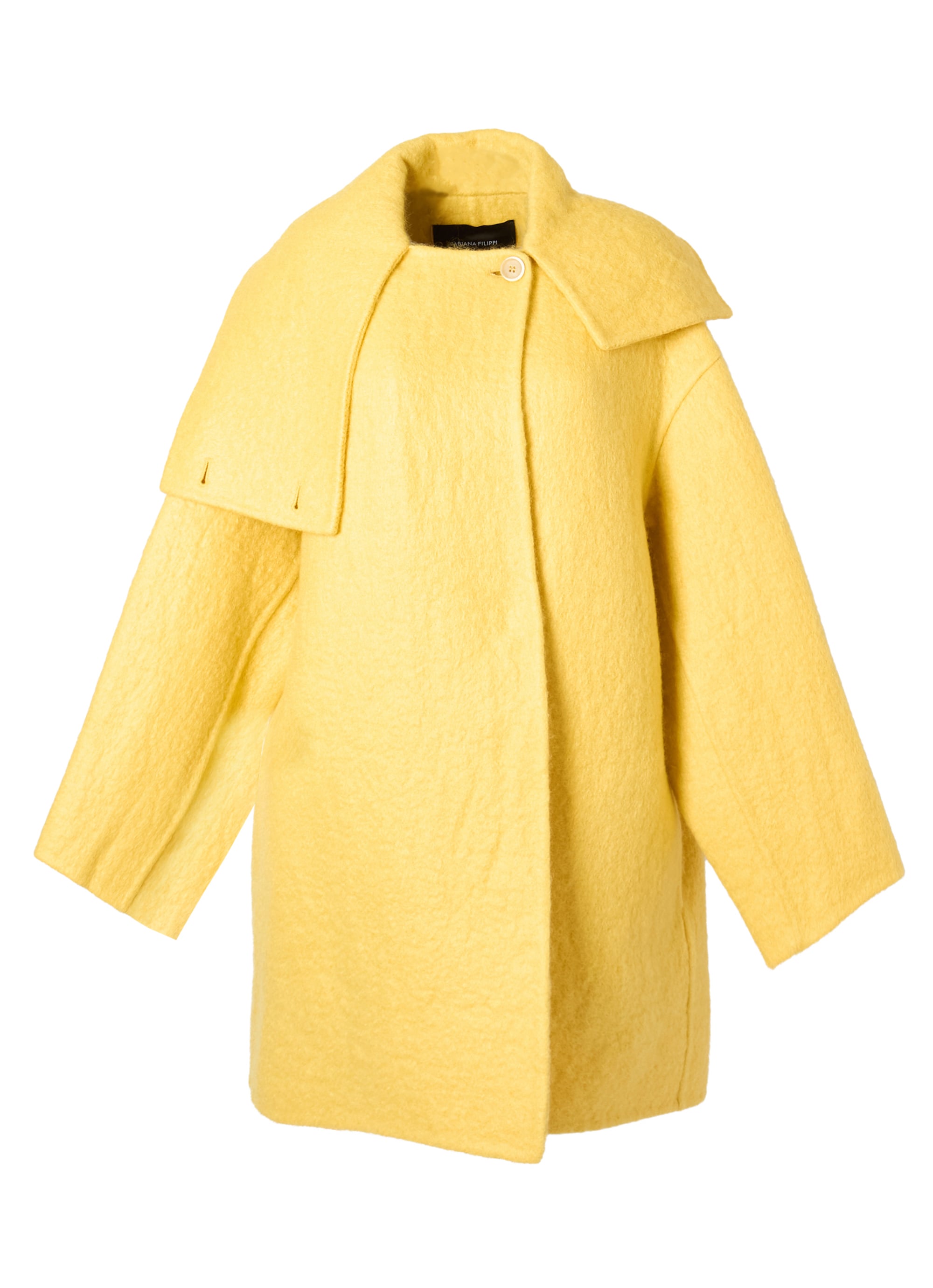 インパクトのあるイエローカラーながら、ミニマルなデザインでコーディネートに取り入れやすいアイテム。ダークになりがちな秋冬のスタイリングを一気に華やがせる一枚です。