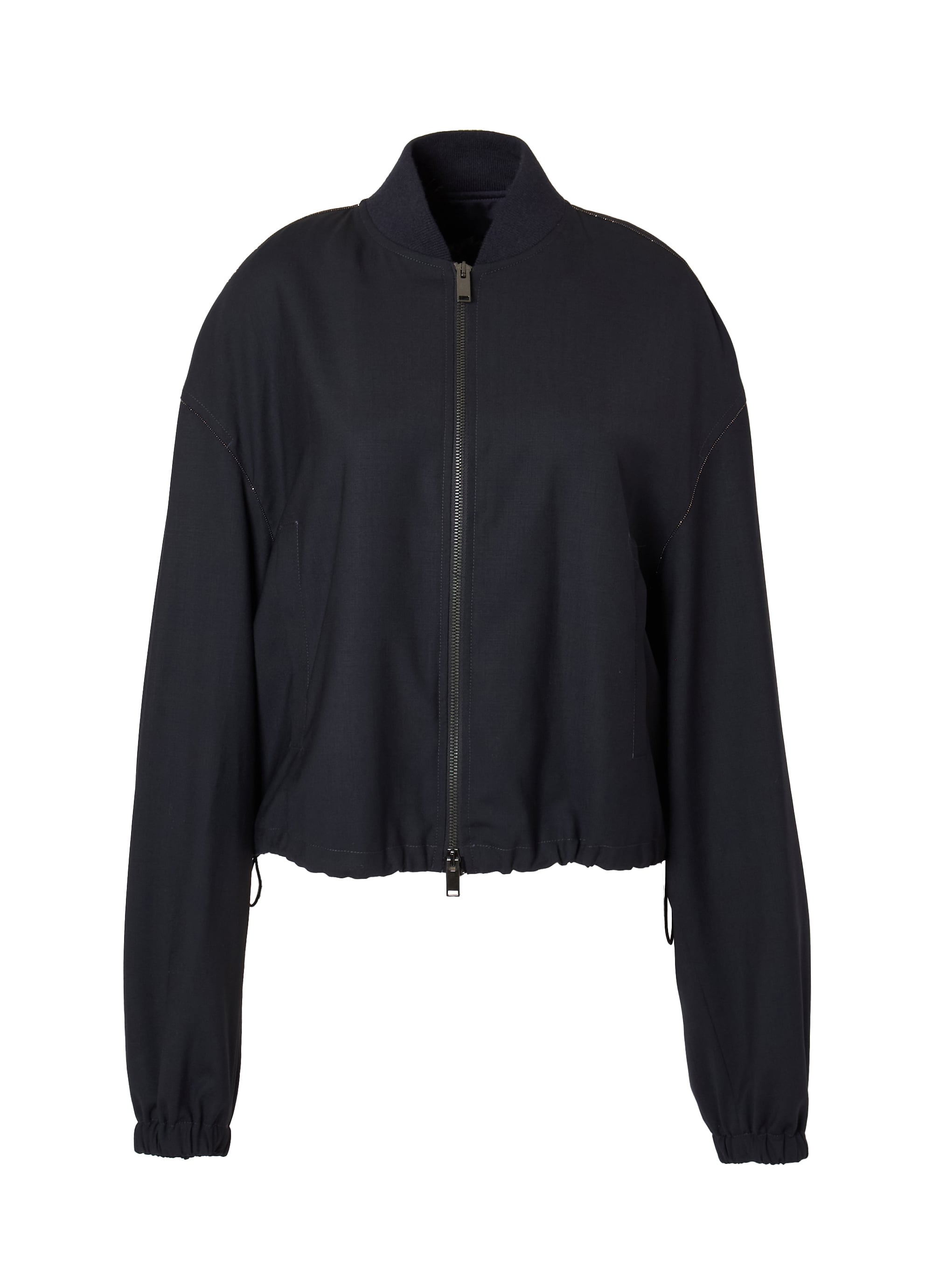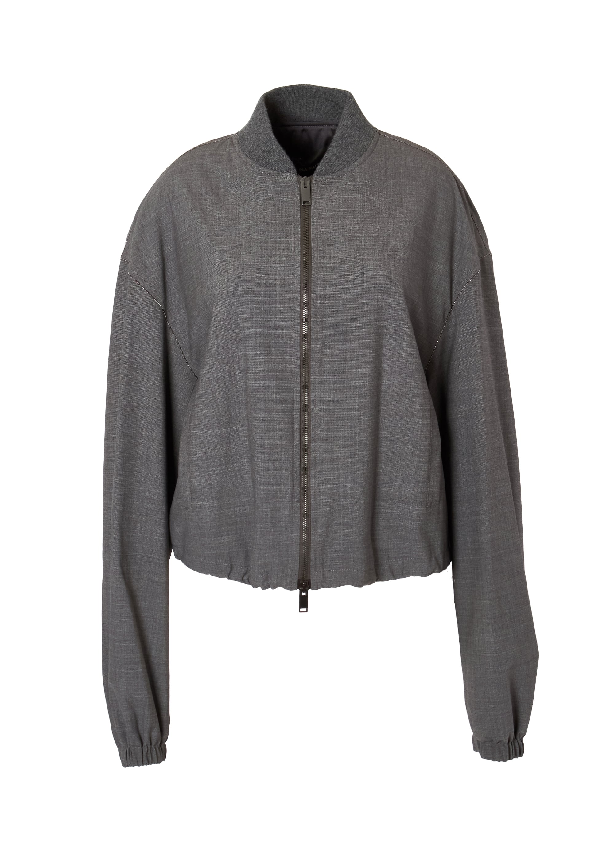 さりげない光沢感があり、やわらかく揺らぎのある素材が特徴。キャンバス織りで、オーストラリア産の極細メリノウールを使用した、軽やかな生地です。独自の"スモーキング仕上げ"を施した汎用性の高い生地は適度な伸縮性があり、最高の着心地を実現します。ショルダー、アーム、サイドにフィーロディアマンテ(イタリア語でダイヤモンドの糸)をトリミング。裾にドローストリングがあり、絞って丸みのあるシルエットを作ることが可能です。両サイドにポケット。コットン裏地付き。