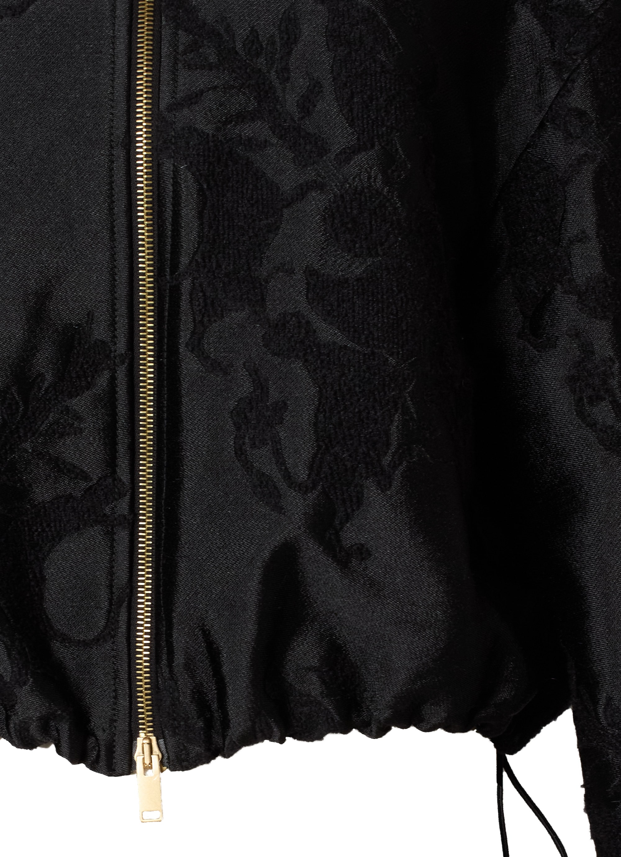 現代アーティストとのコラボレーションによるドローイングシリーズを、ジャカード織りのファンシーなブークレ生地で表現。トーン・オン・トーンの色使いながら、さまざまな糸のコントラストや織り方により、立体感がある素材に仕上げています。コンパクトな着丈のブルゾンは、裾にドローストリング、袖口にシャーリングを施したカジュアルなデザインで、クラシカルな素材とのコントラストが印象的な一枚。
