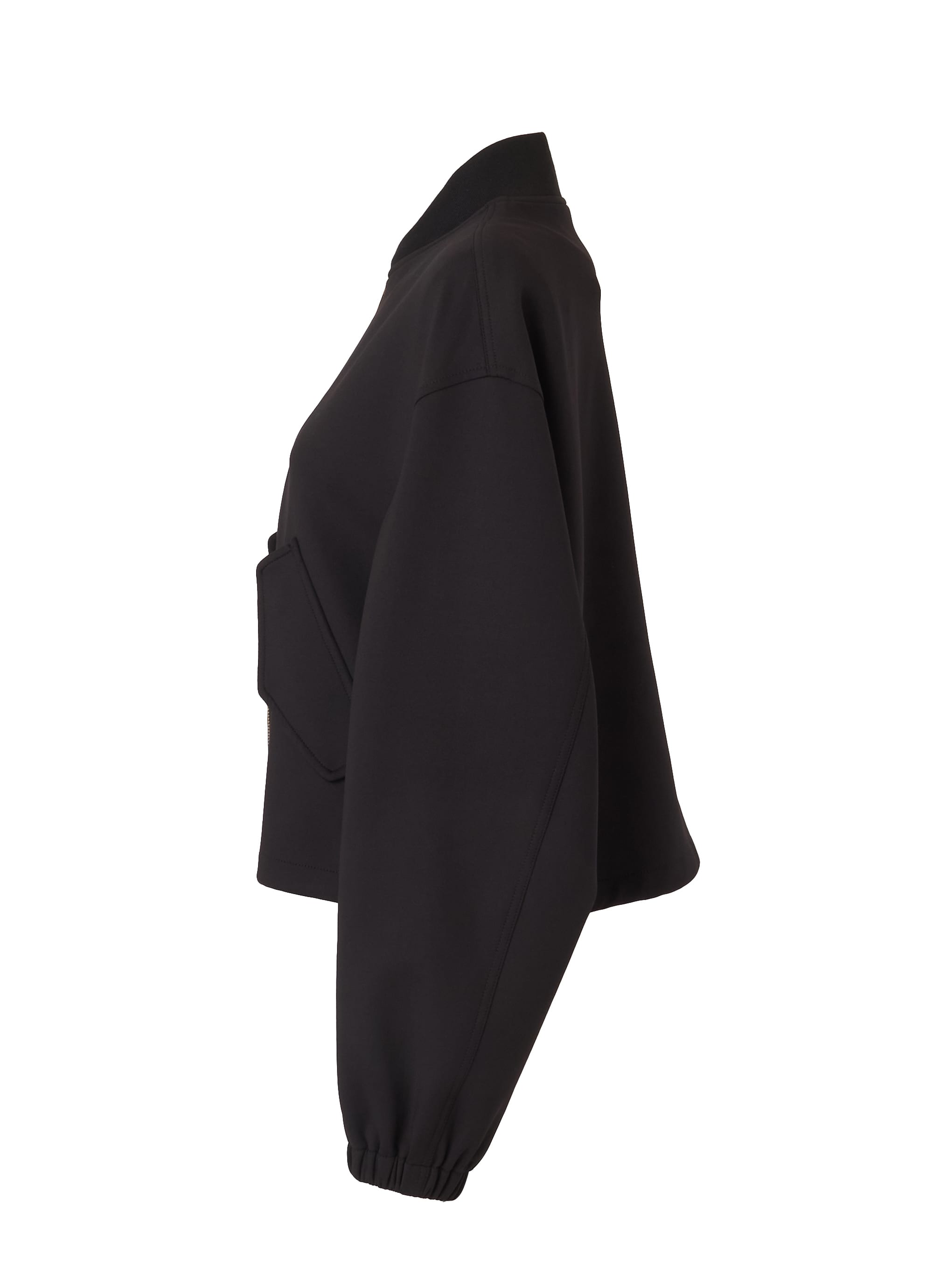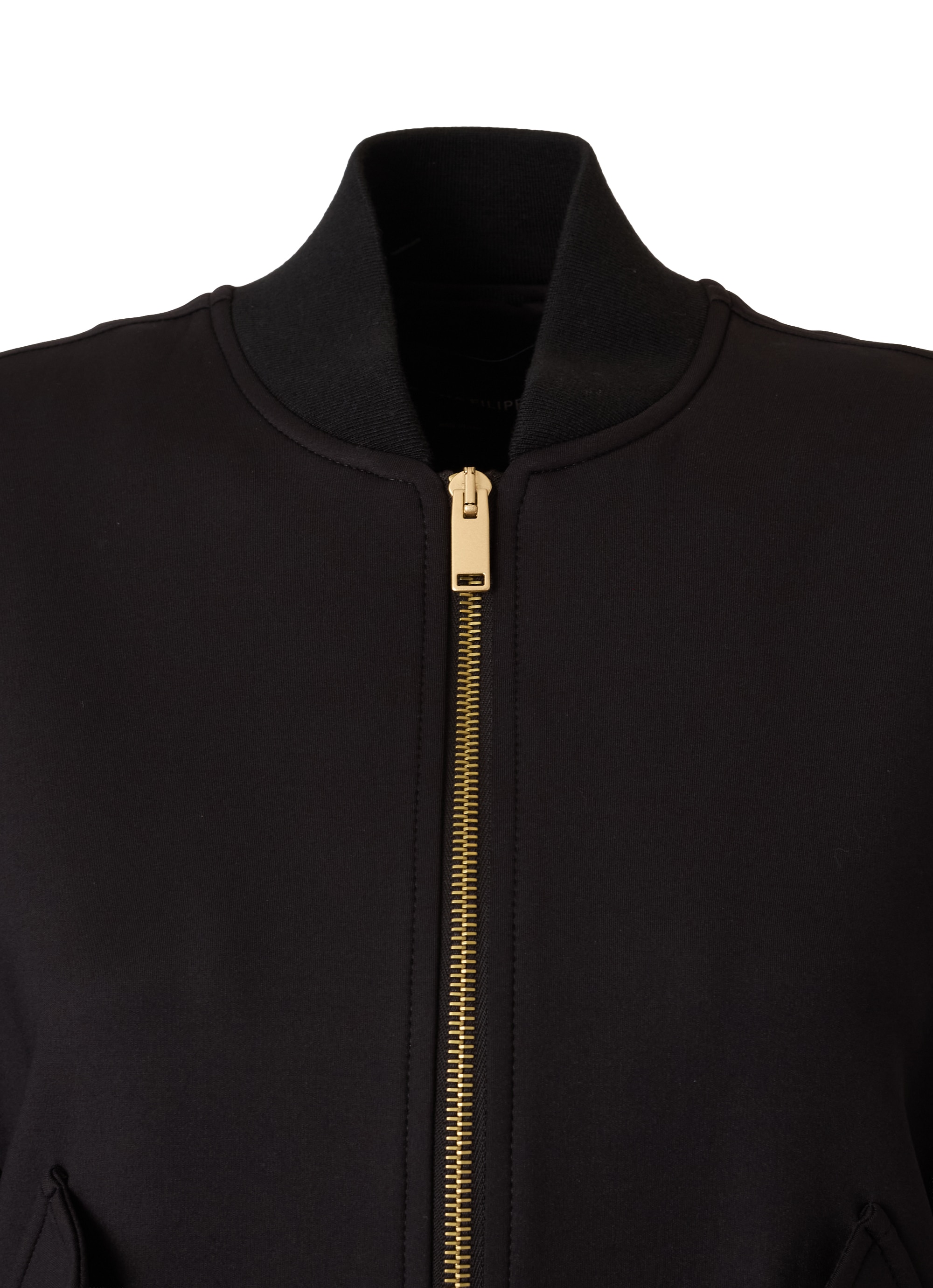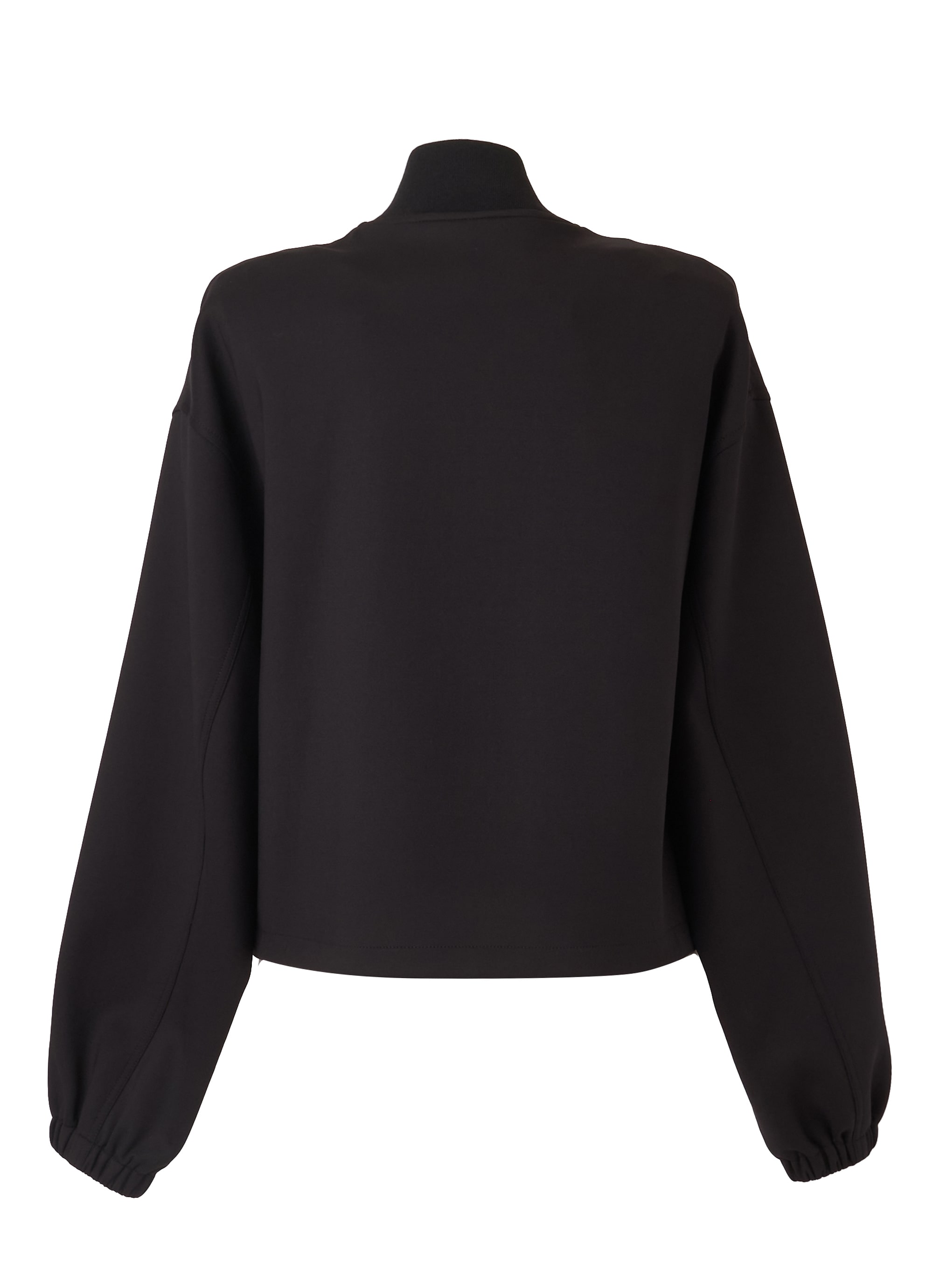 シンプルなナイロンストレッチのボンバーブルゾン。