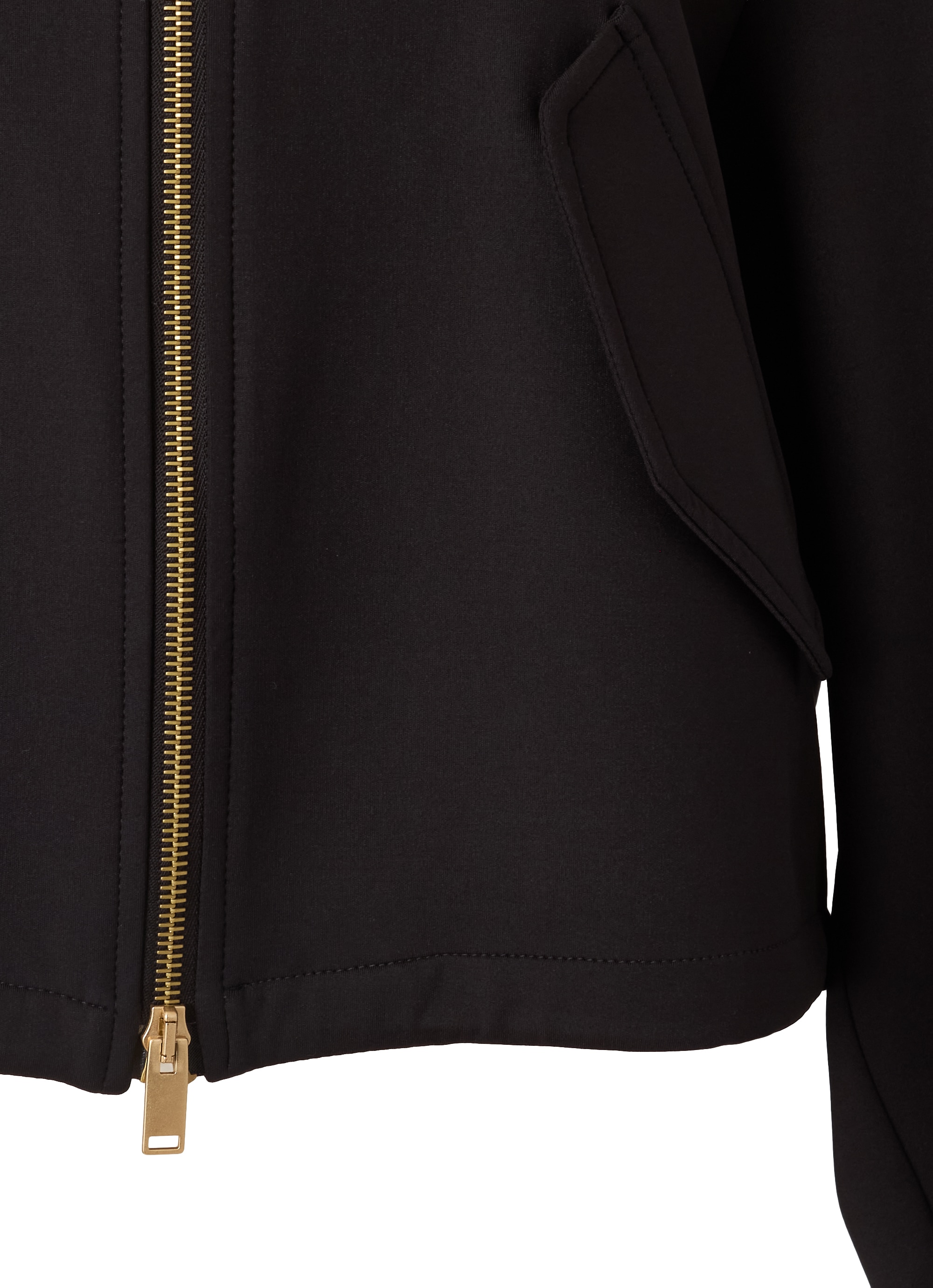 ミニマルなデザインにゴールドのダブルジップがアクセント。シンプルなコーディネートに現代的なシルエットをプラスするアイテムです。