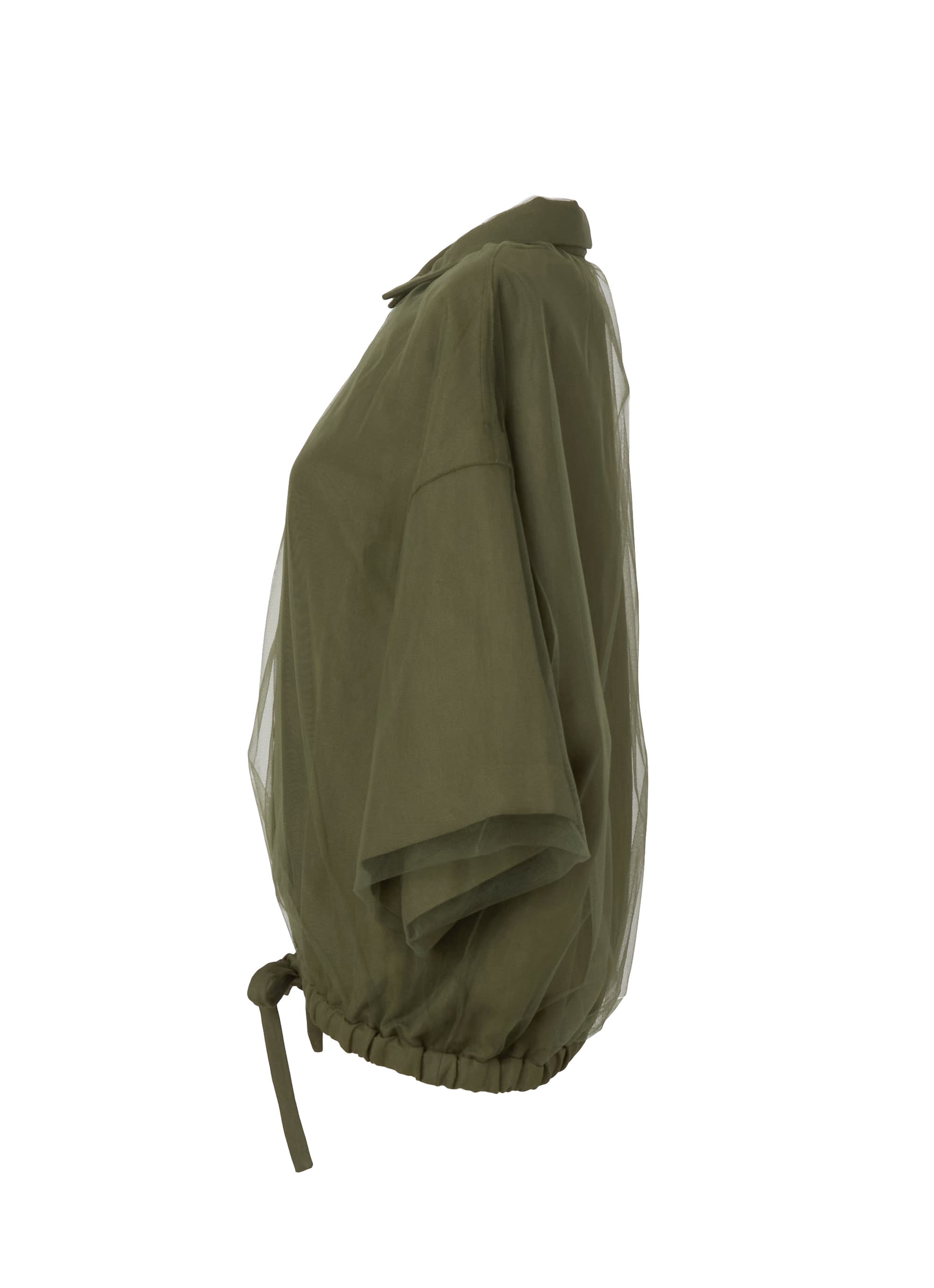 初夏の羽織ものとしても活躍する五分袖に、裾にはゴムとドローコードを配し、様々なシルエットで着こなせます。