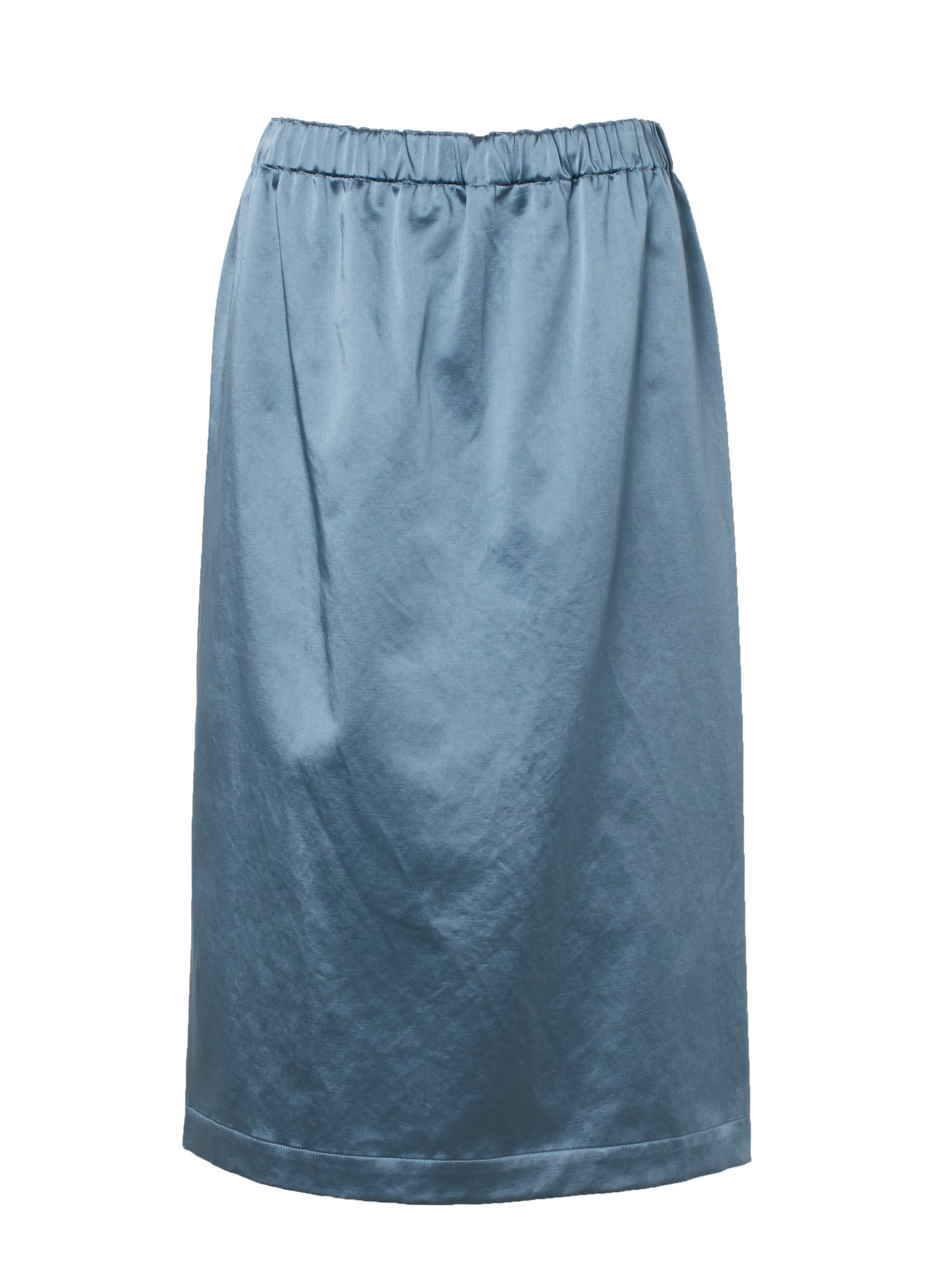 シルキーな光沢をもつダッチェスサテンのスカート。