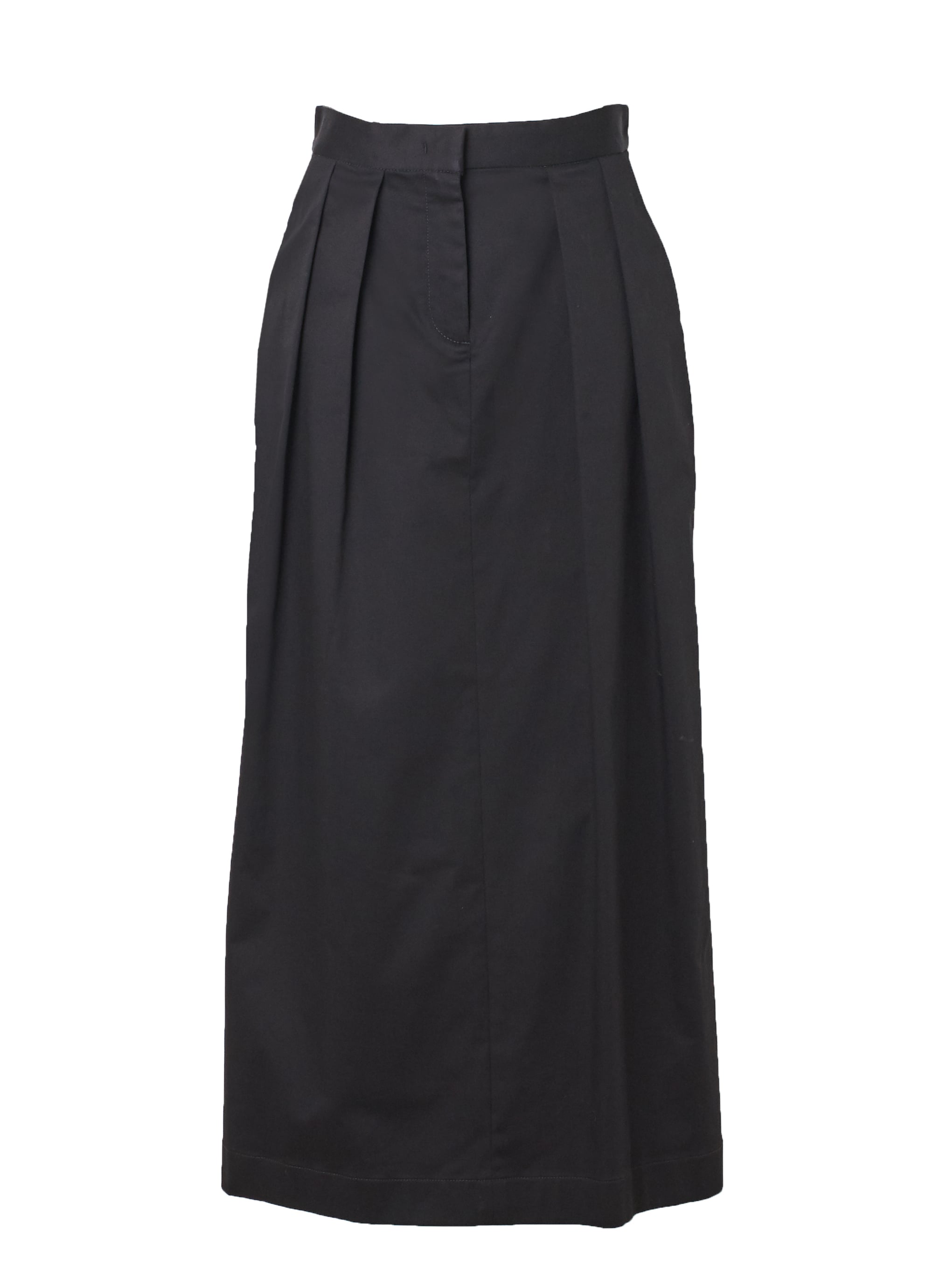 ストレッチ性のあるコットンギャバジン・タックスカート。