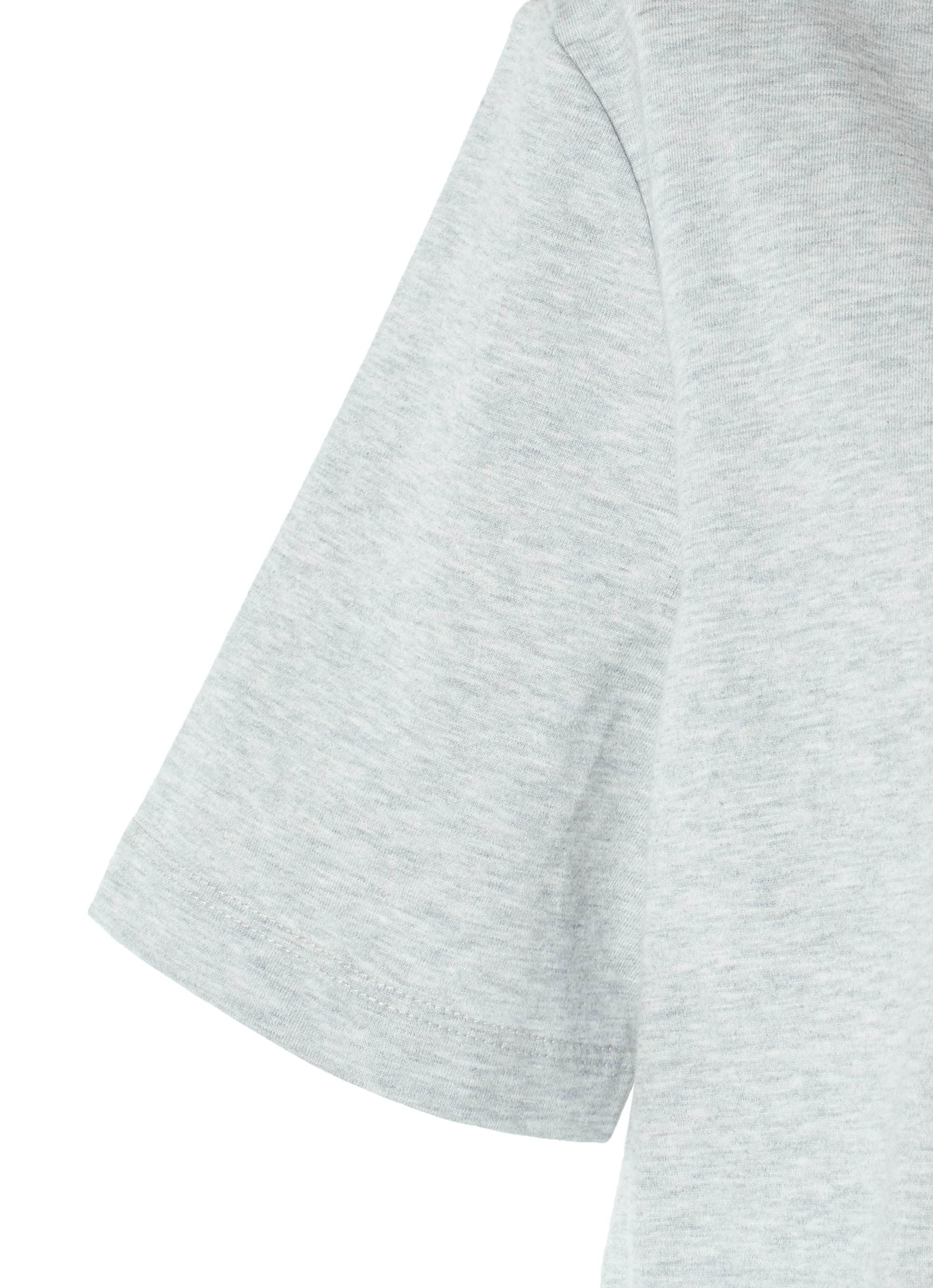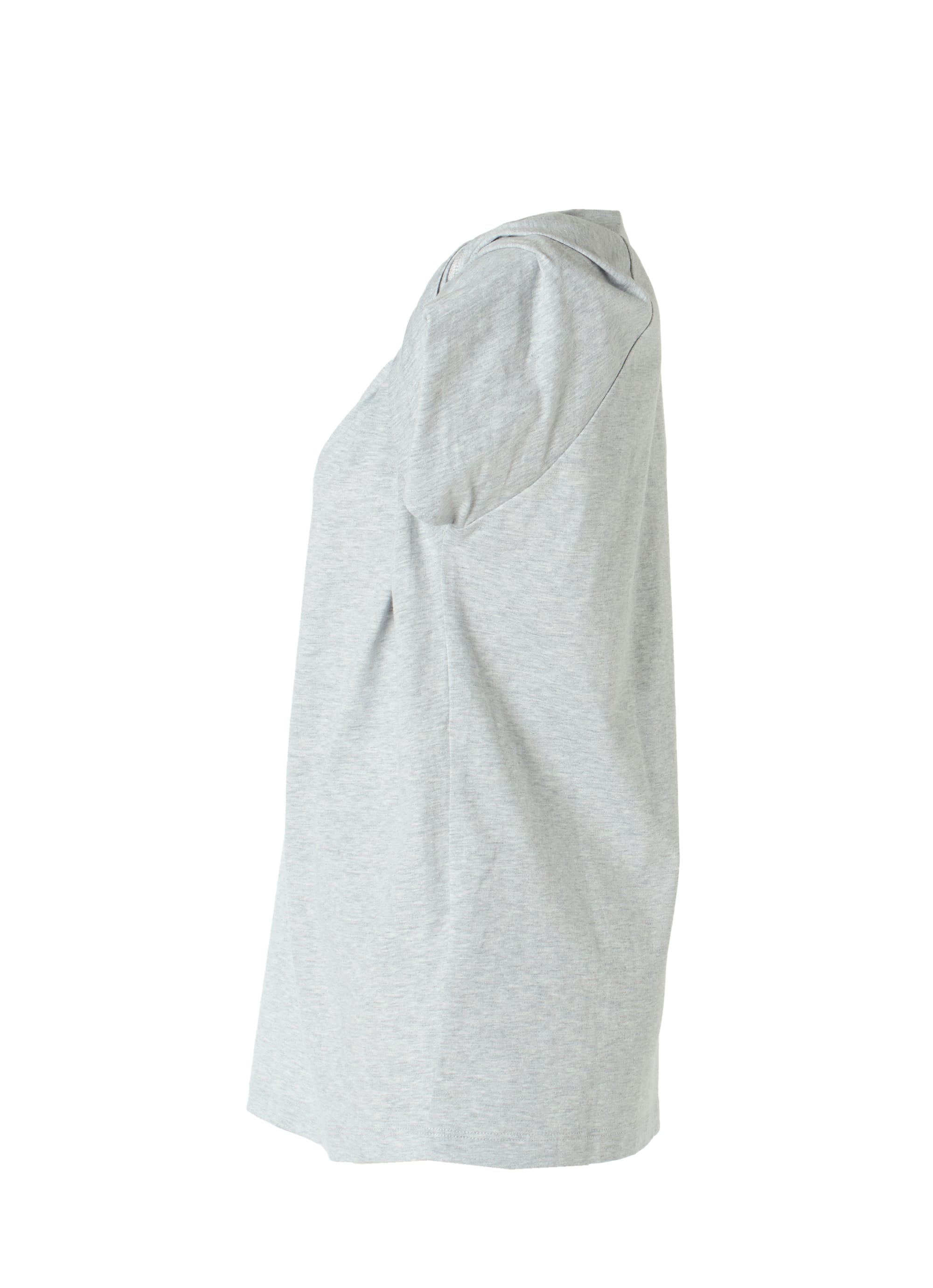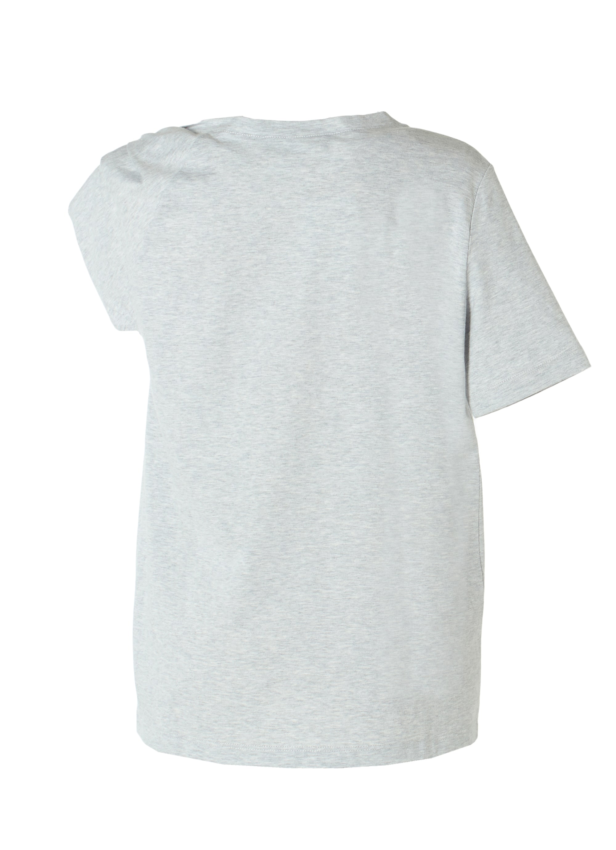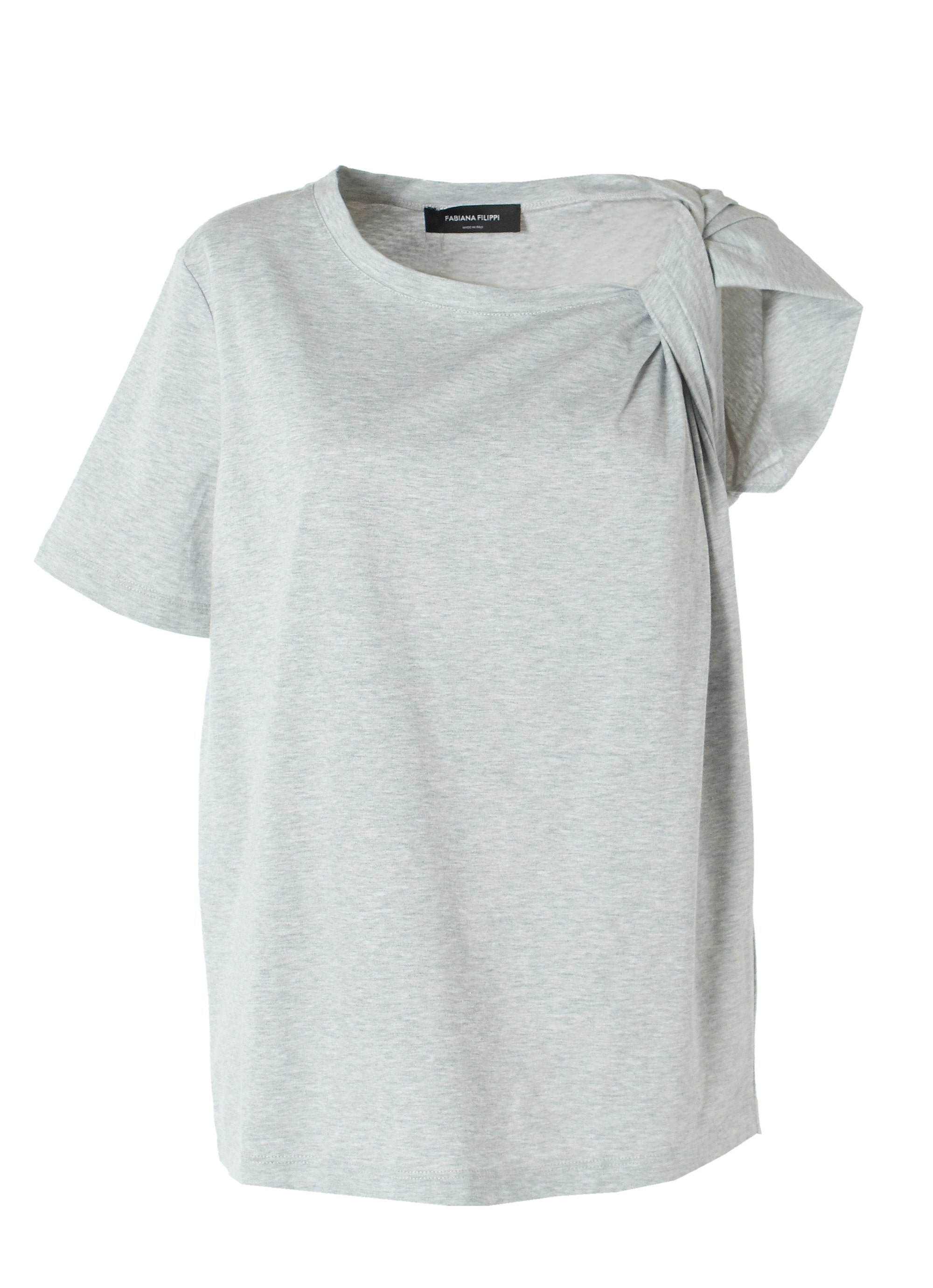 レギュラーフィットのクルーネックカットソーの片袖を結び、ユニークなシルエットに仕上げました。夏のスタイリングにインパクトを与えるアイテムです。
