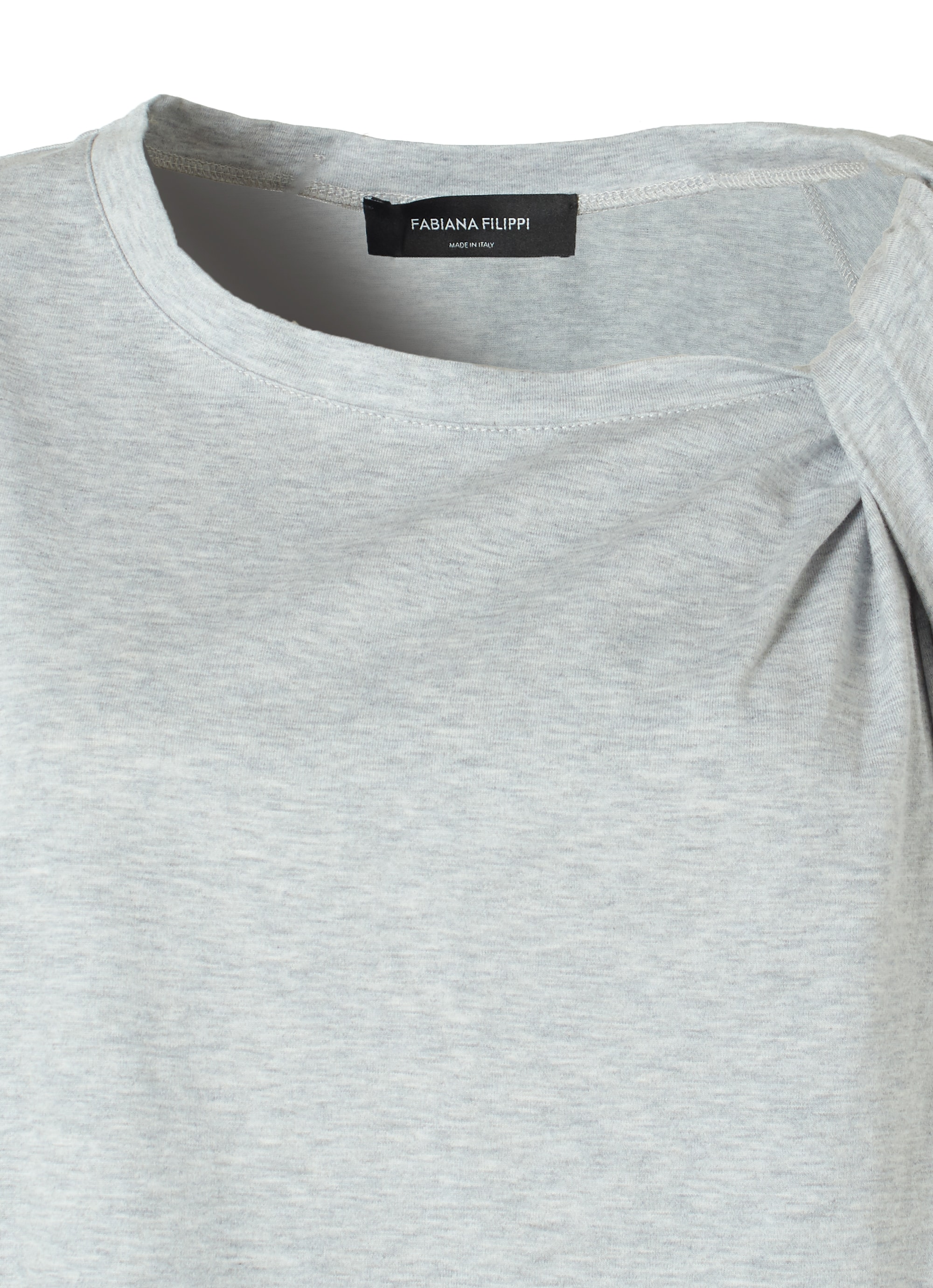 袖のデザインにインパクトのある、コットン100%のカットソー。