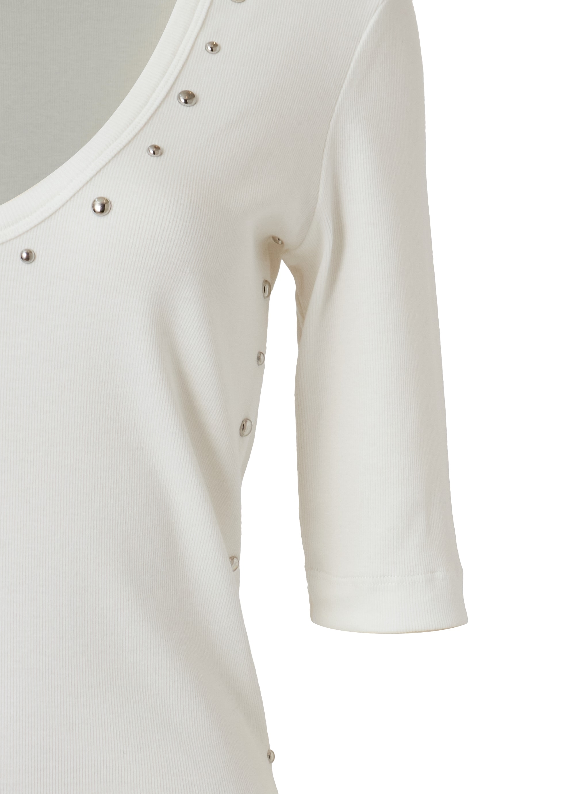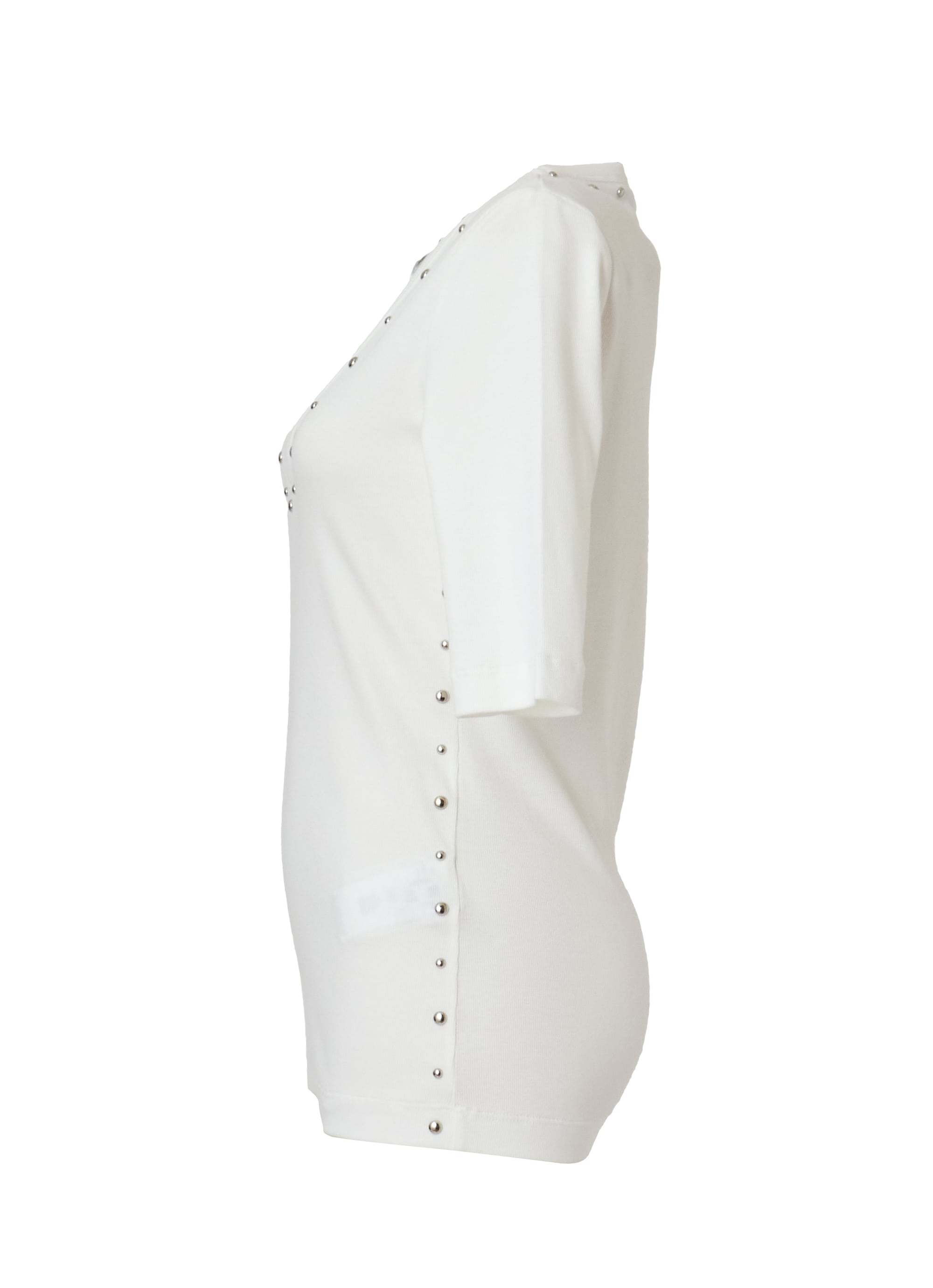 さりげないエッジを効かせた、コットンオーバルネックスタッズカットソー。
