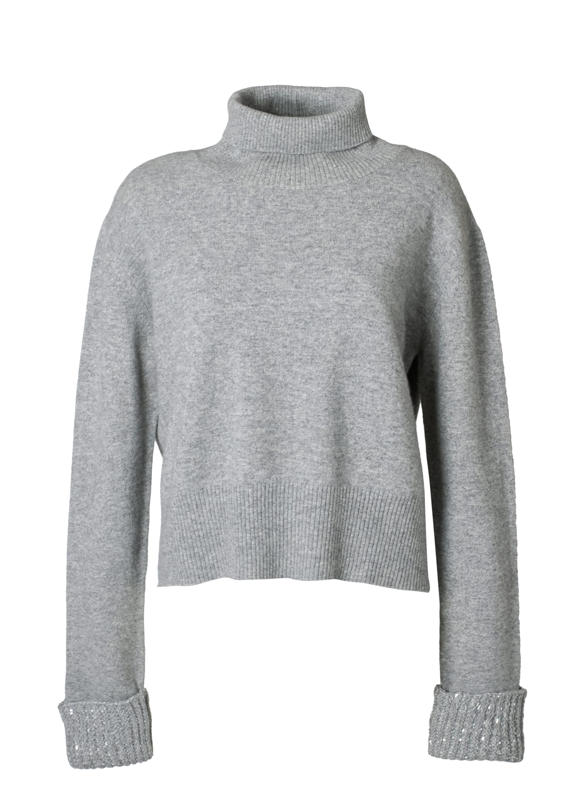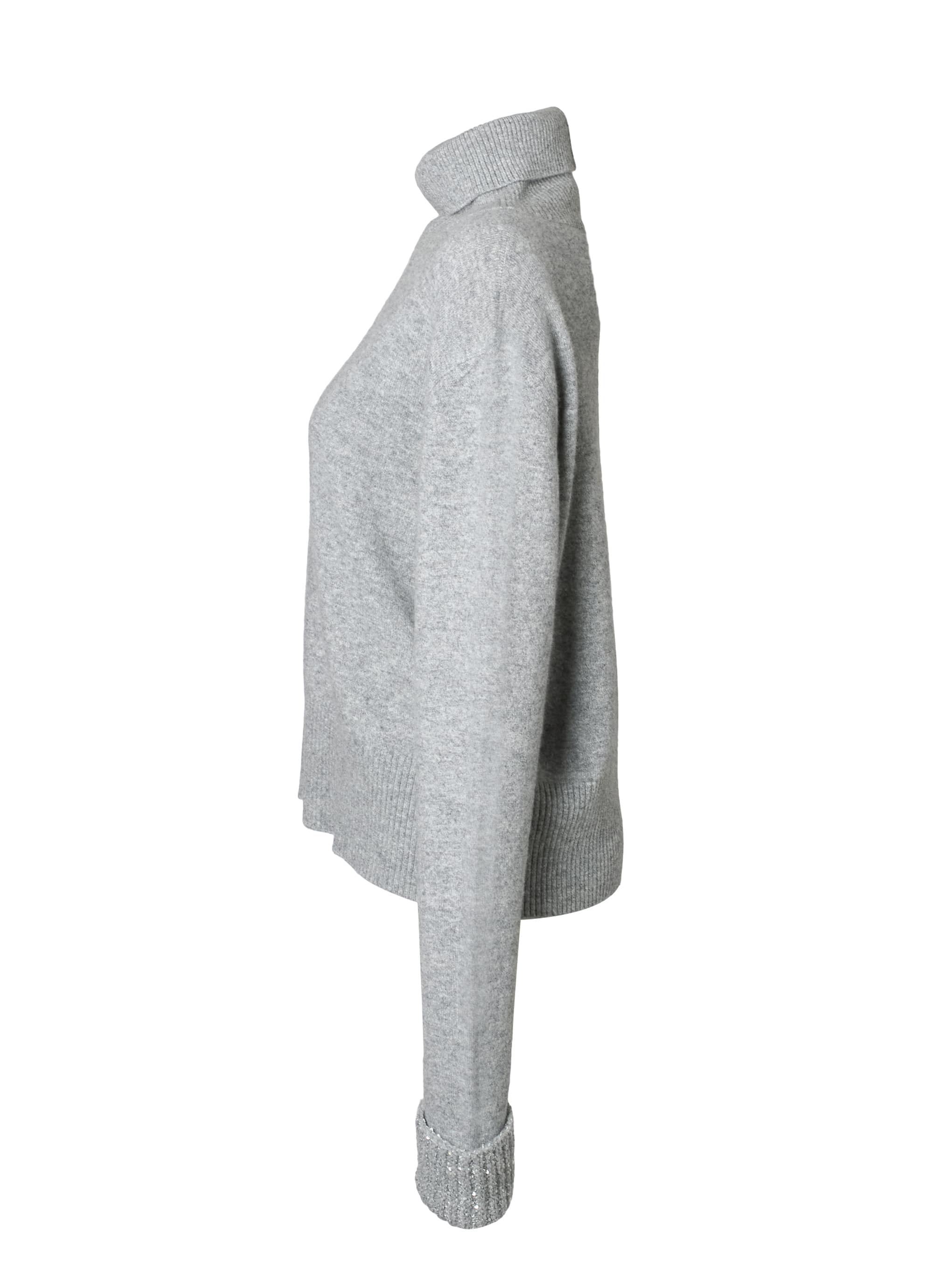 FABIANA FILIPPIの定番素材であるウールシルクカシミヤを使用した、シンプルなハイネックニットプルオーバー。
