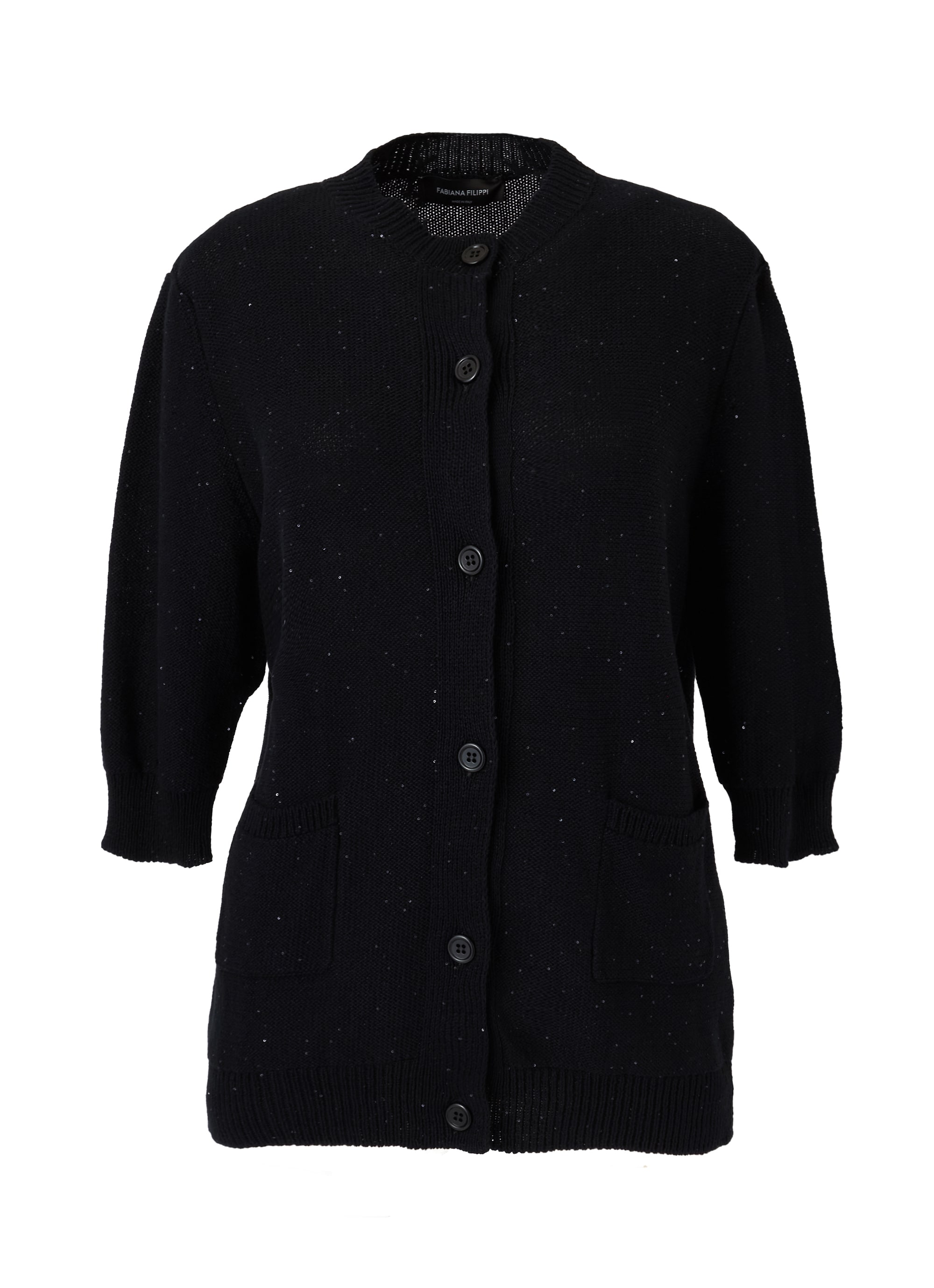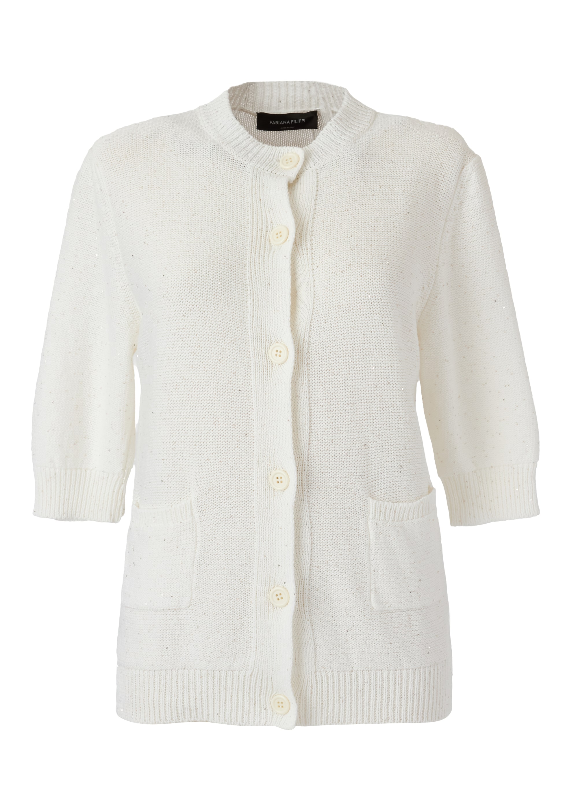 コットン×麻に細かいスパンコールを散らばせた半袖カーディガン。