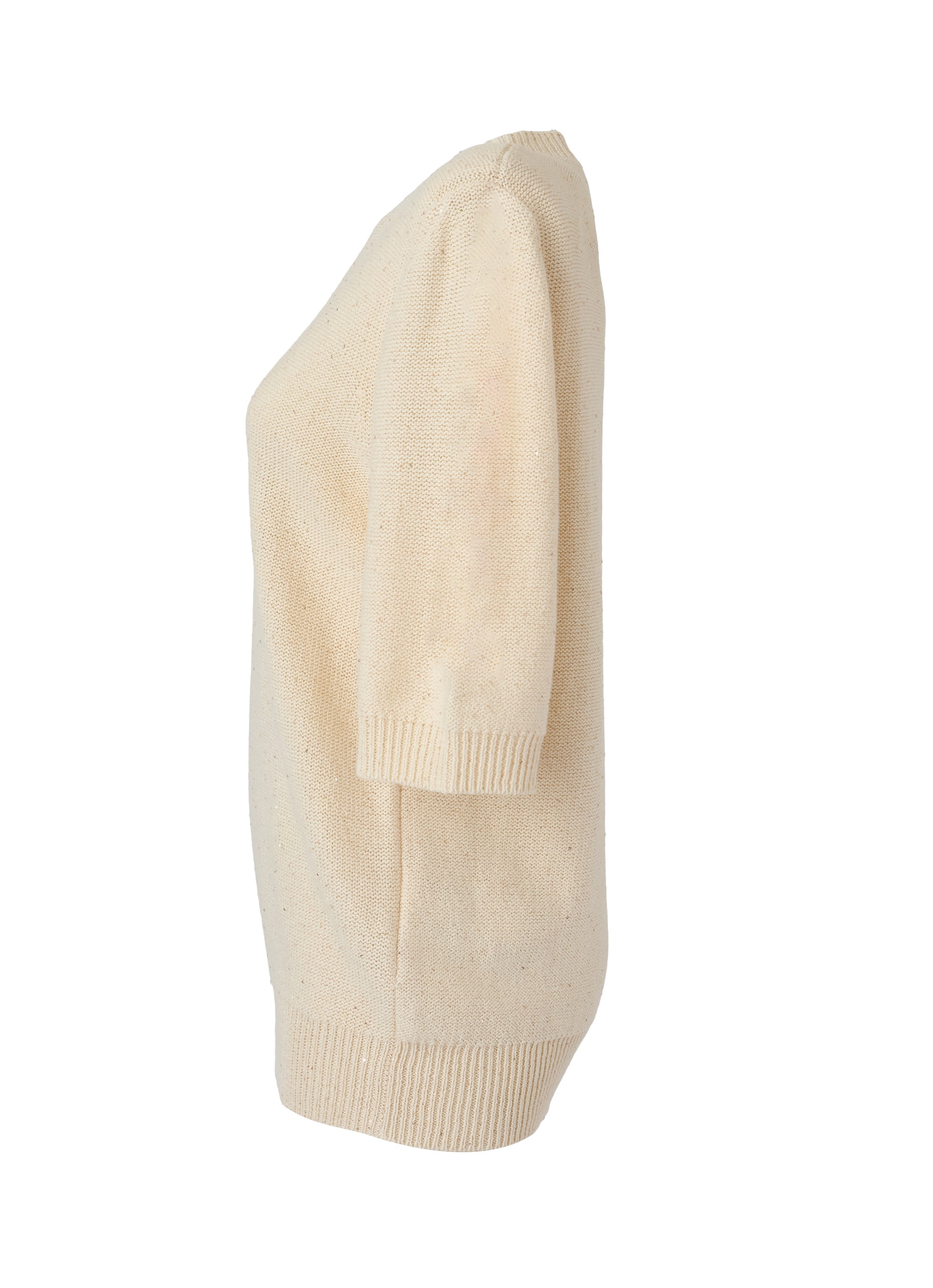 ナチュラルな風合いとさりげない華やぎが、大人の女性にふさわしい上品な輝きを添える、半袖ニットプルオーバー。