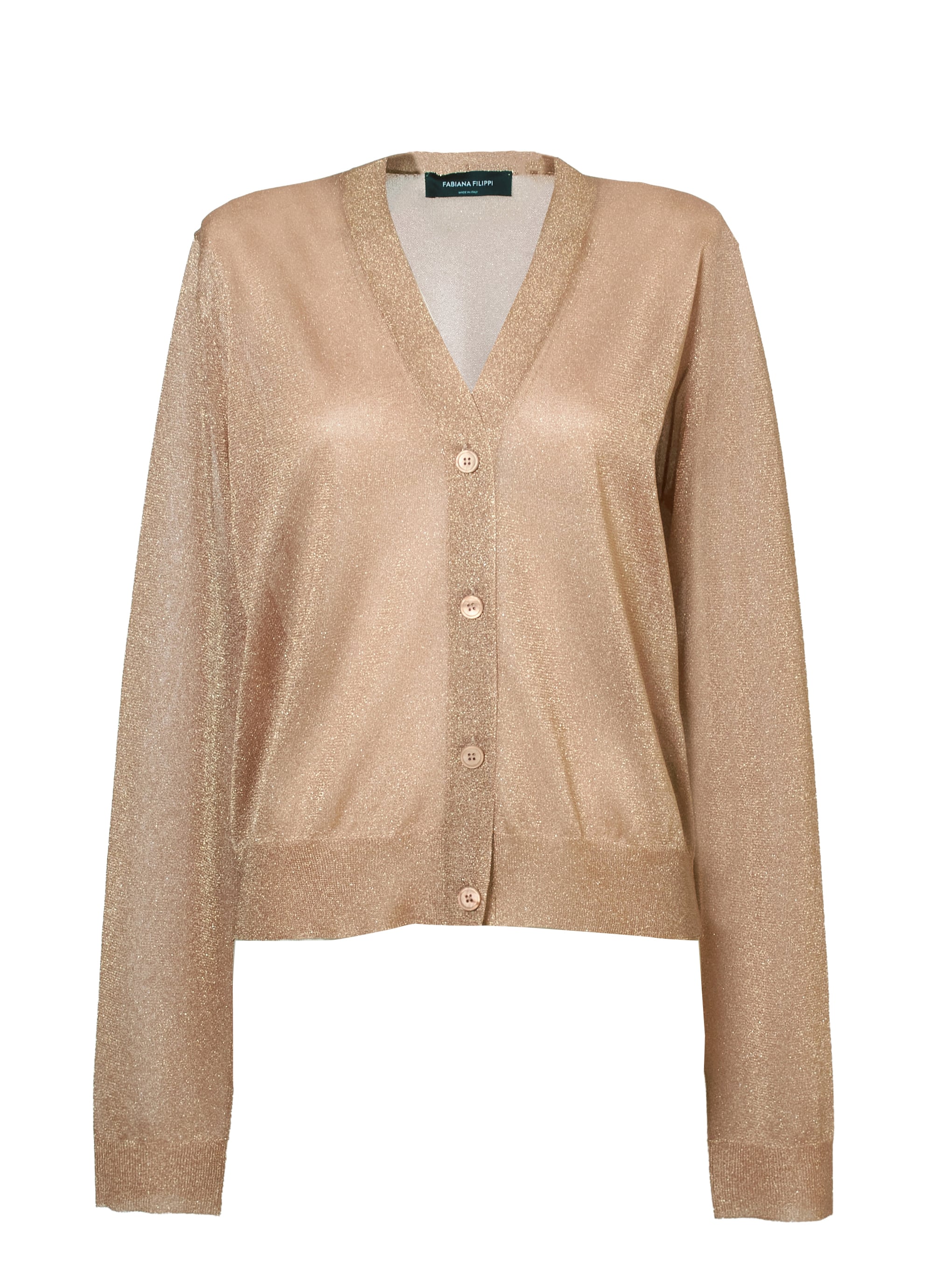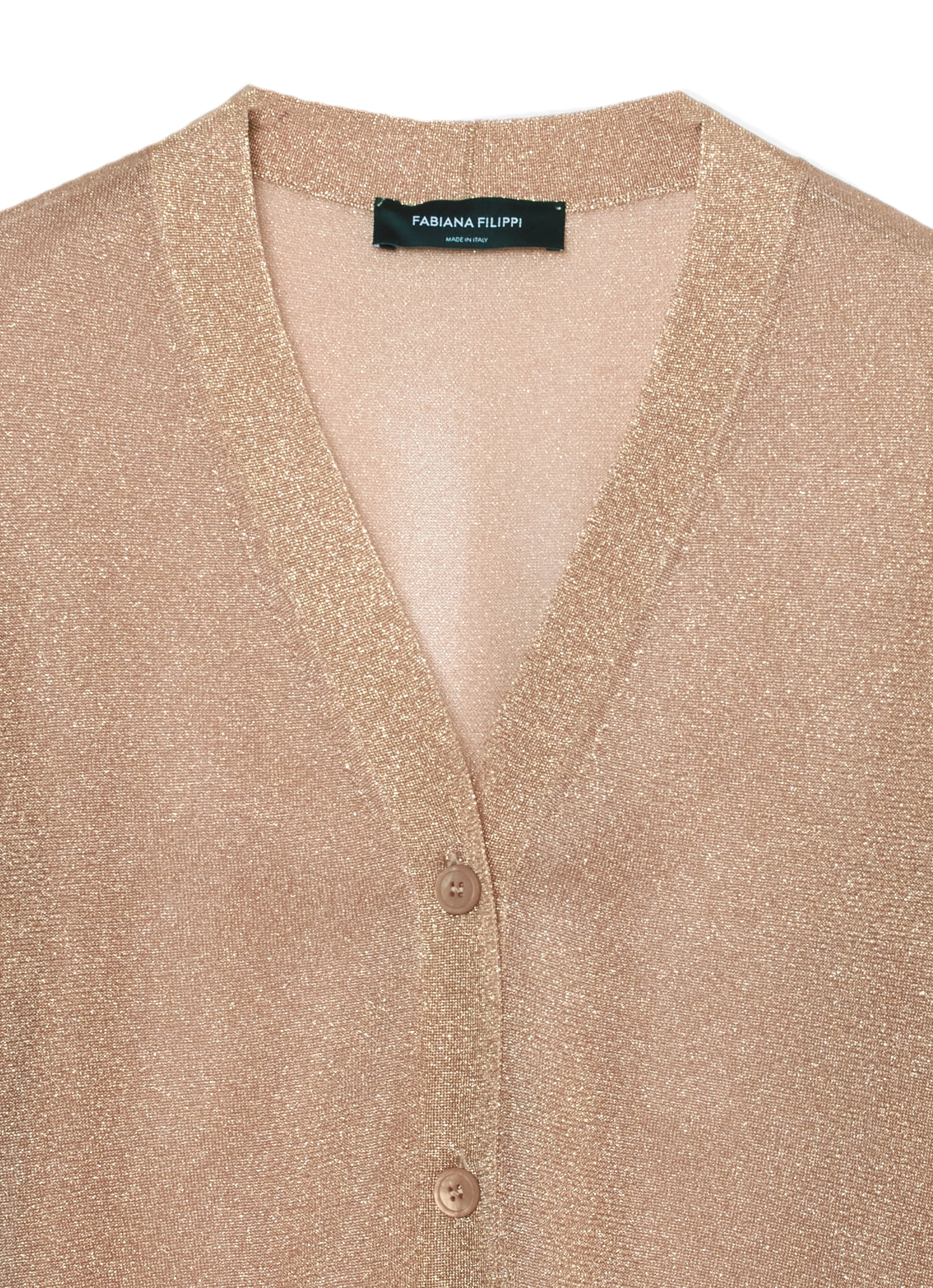 春夏に使いやすい薄手のナイロンラメニットカーディガン。