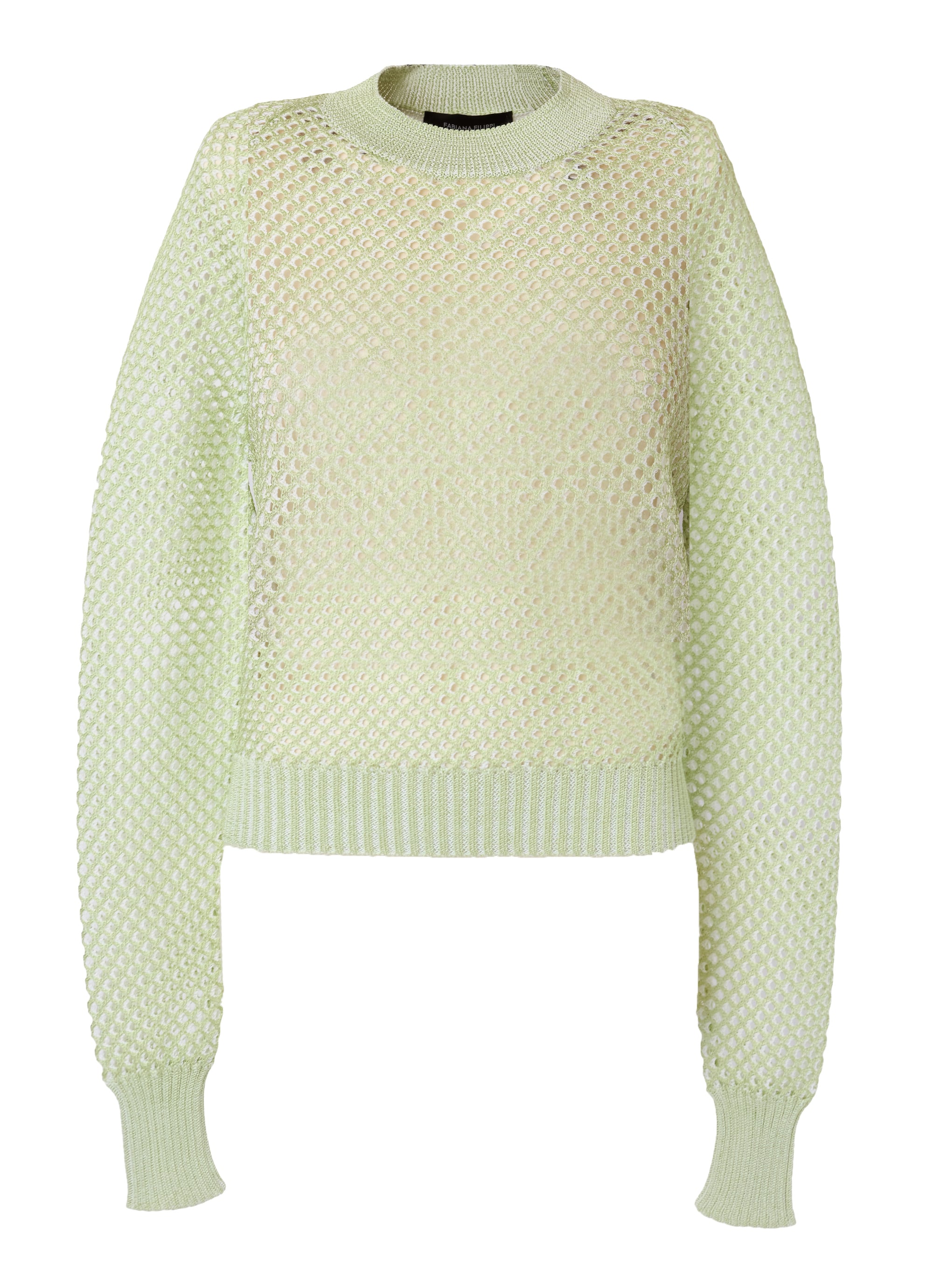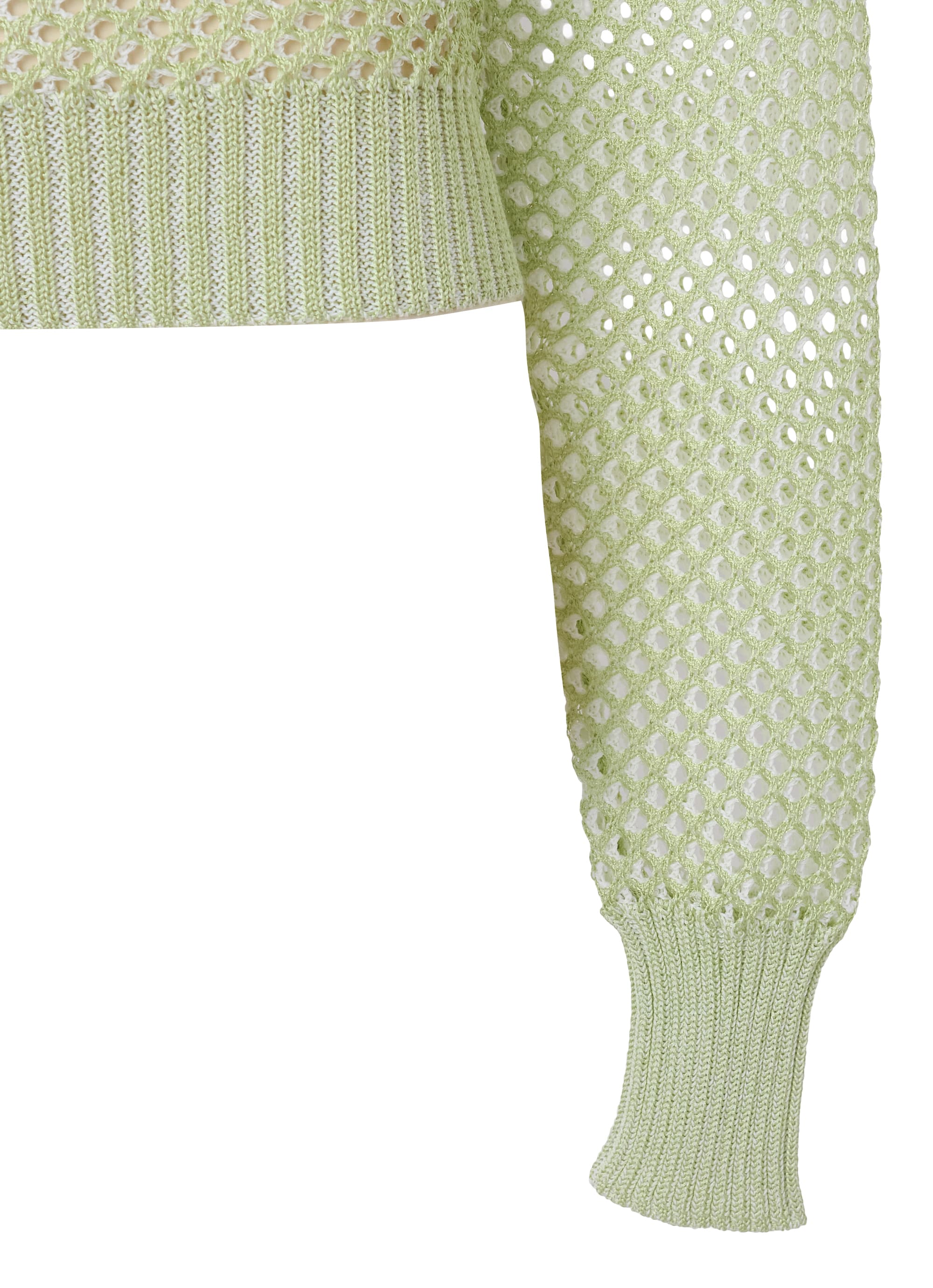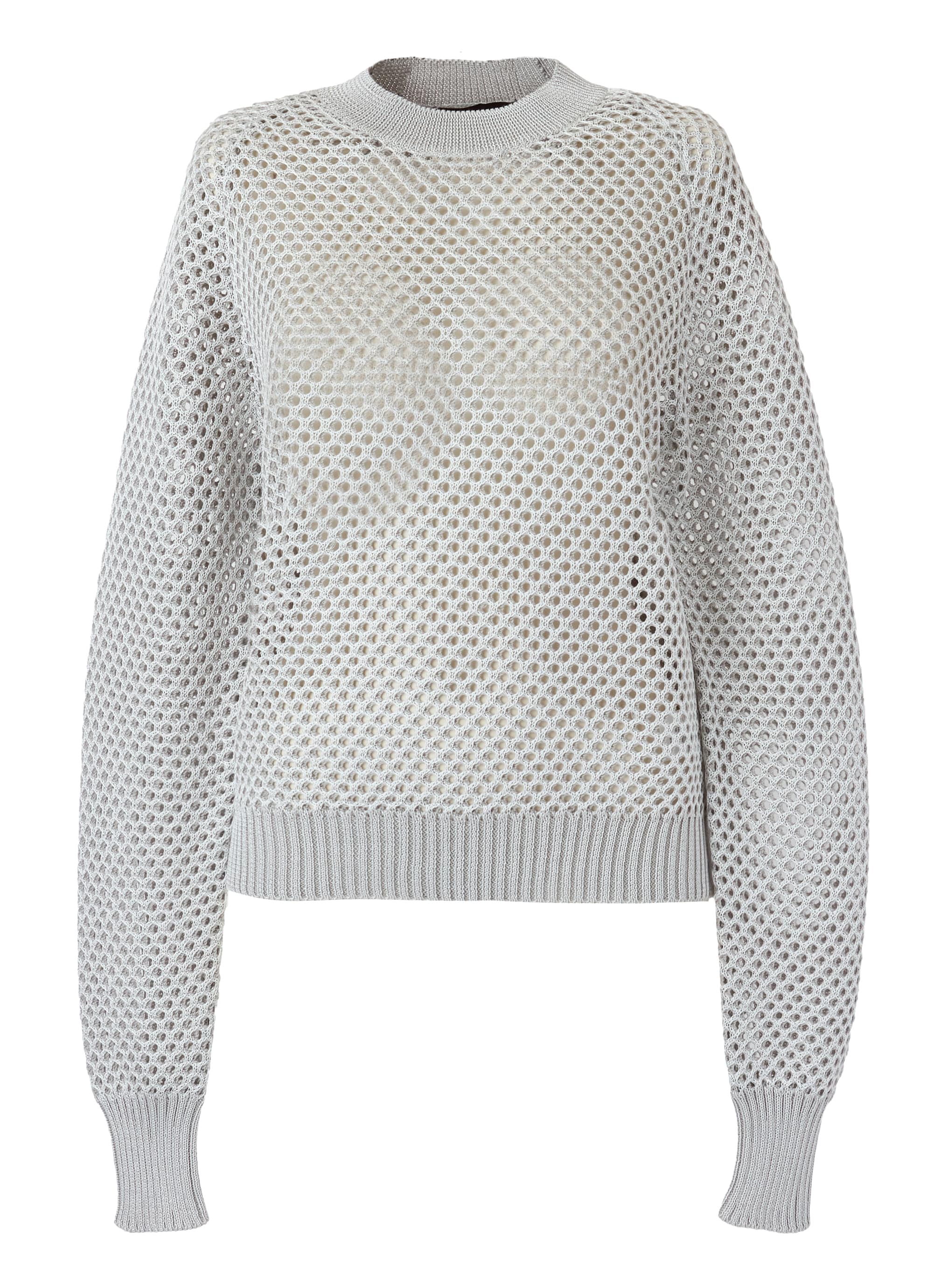 2色の糸をメッシュ状に編み上げた、奥行きのある編地が魅力のデザインニットプルオーバー。