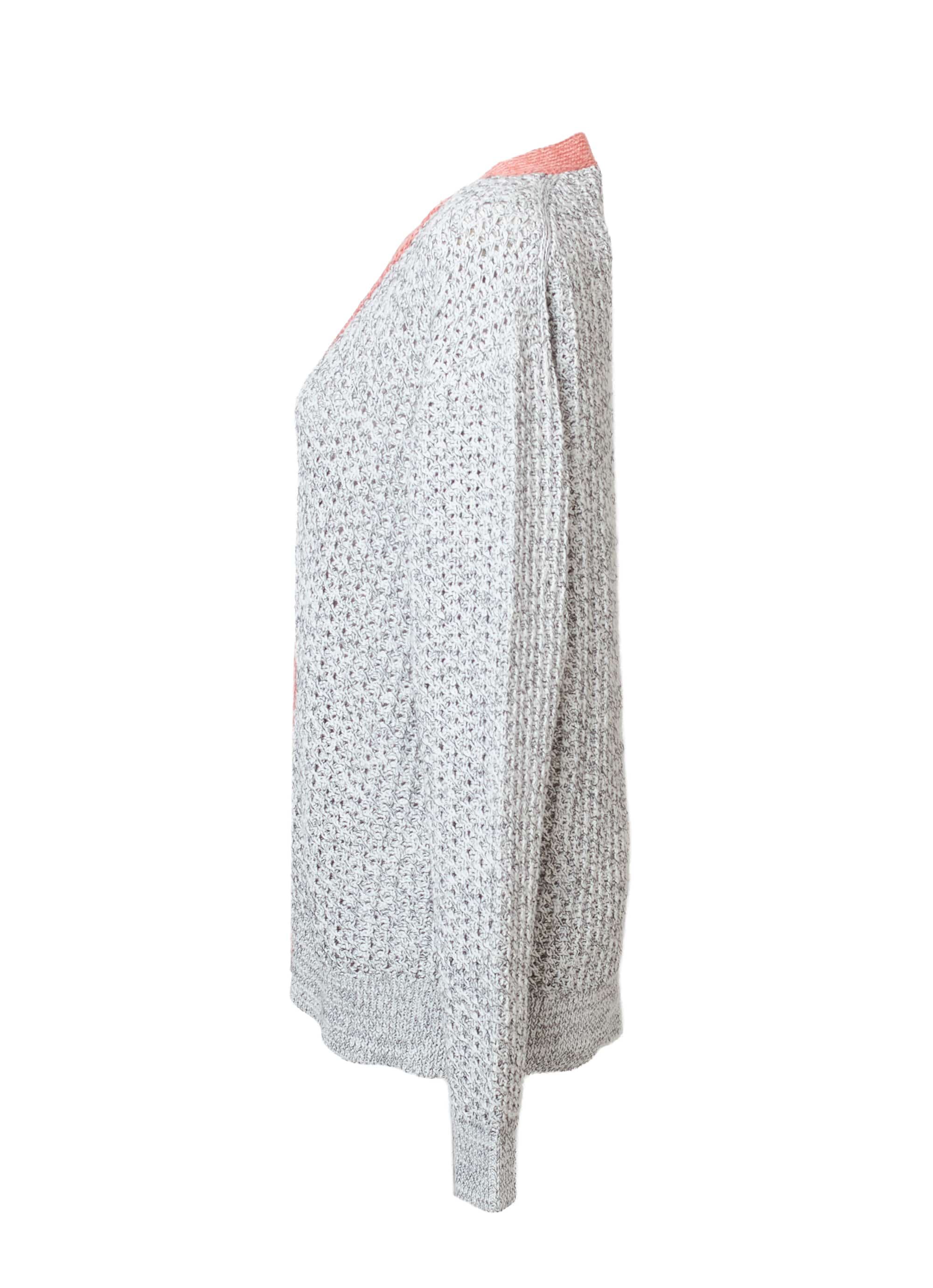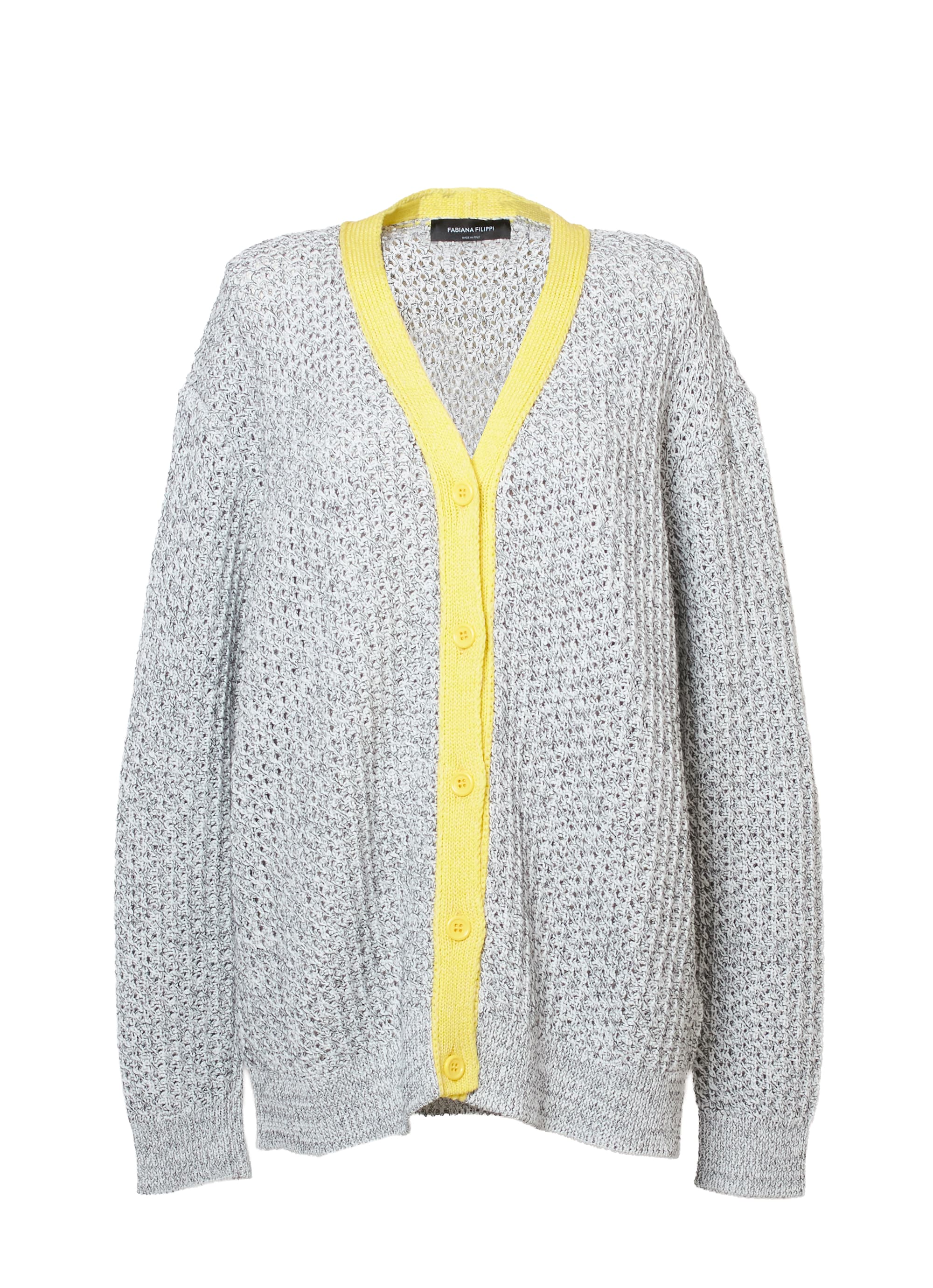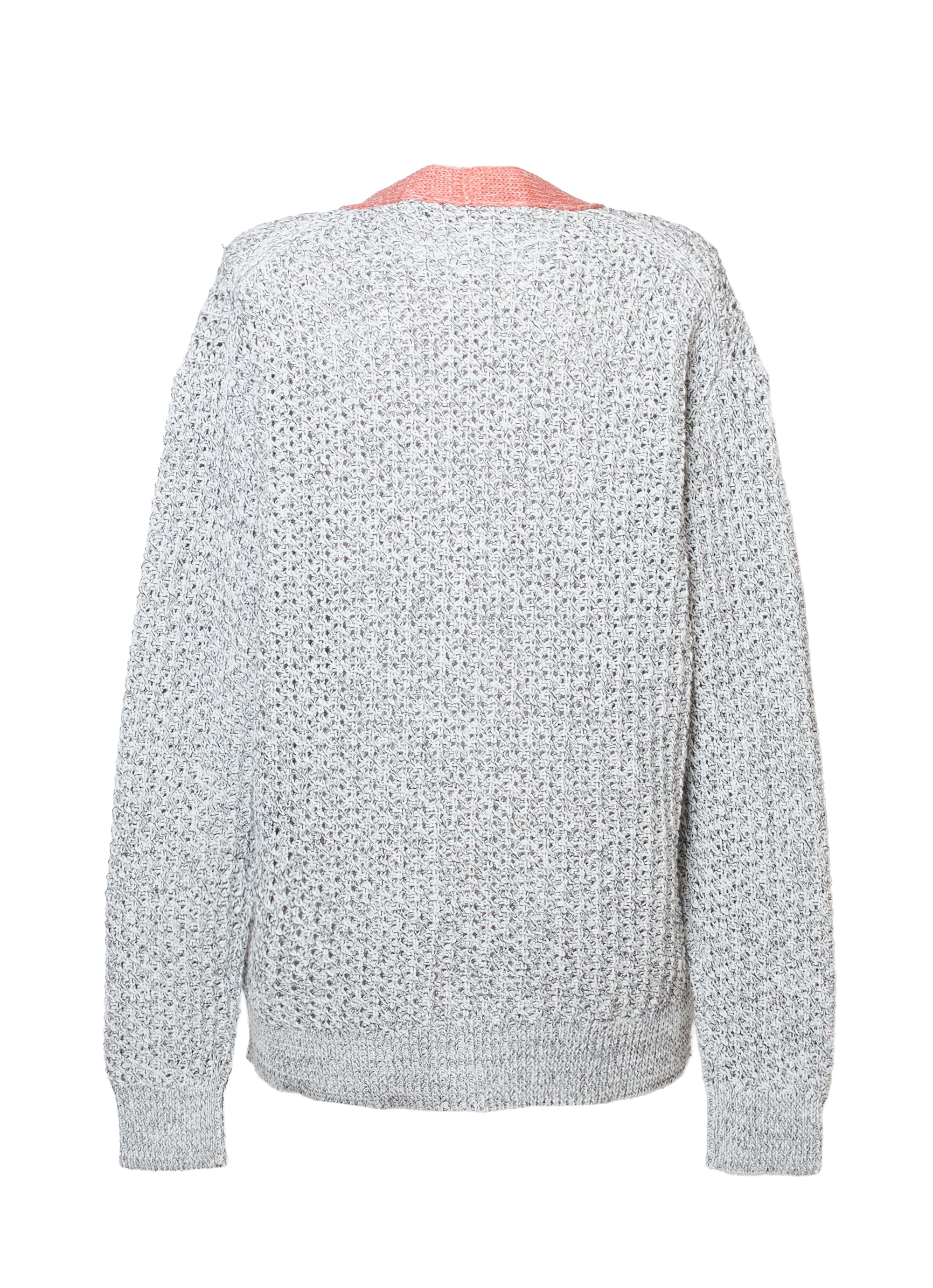 ホワイトとブラックの糸をより合わせて編み上げた表情のある素材感に、カラーのトリミングがアクセント。カジュアルなコーディネートの主役になれるアイテムです。