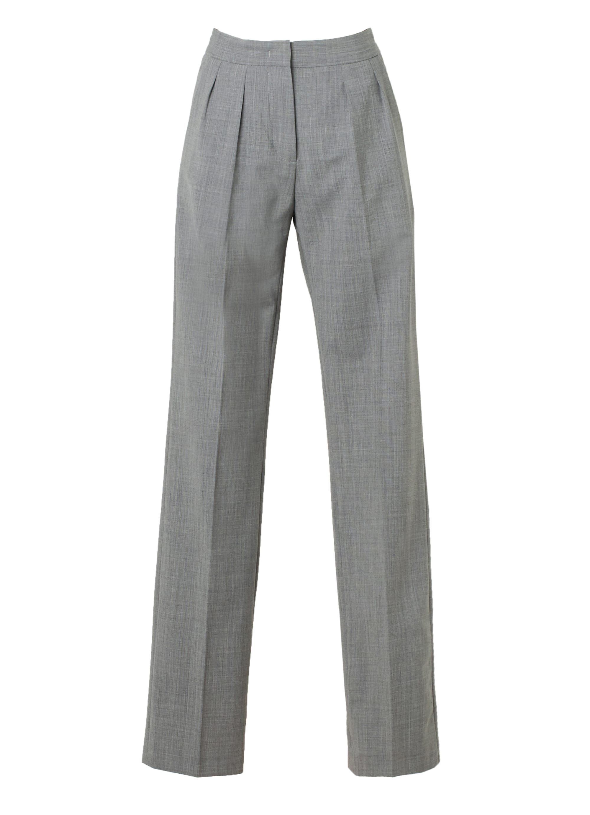 タックをしっかりとりながらも、すとんと落ちるシルエットは、脚をまっすぐにきれいに見せてくれる秀逸なパンツです。