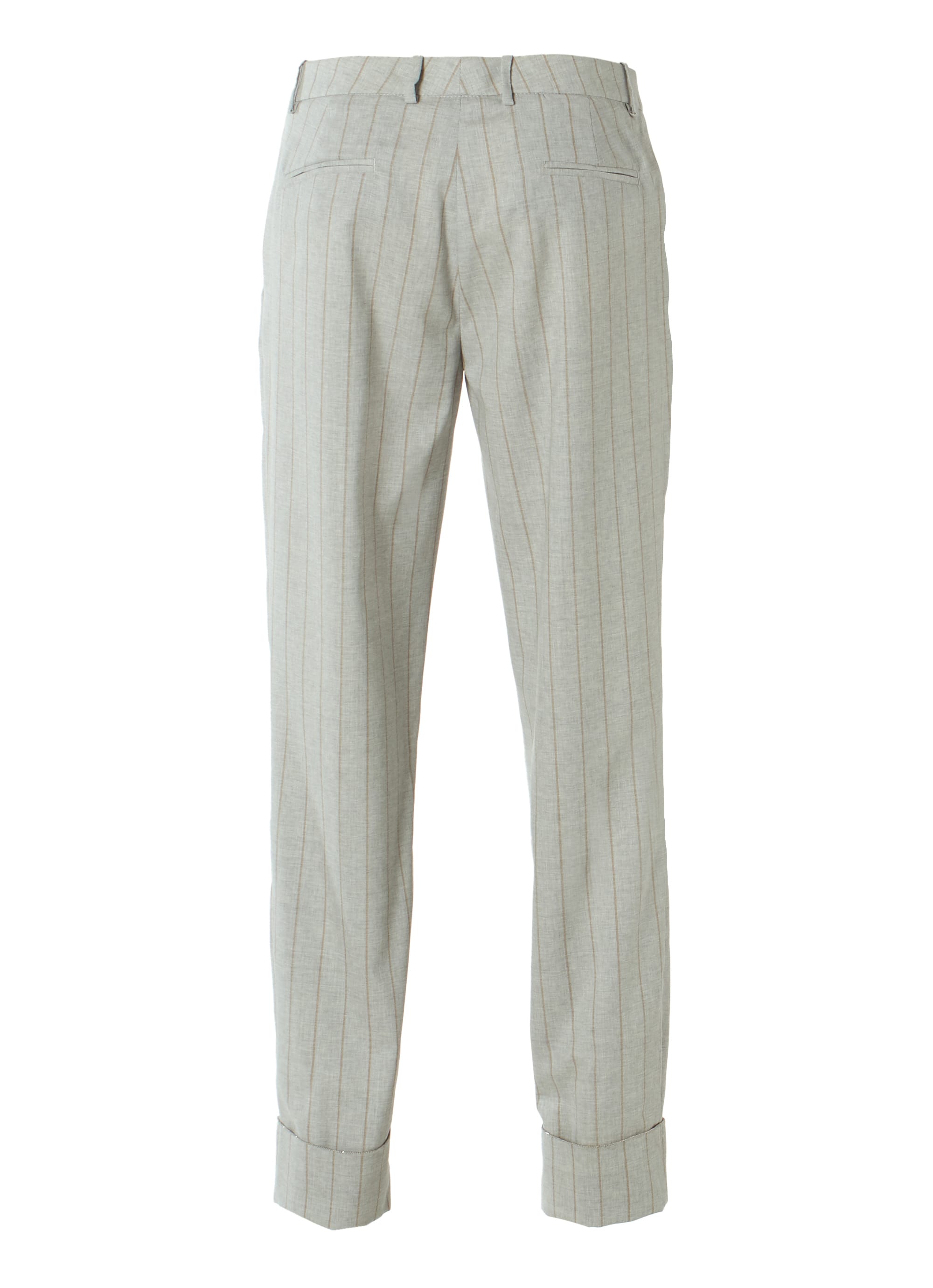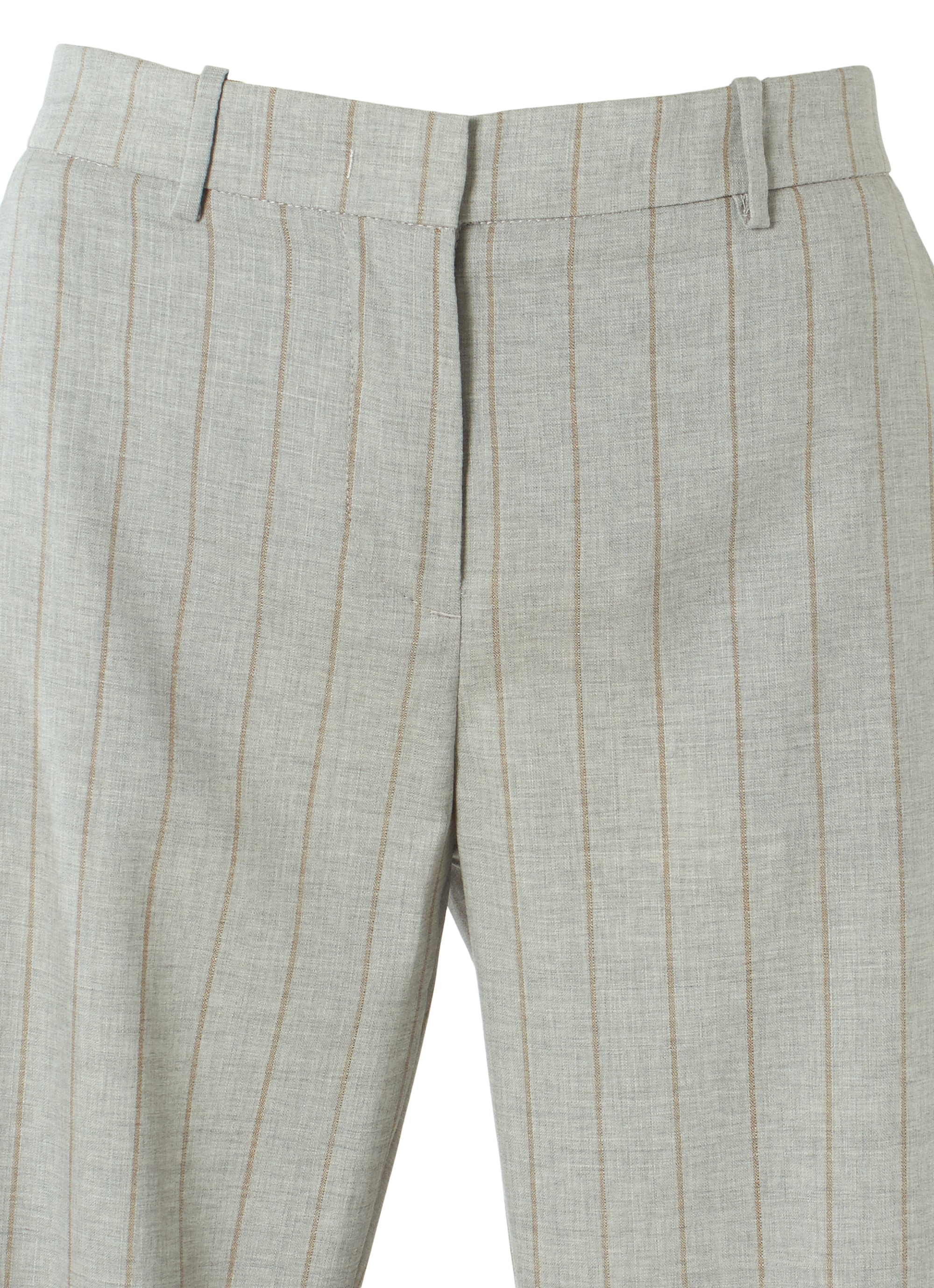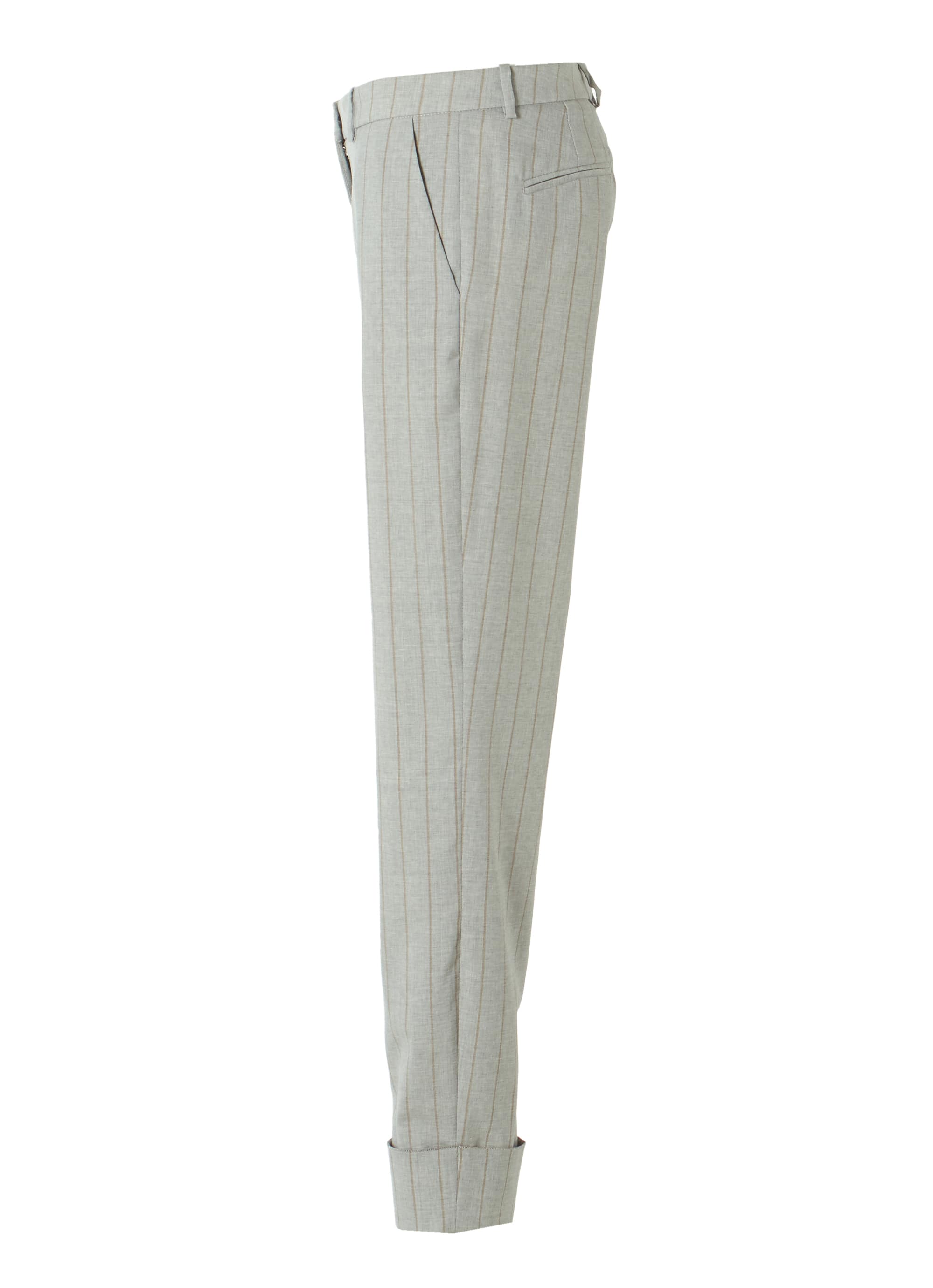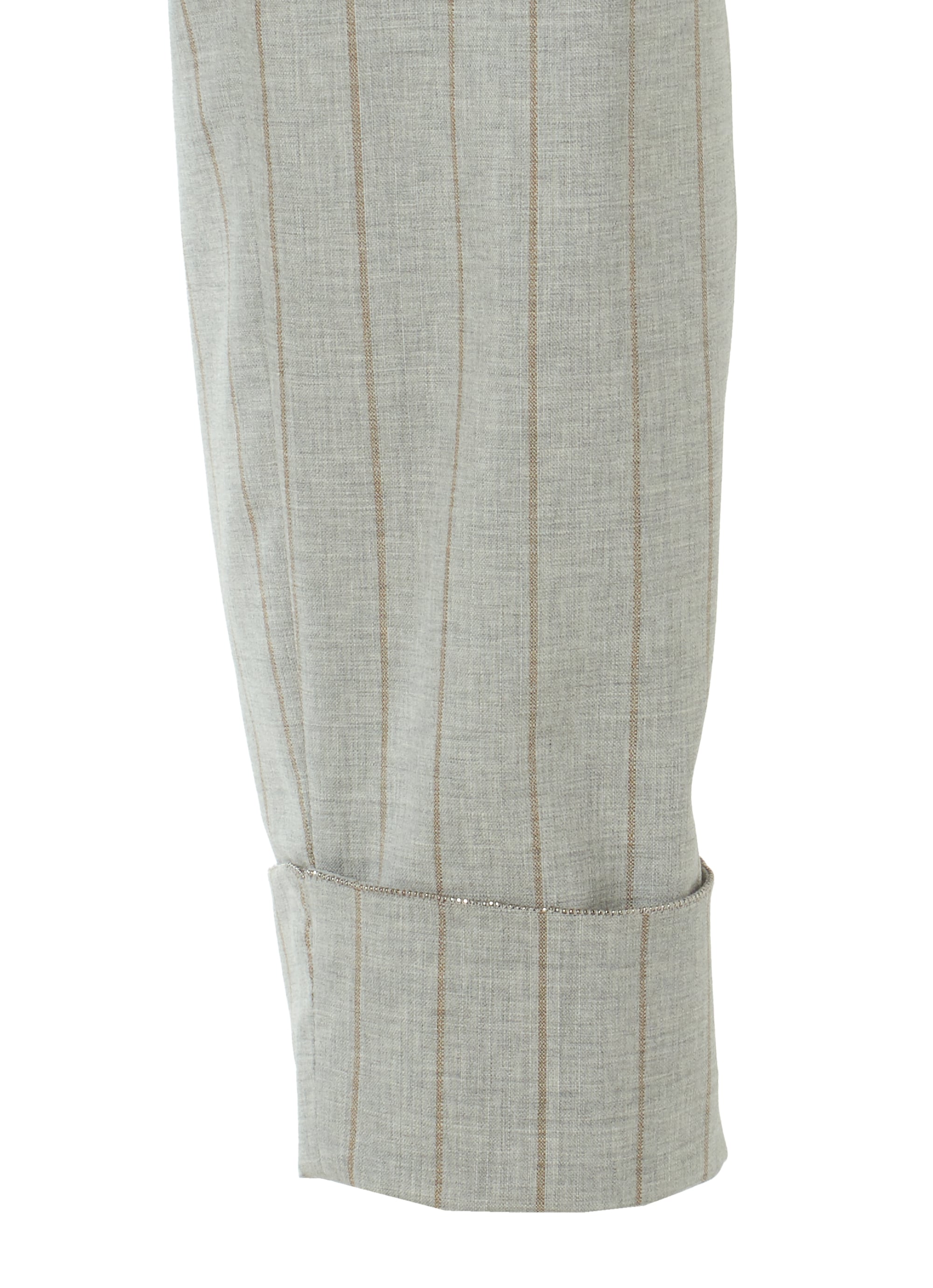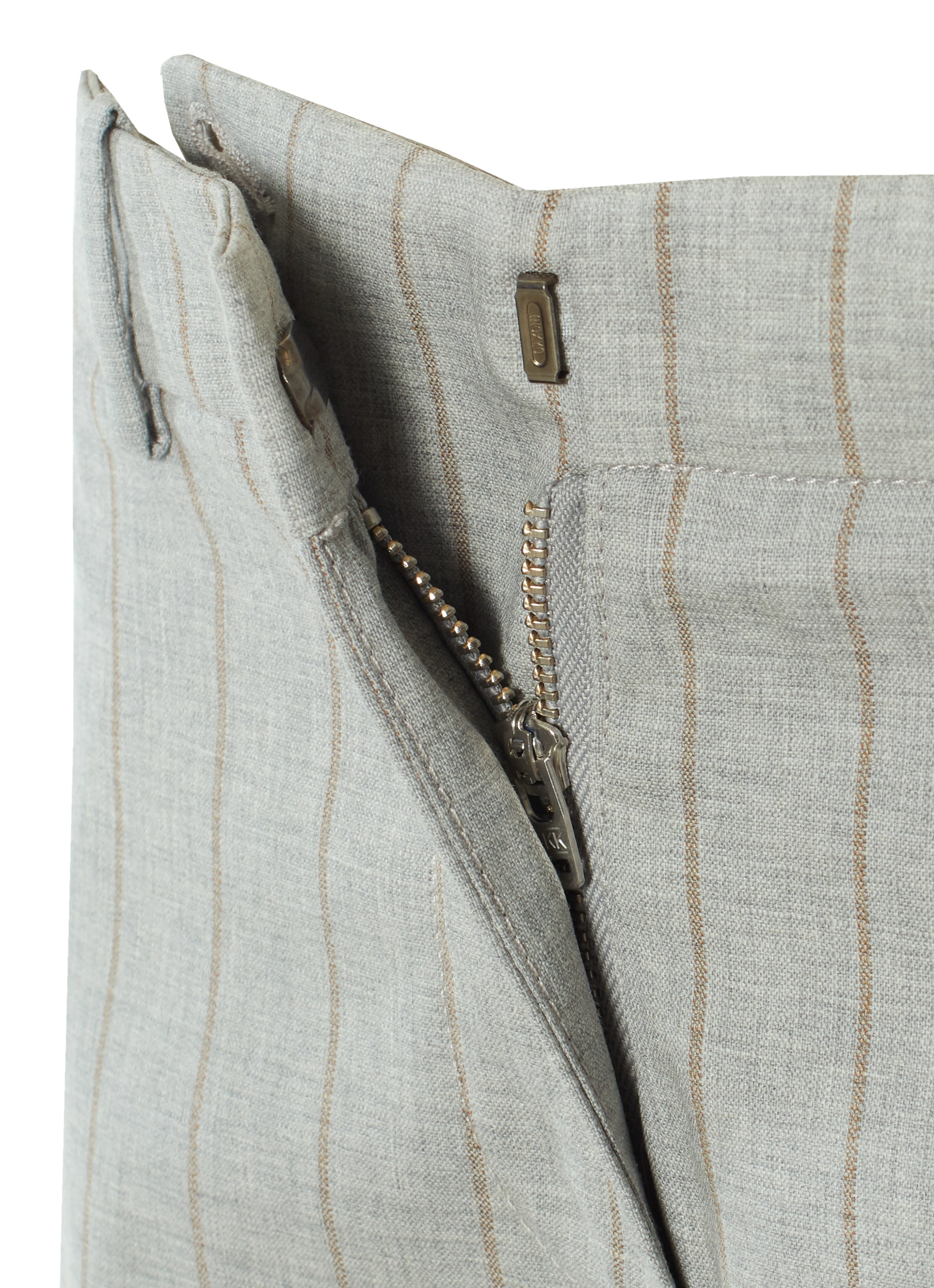 さらりとした肌触りのウール素材は春夏シーズンに最適。細いストライプとベーシックな色の組み合わせにより、カジュアルなスタイリングにクリーンな印象をもたらします。