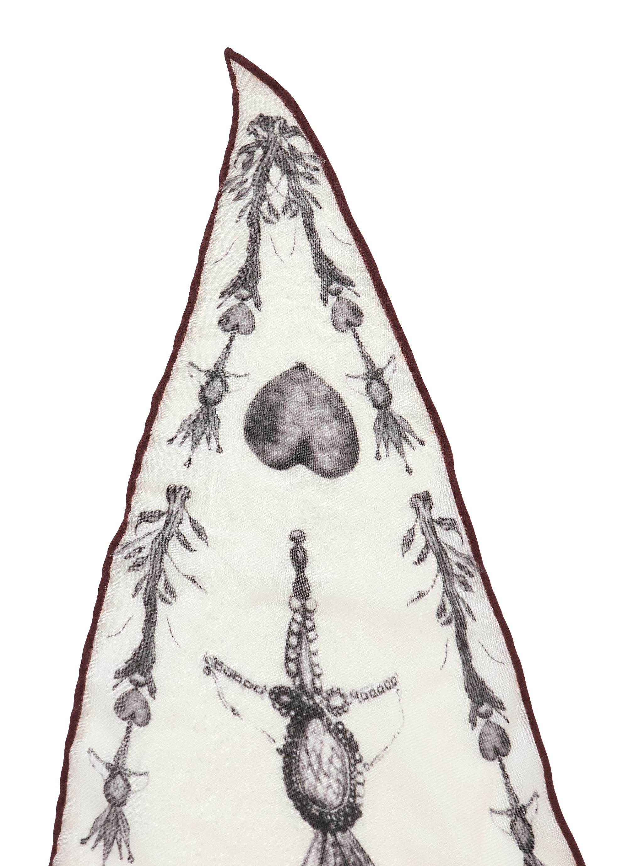 ボルドーのパイピングがエレガントな大判のスカーフ。
