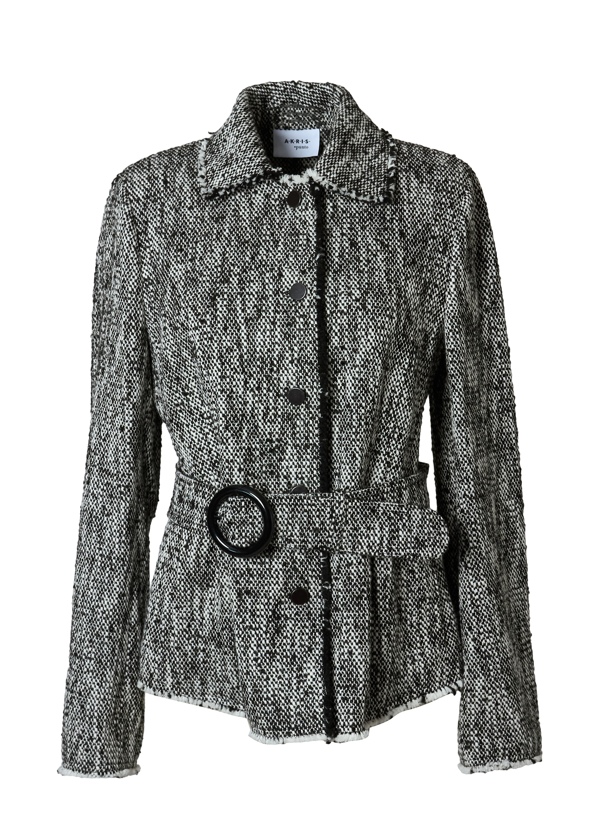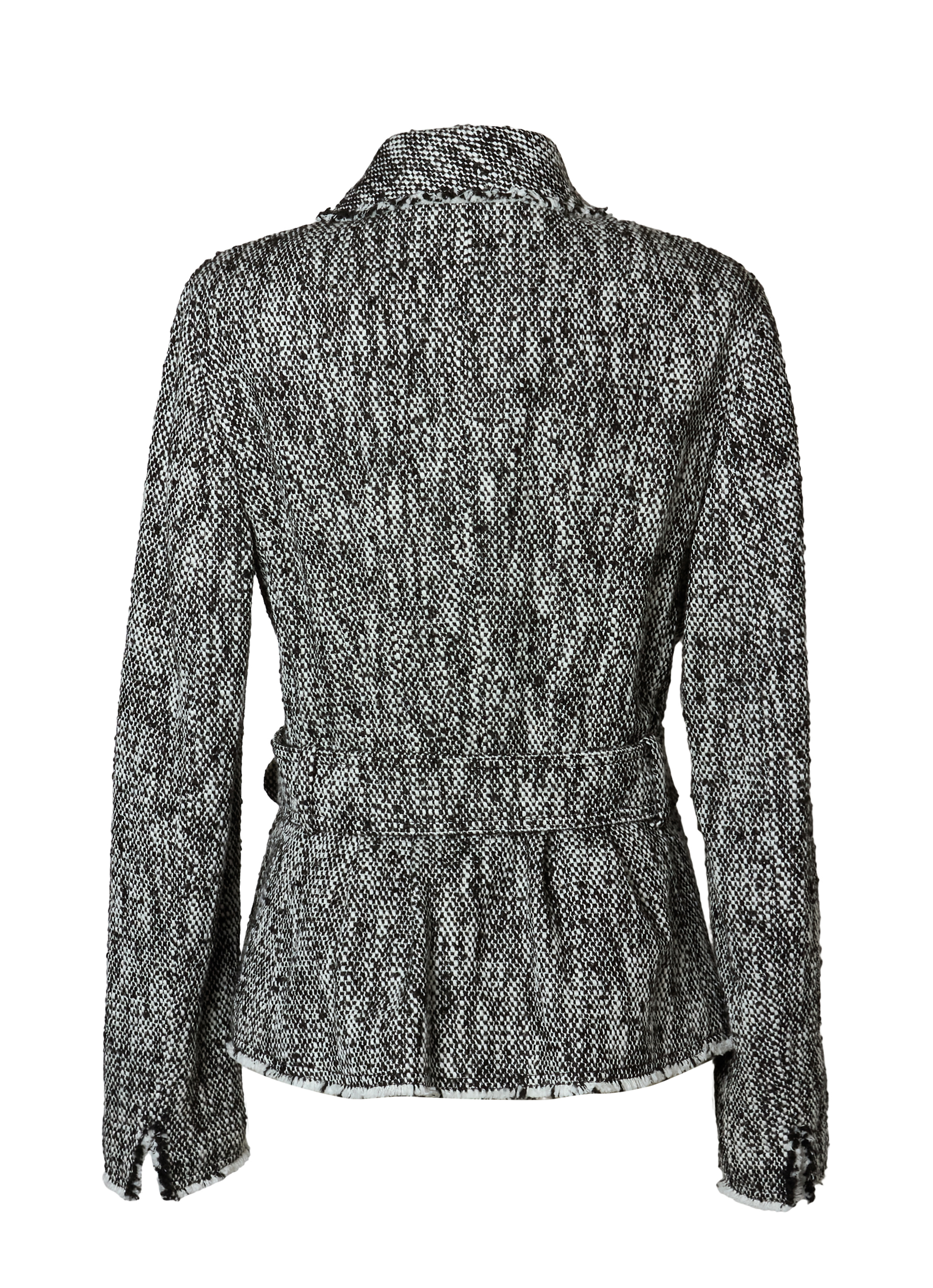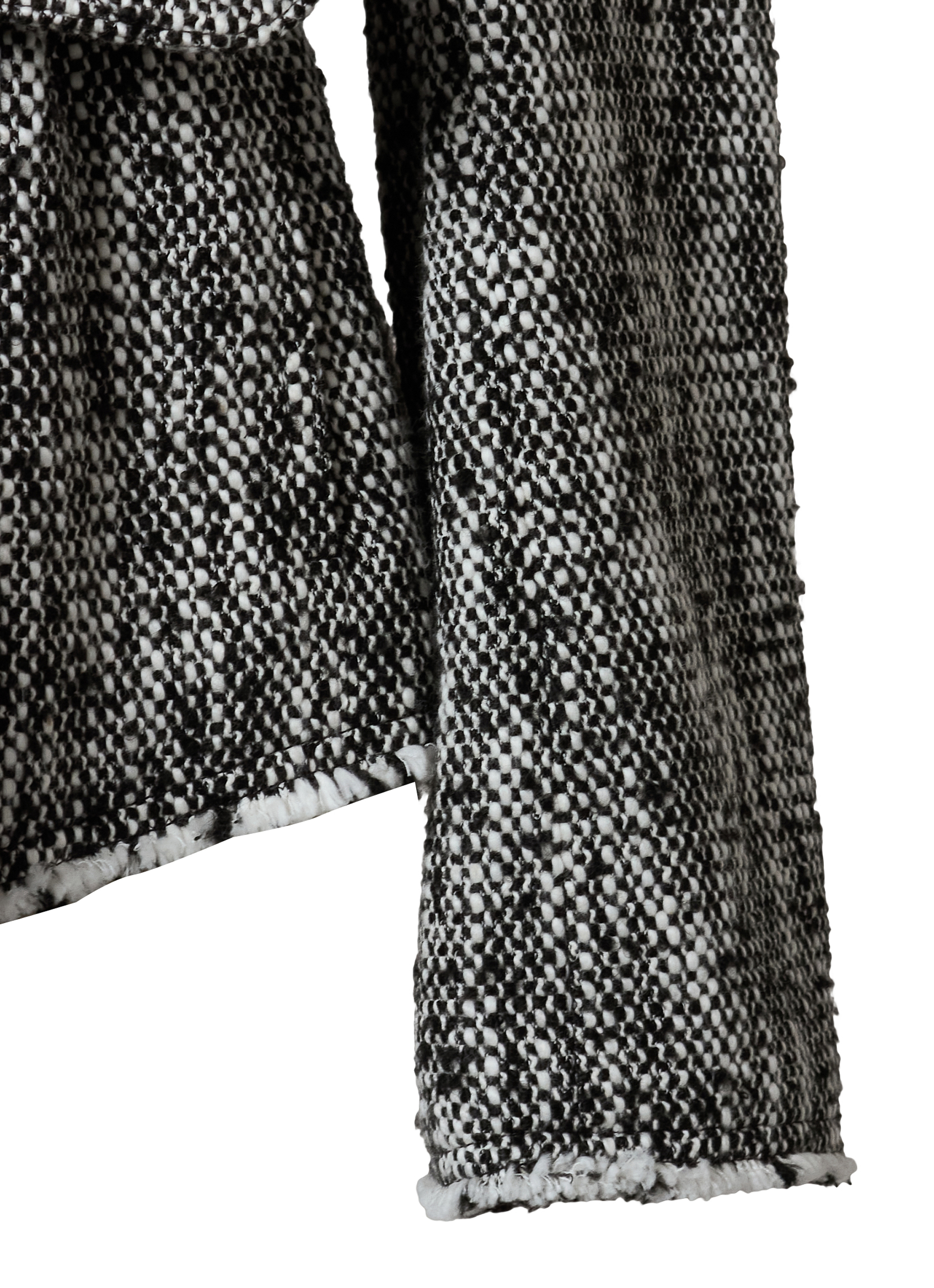 クラシカルなツイードの風合いに、モダンなエッセンスを加えたエレガントなジャケット。