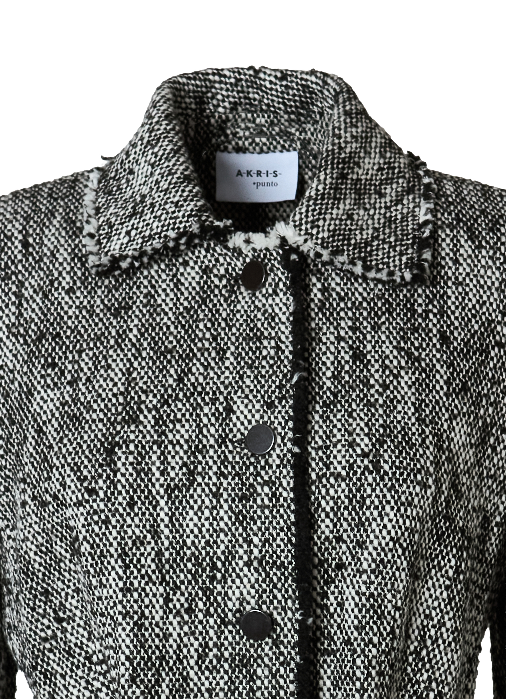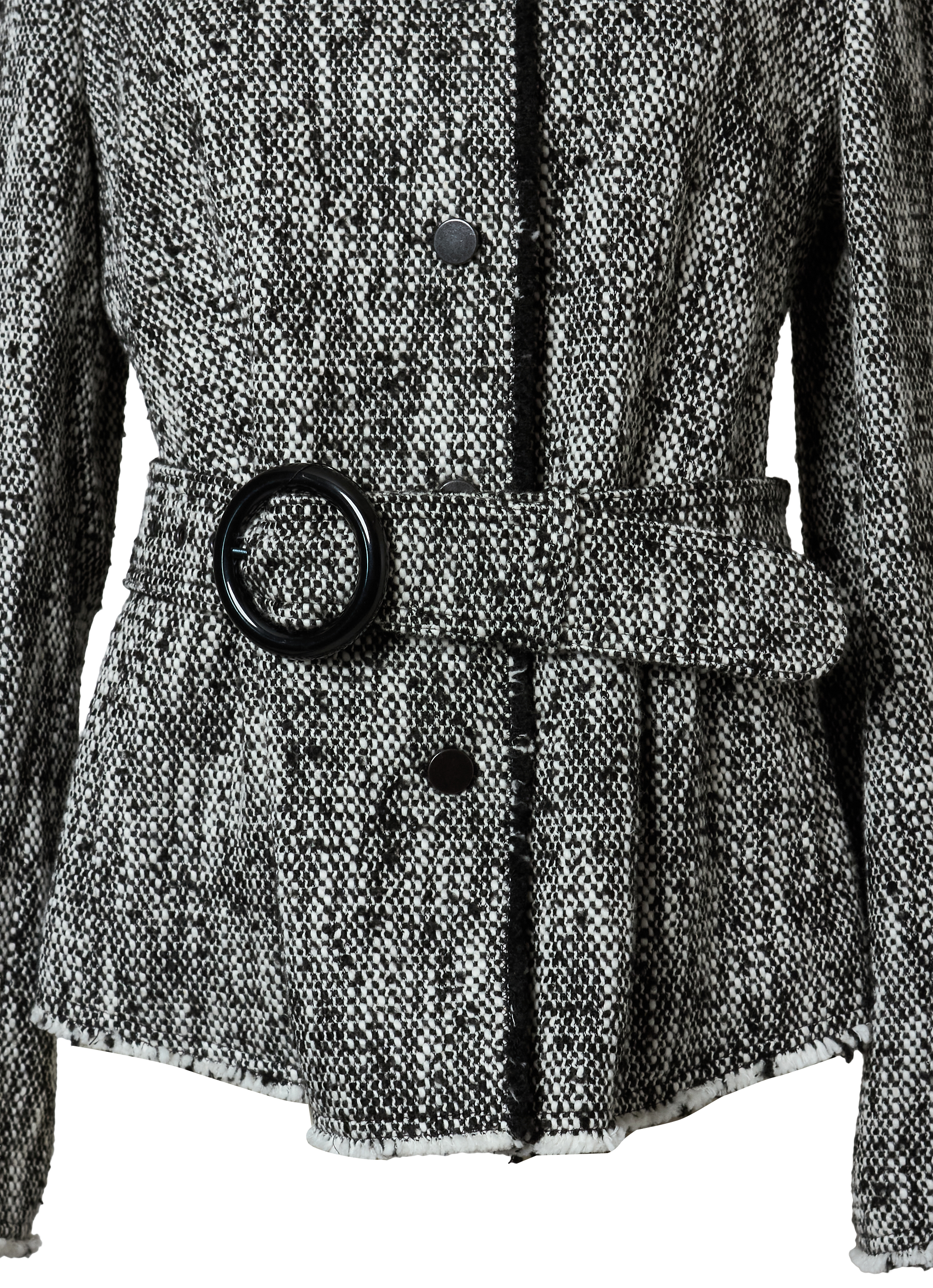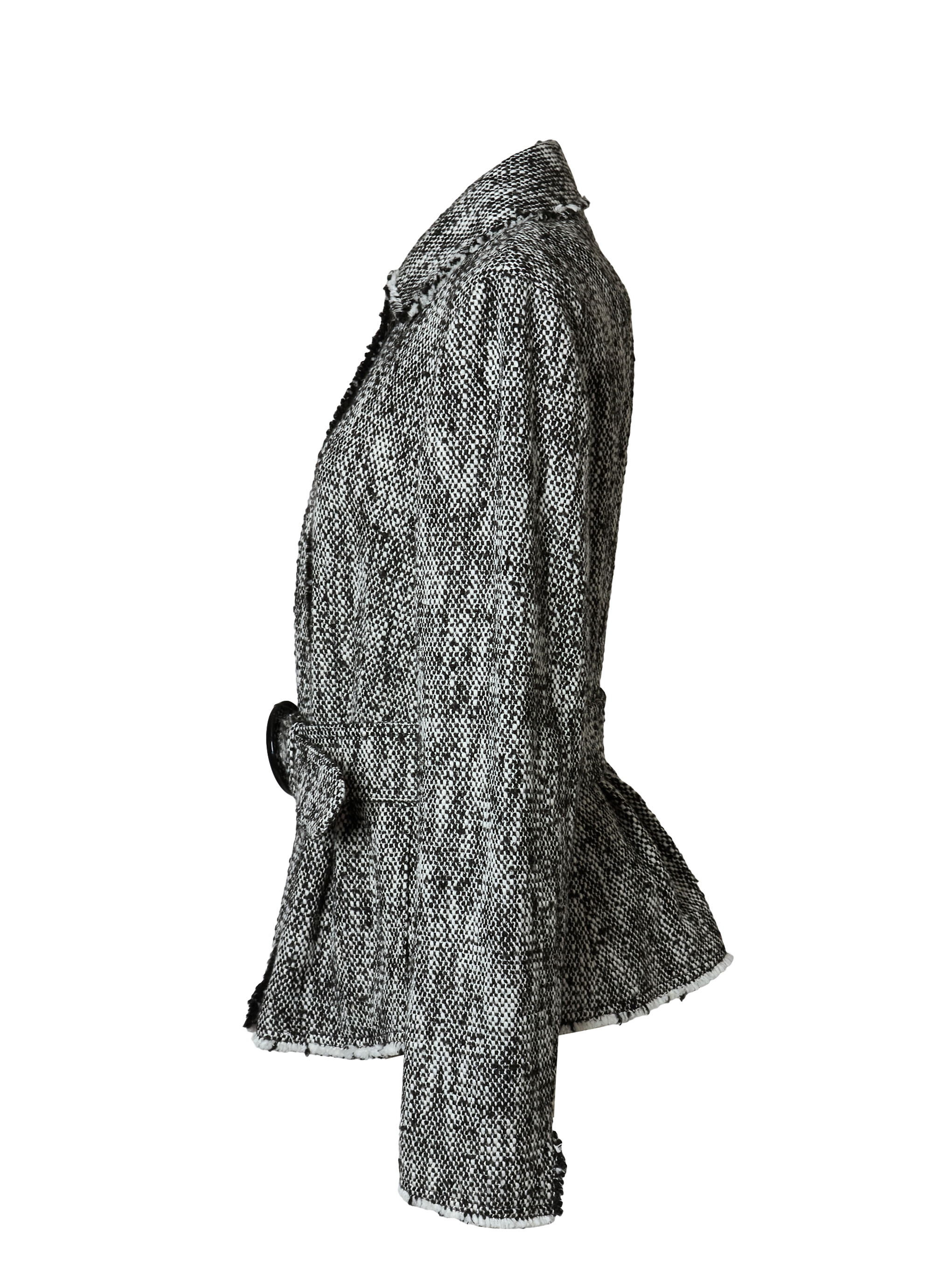 クラシカルなツイードの風合いに、モダンなエッセンスを加えたエレガントなジャケット。