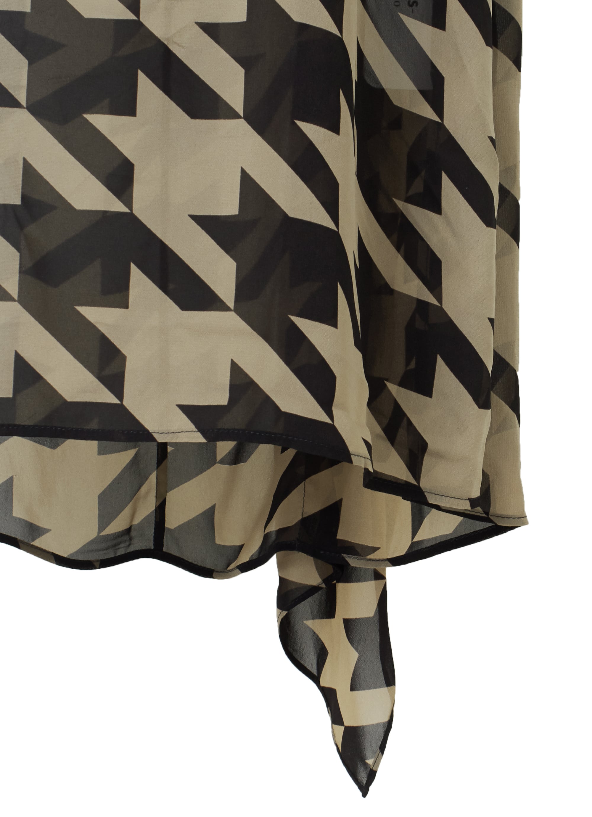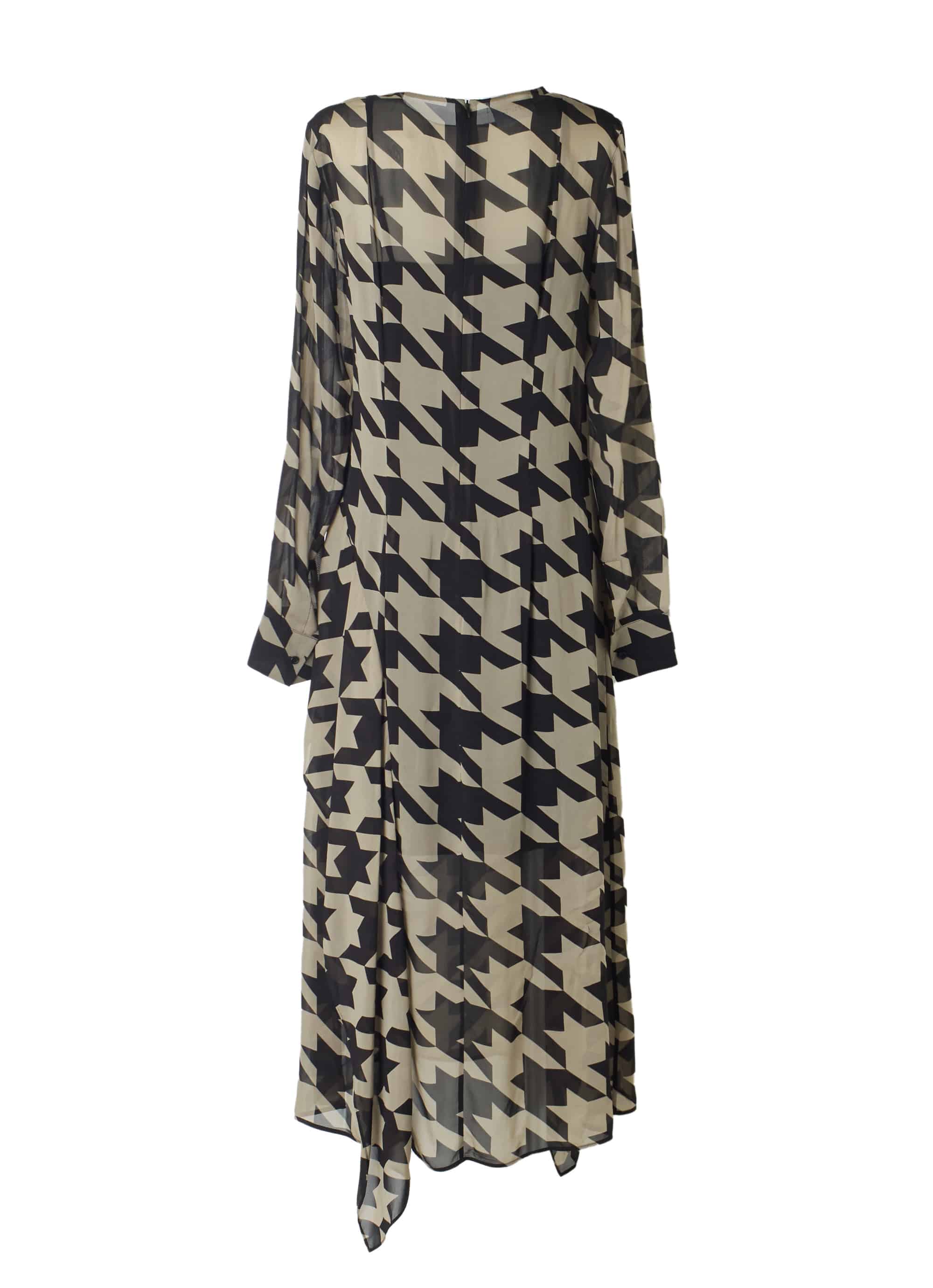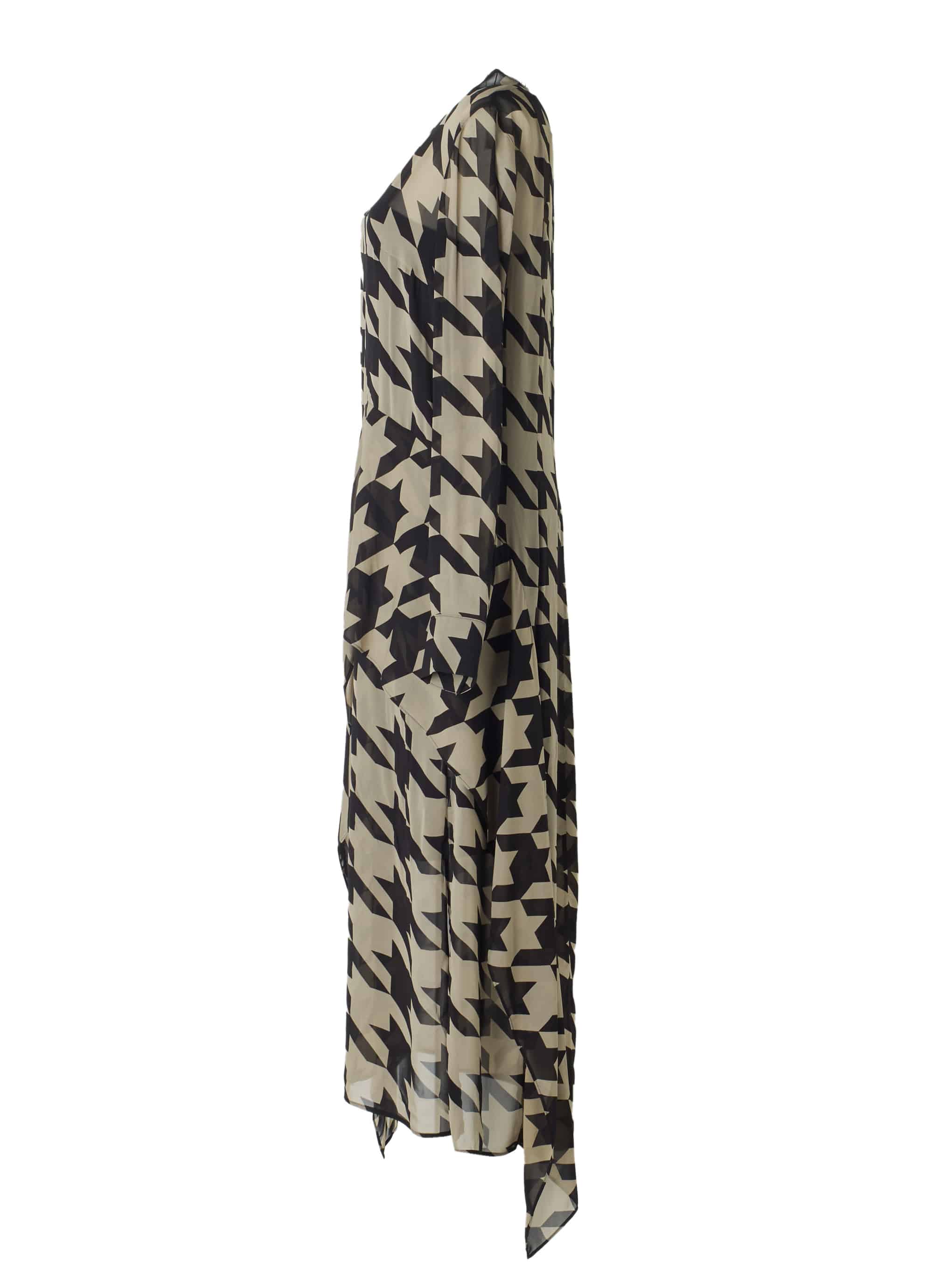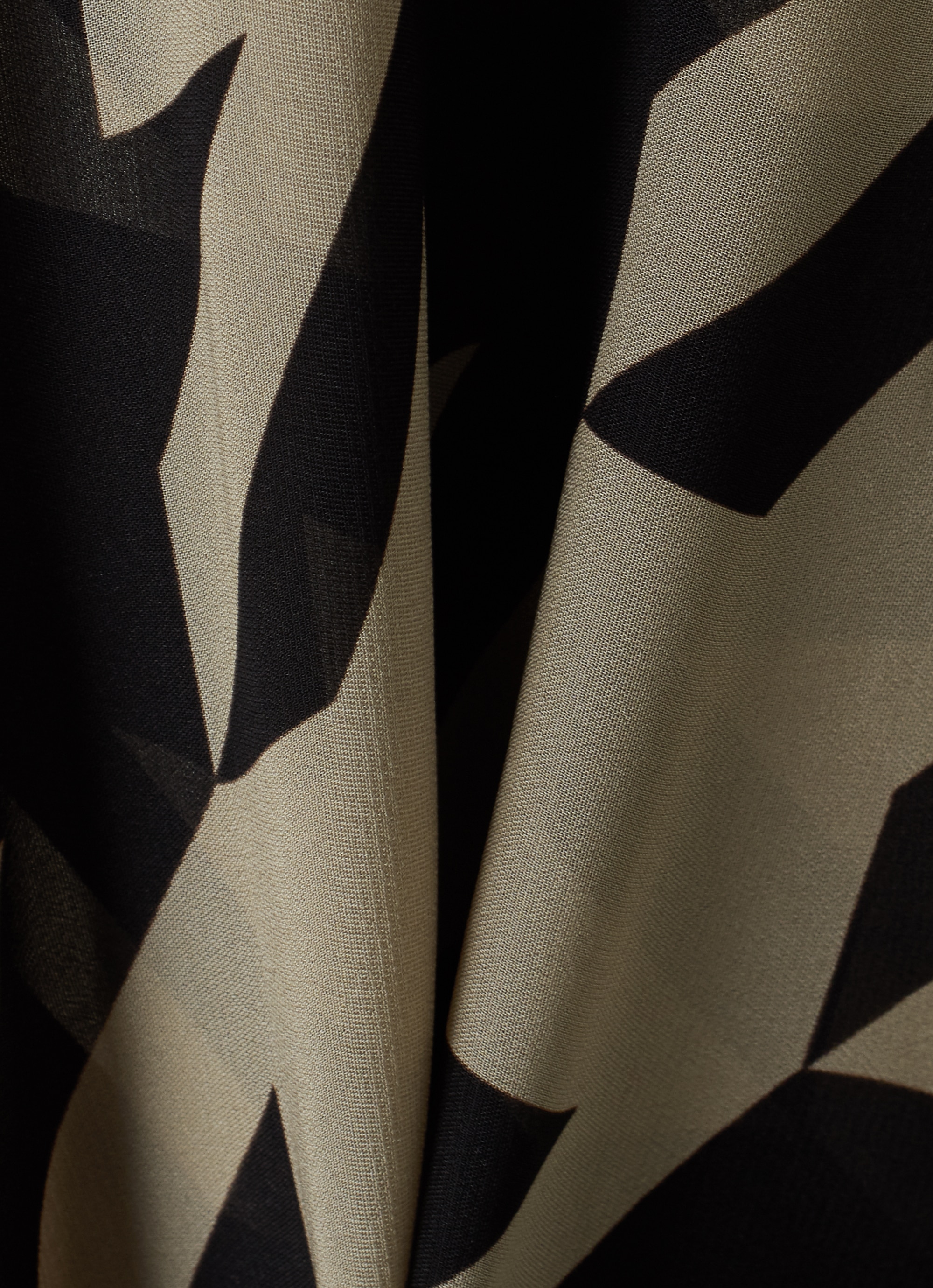 しなやかな素材が生み出す美しいドレープとグラフィカルな柄のコントラストが、洗練された存在感を演出します。